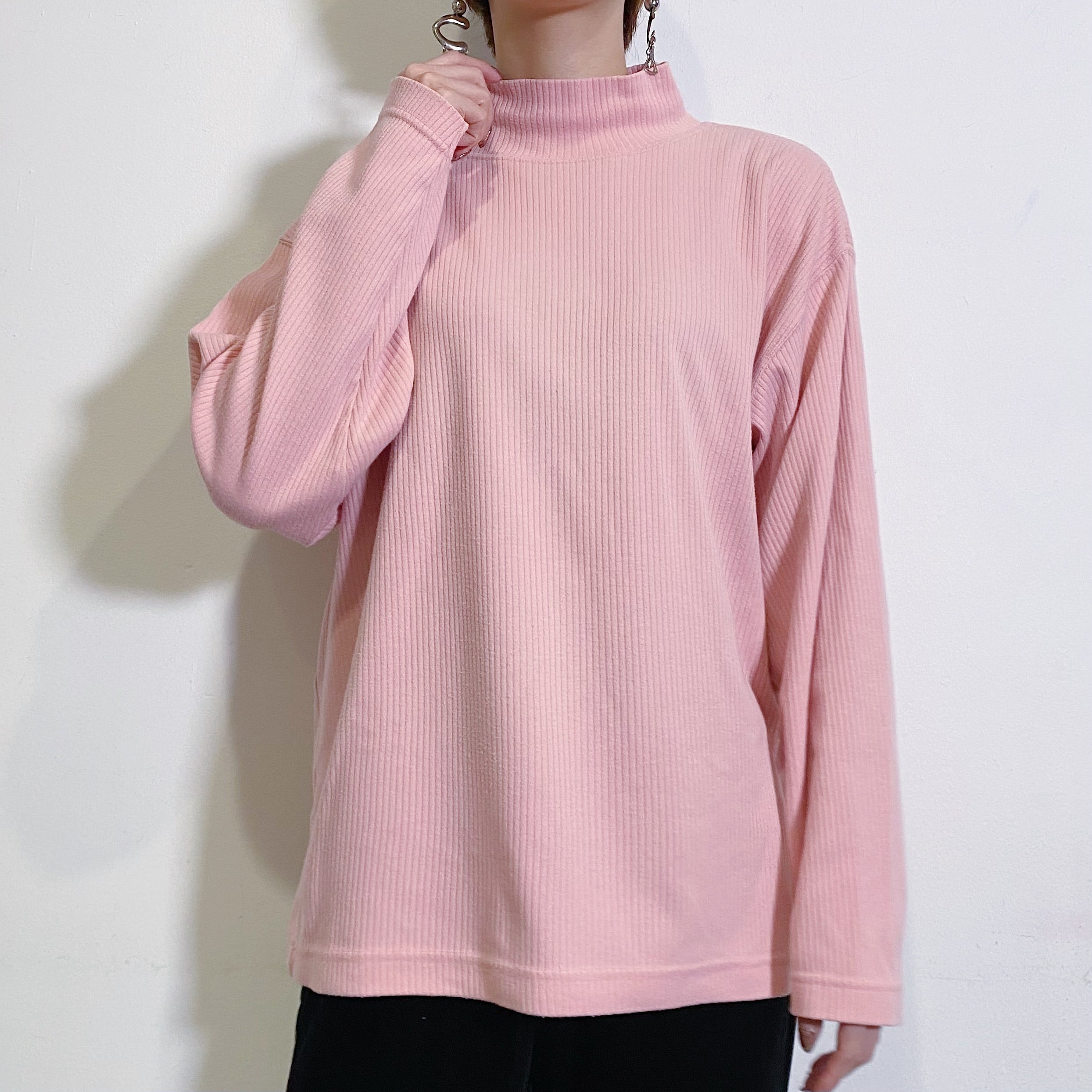 ベビーピンクカラーが可愛いハイネックトップスです。