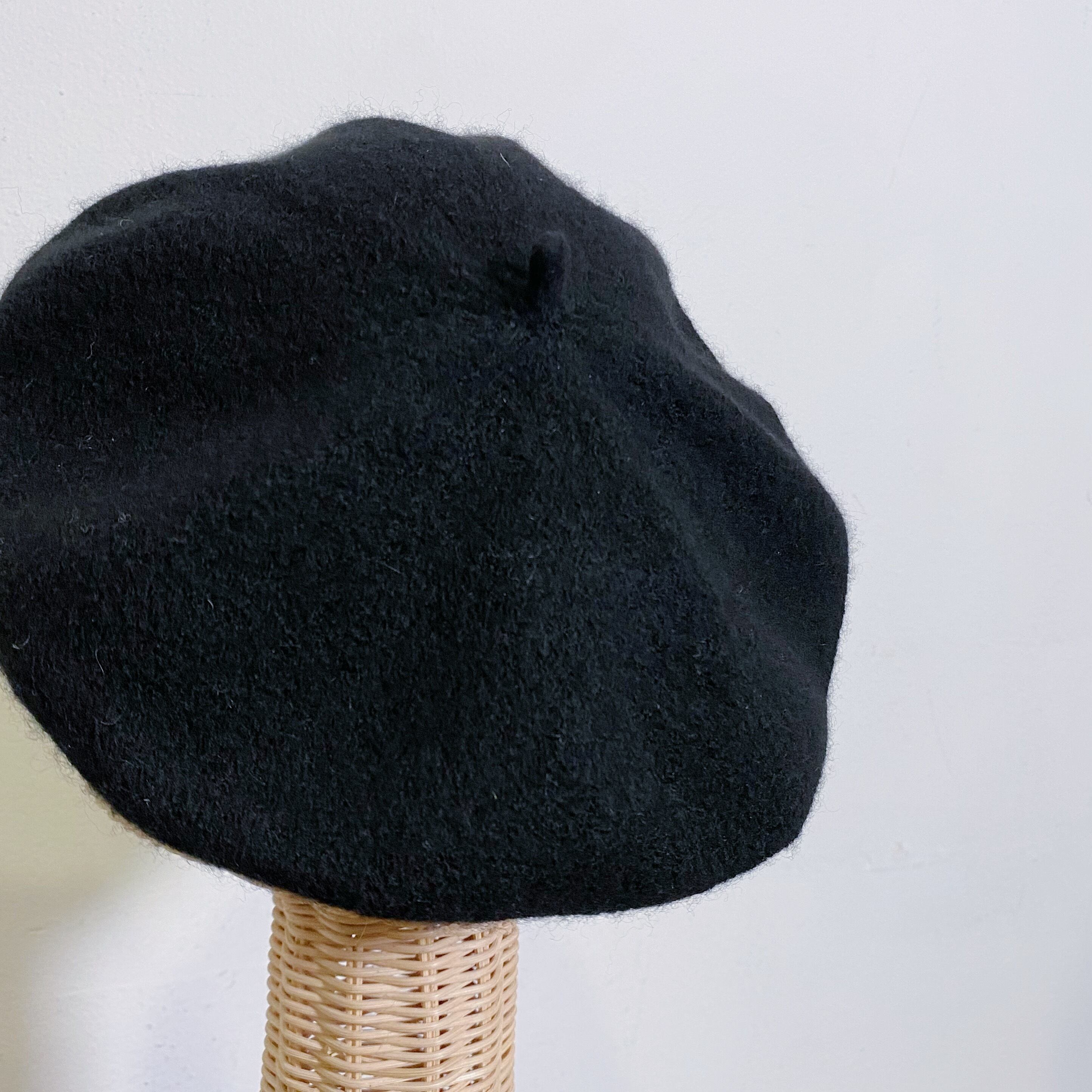 黒で大変使い勝手のよい、ウール素材のベレー帽です。