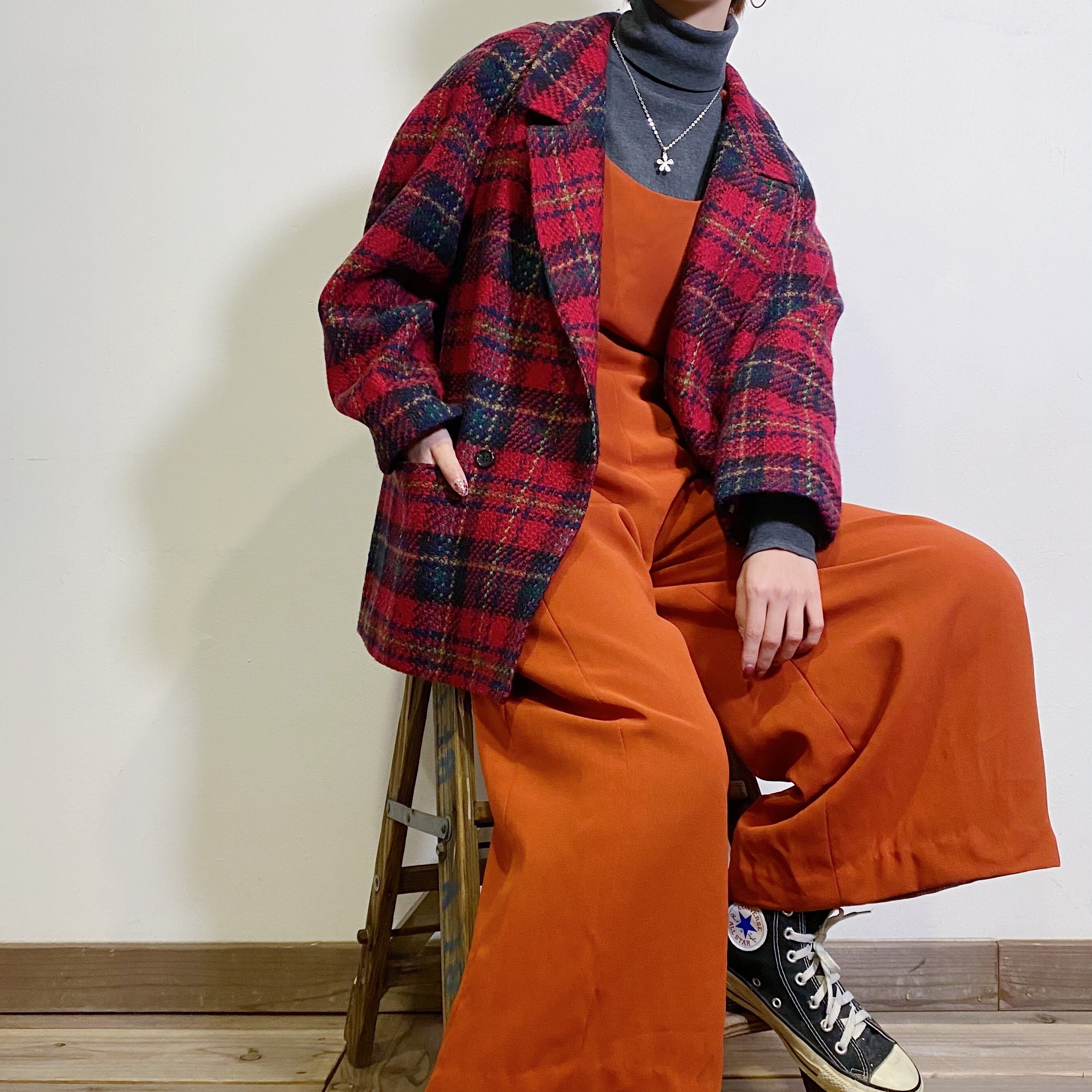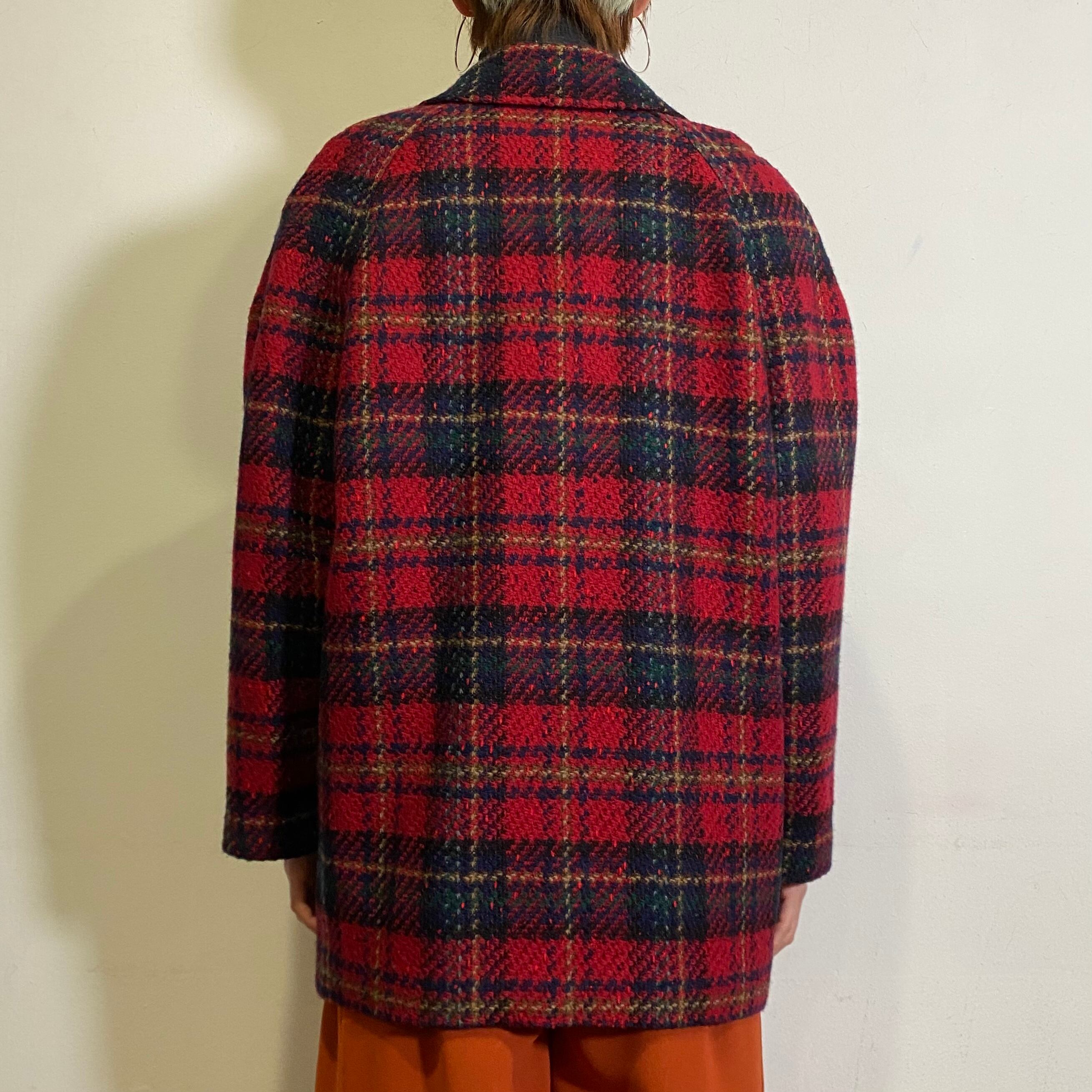 赤ベースのタータンチェック可愛い、ウール素材のジャケットです。