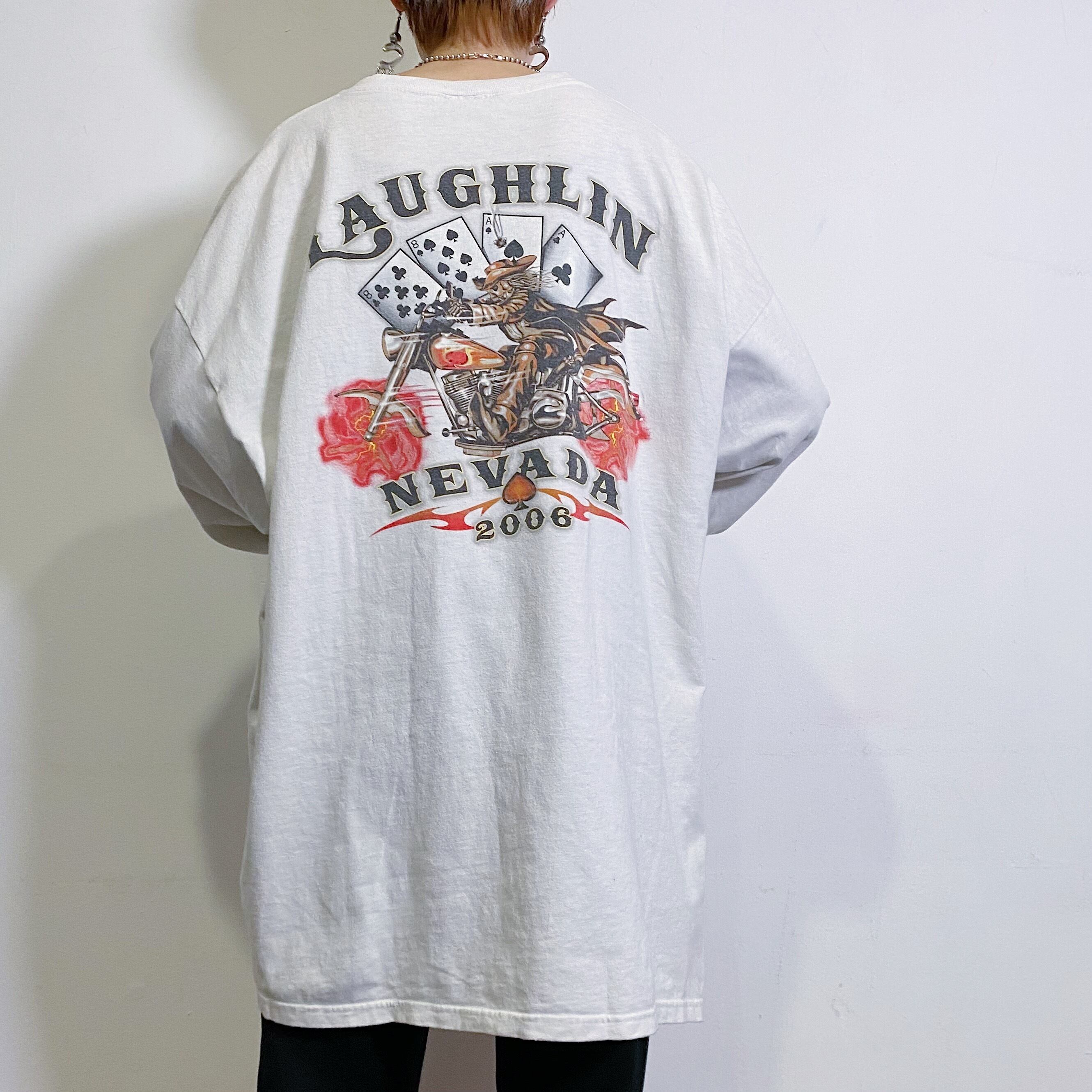 いかついバイクプリントですが、vintegeアイテムと合わせればmixスタイルが楽しめるおすすめの一枚。