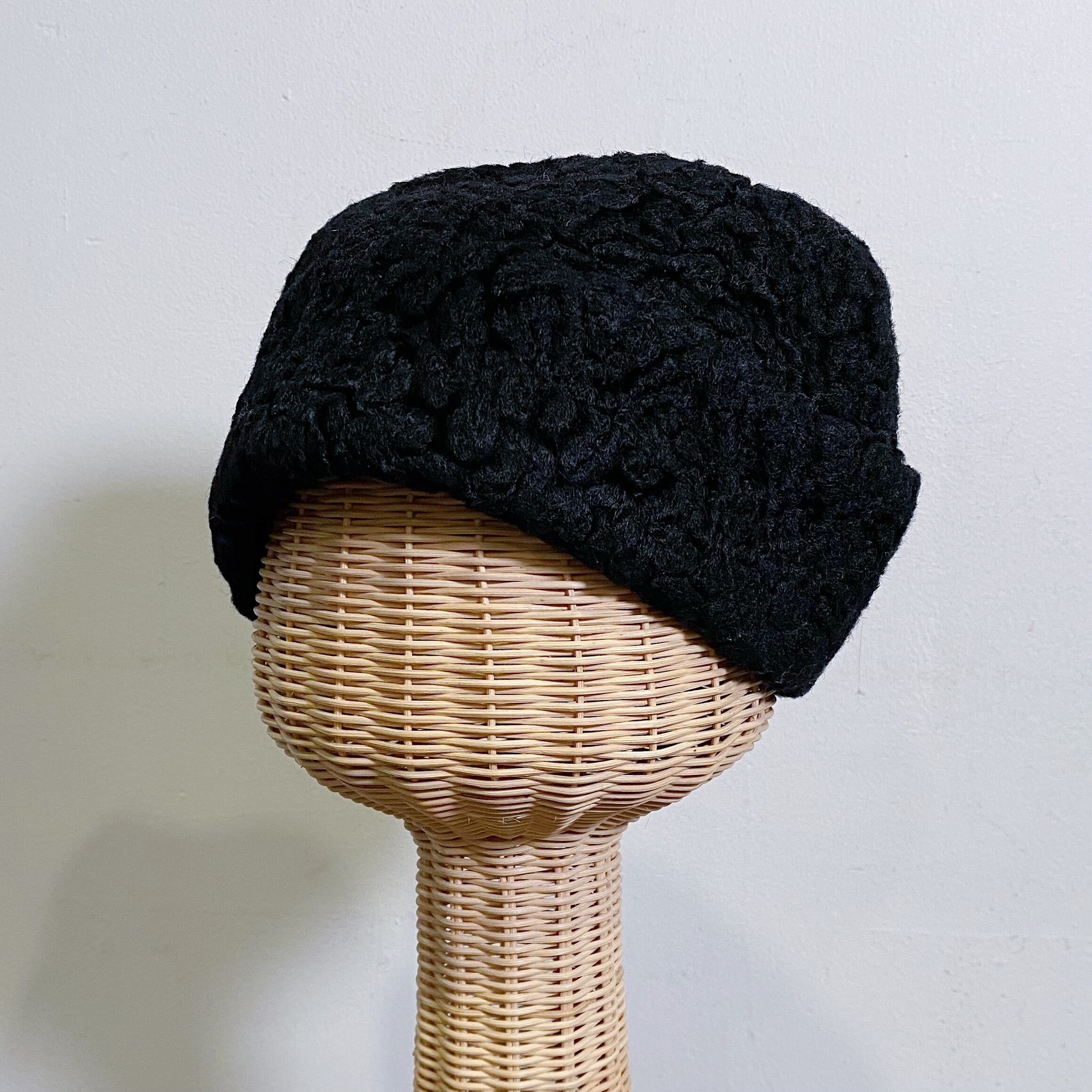 50s black astrakhan fur hat