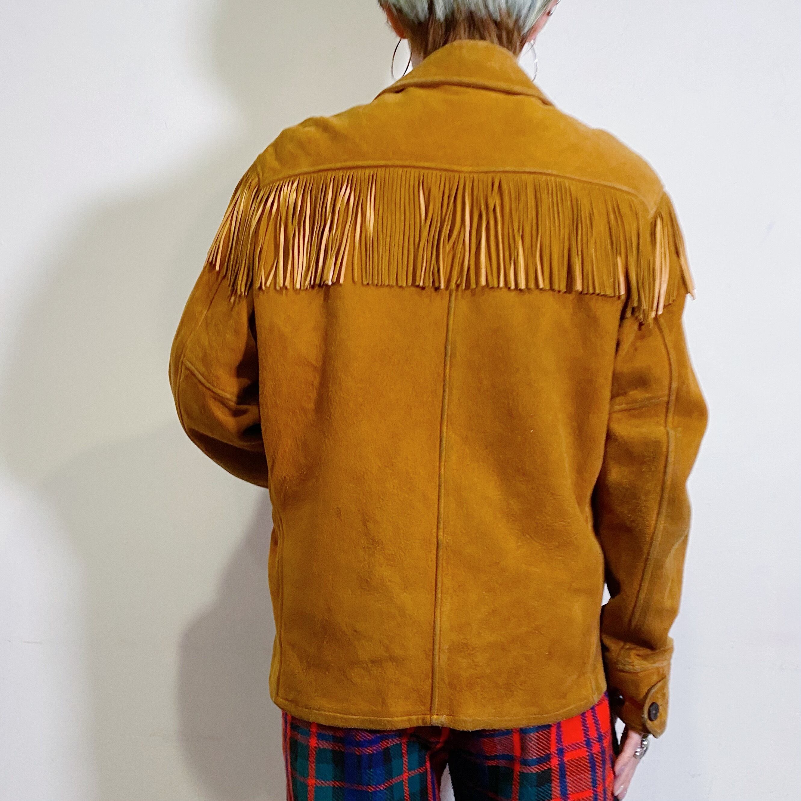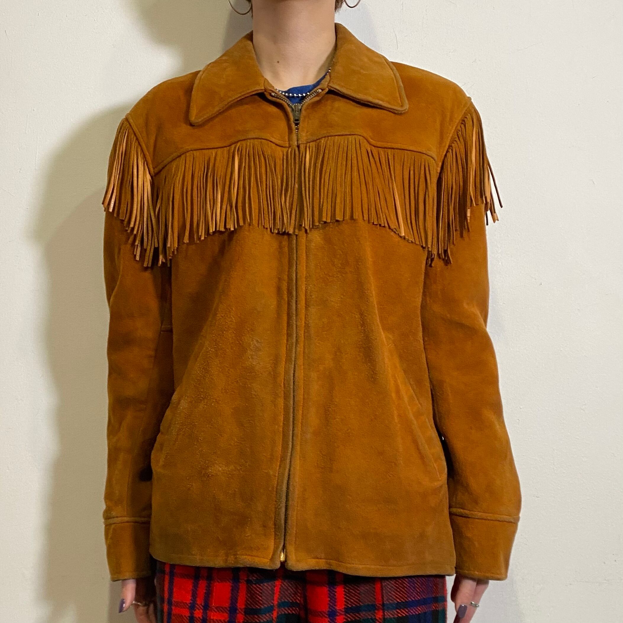 着こなしやすいキャメルカラーにフリンジが可愛い、70年代のジャケットです。