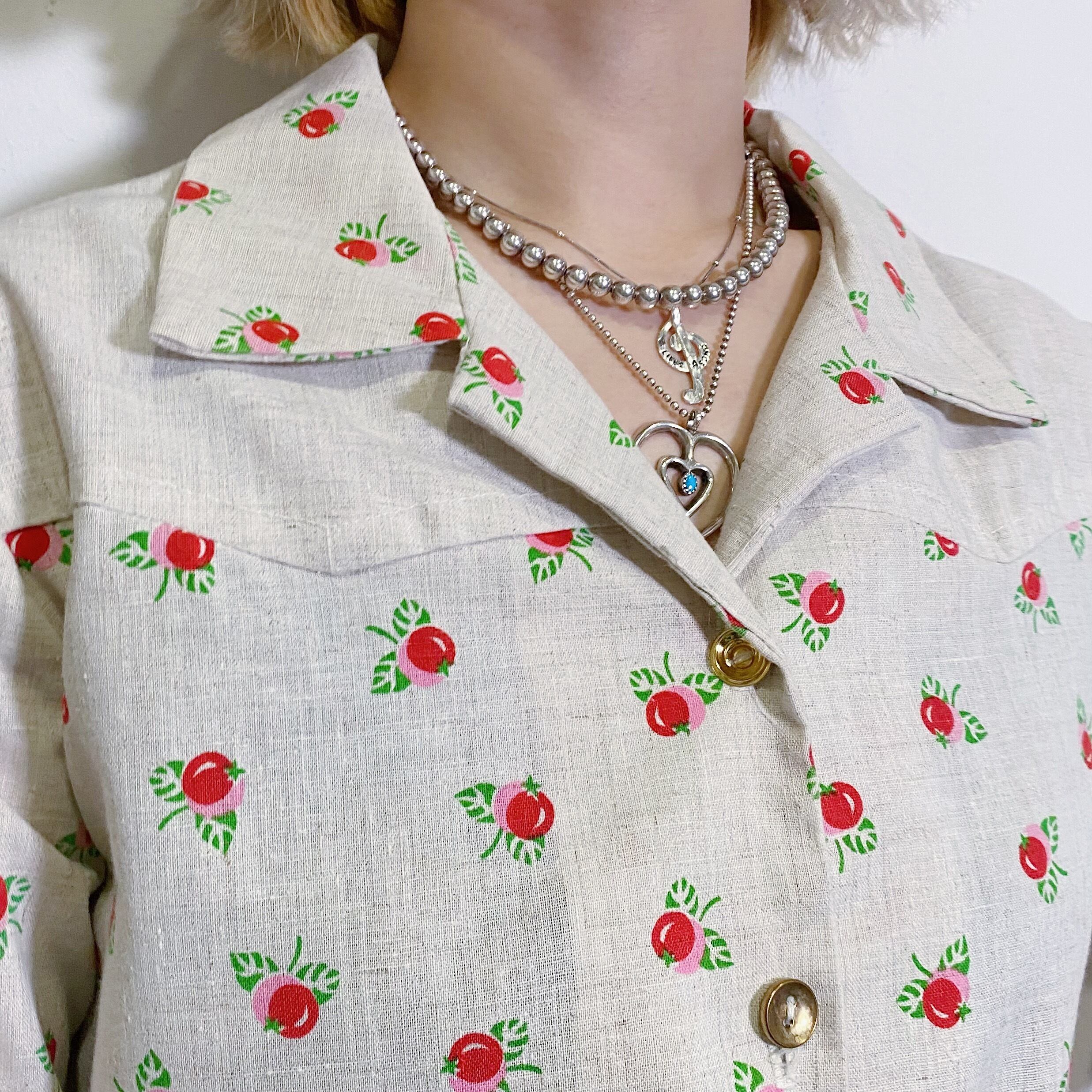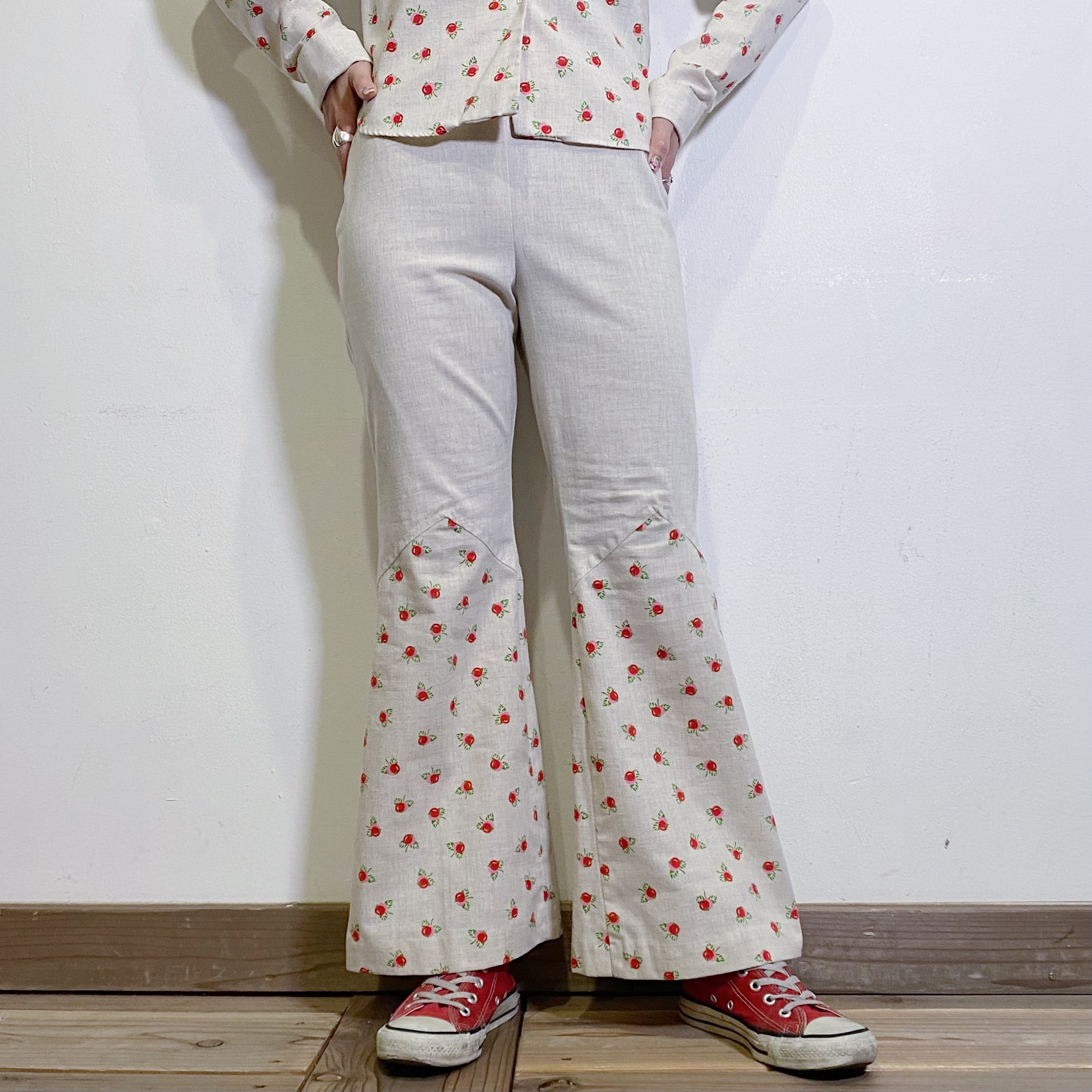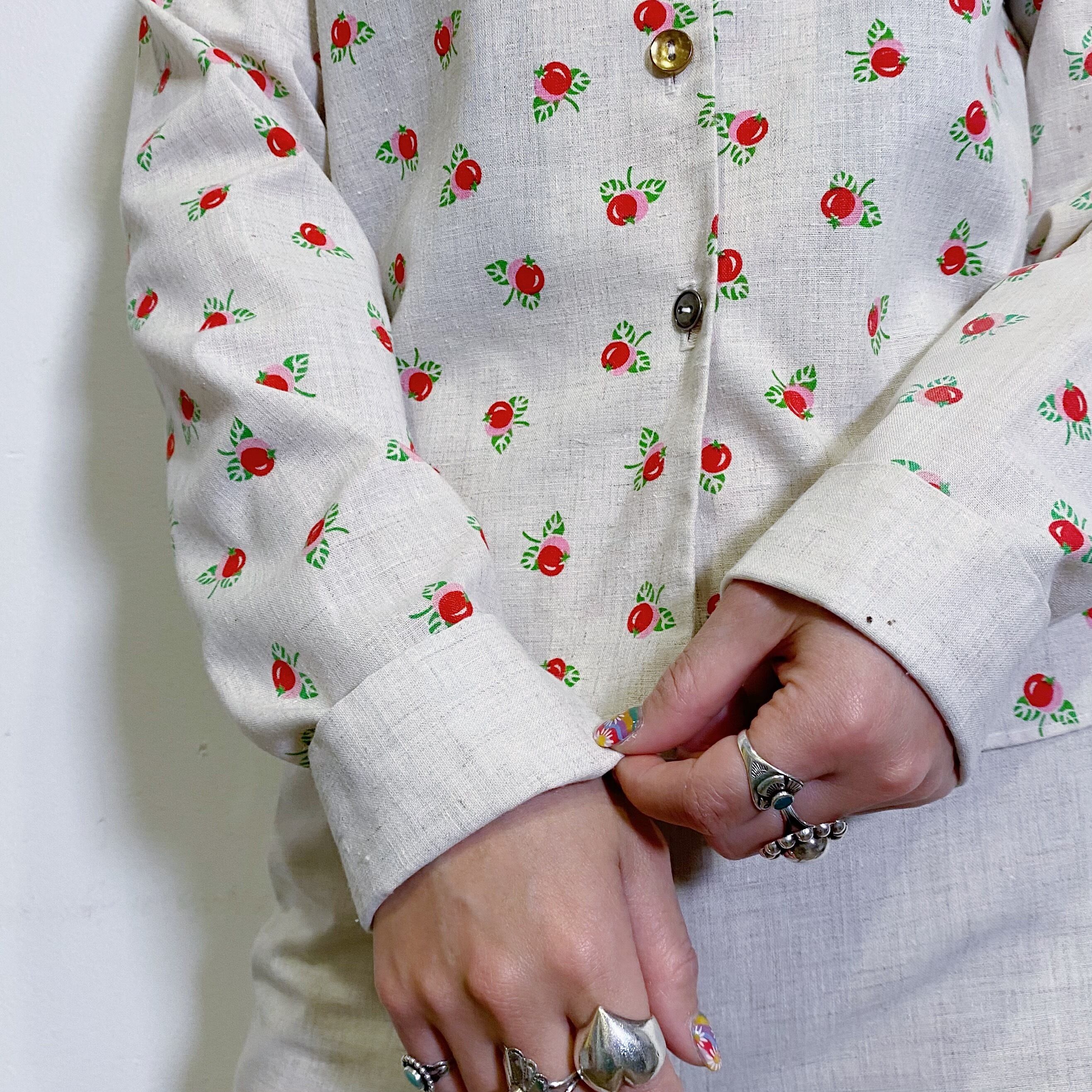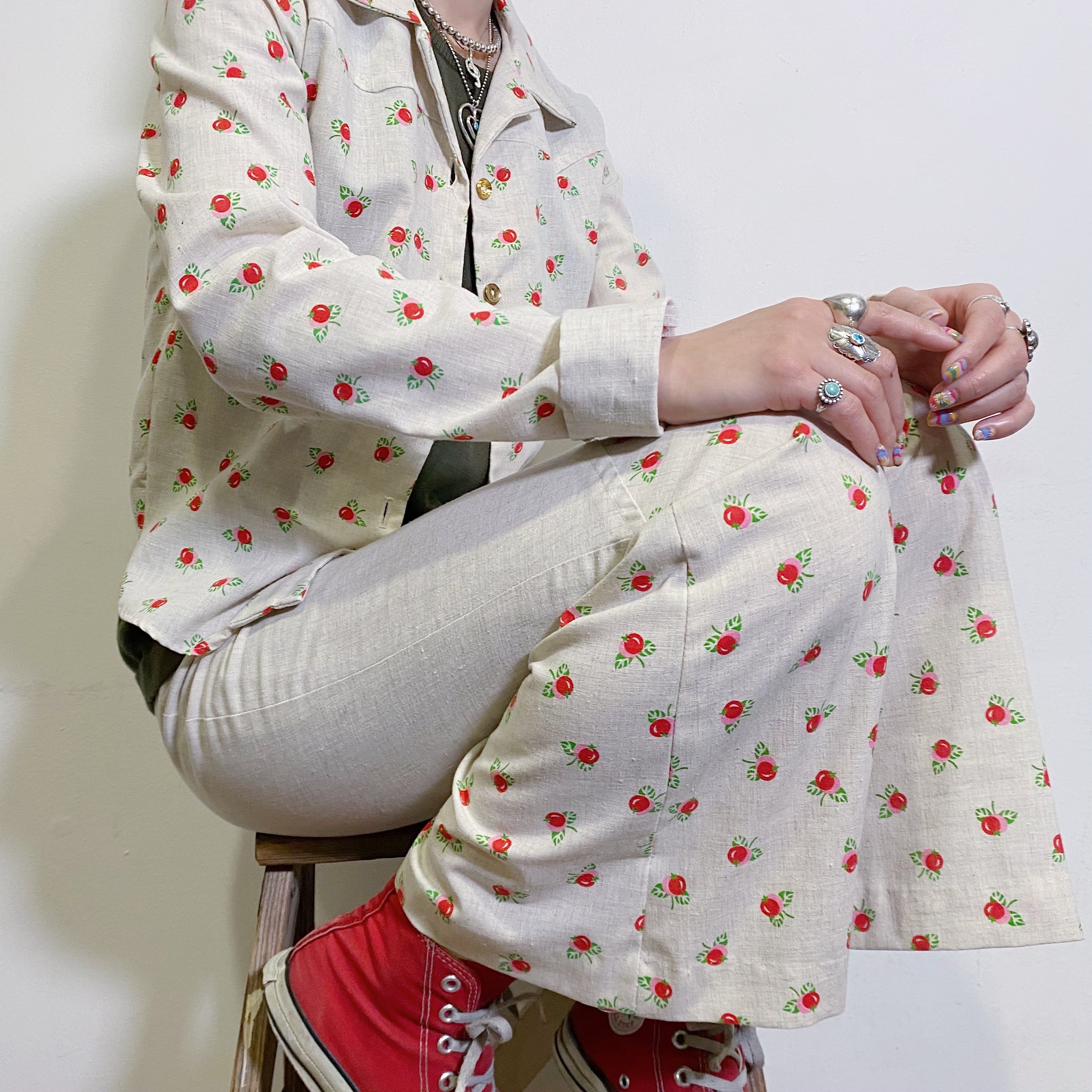 お花のようなプチトマトのような実のテキスタイルが可愛い、70年代のセットアップです。