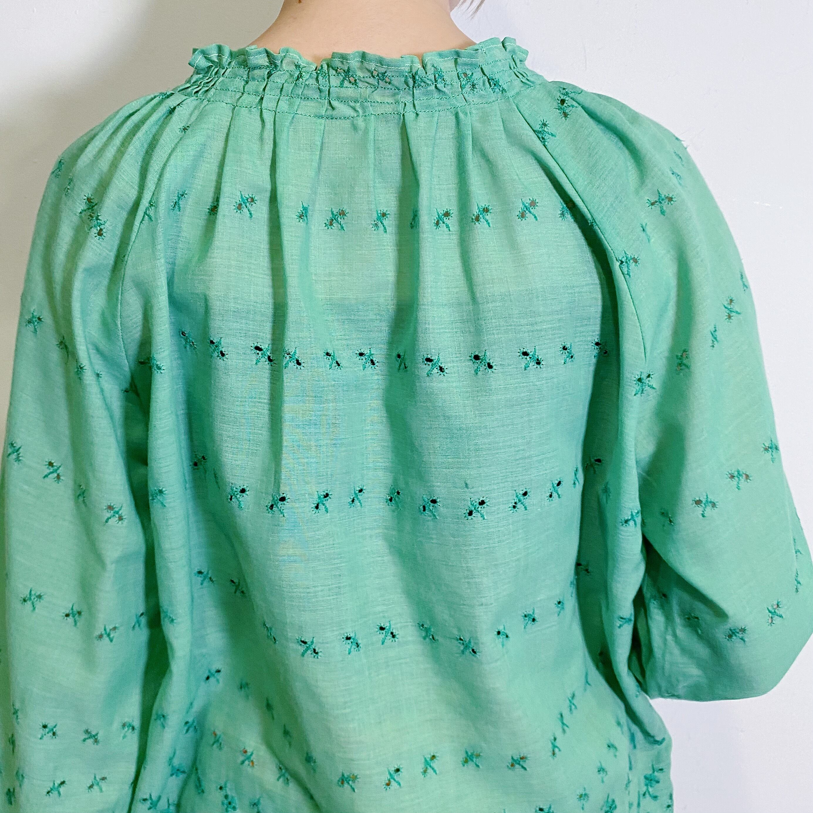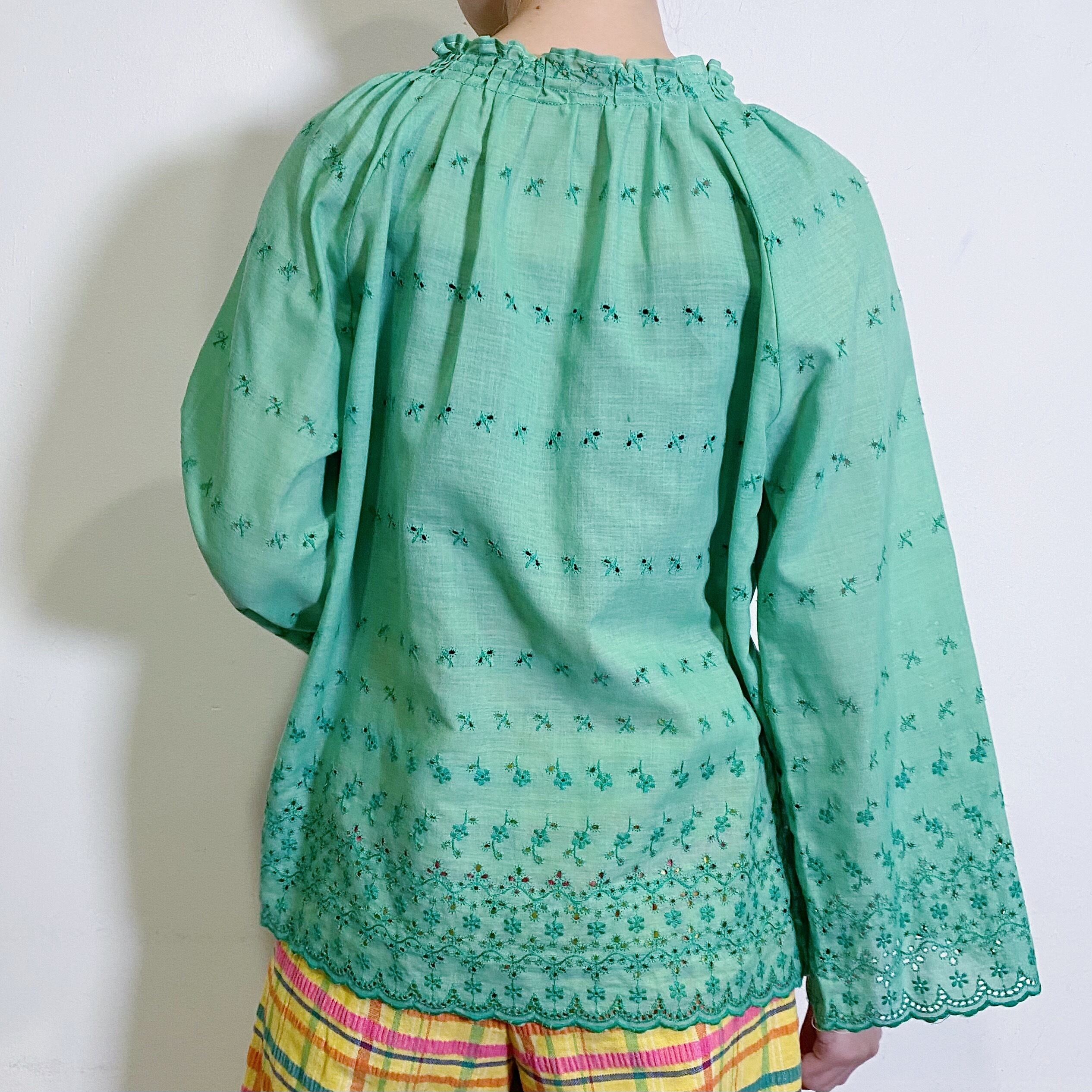 グリーンベースにお花の刺繍が可愛い、70年代のチュニックです。