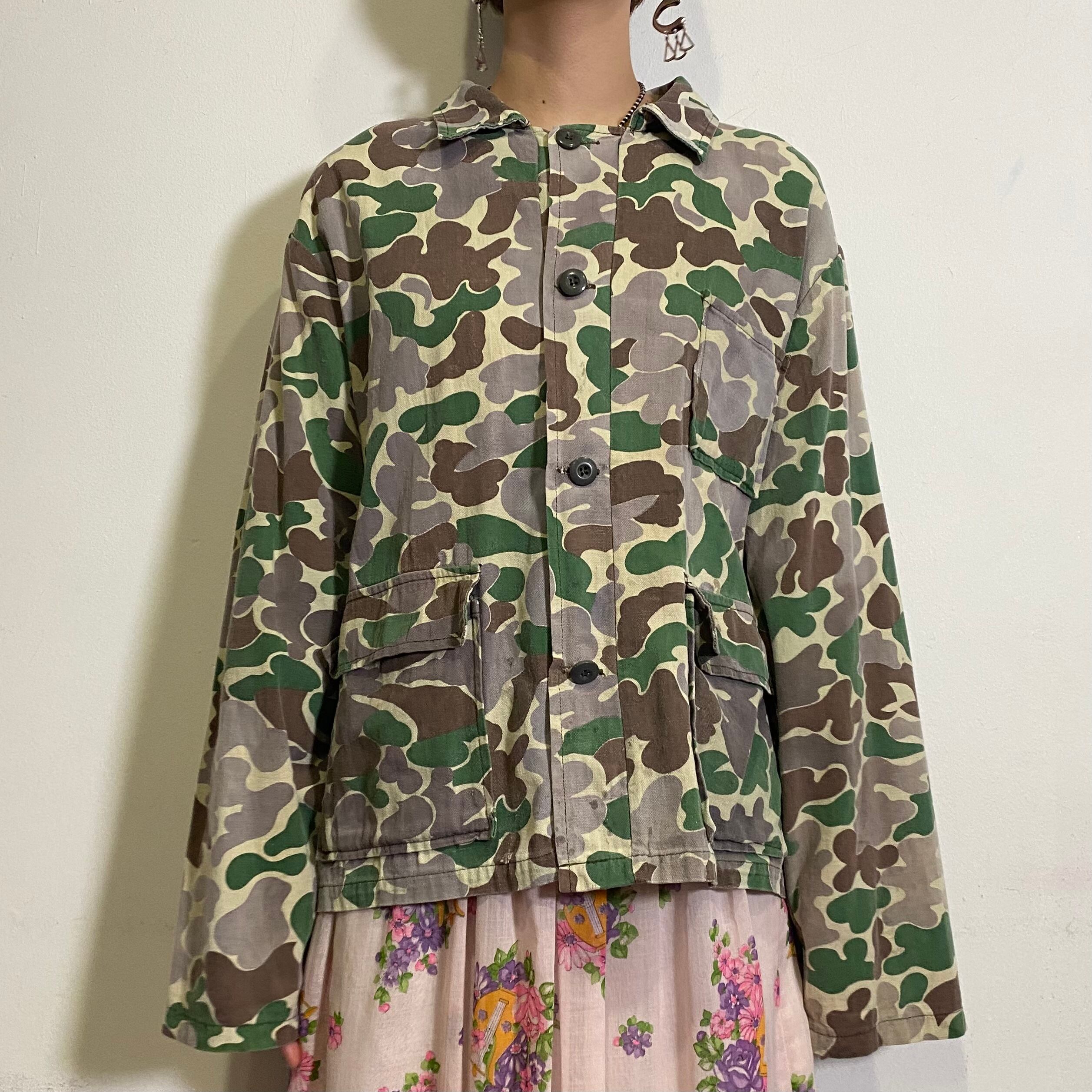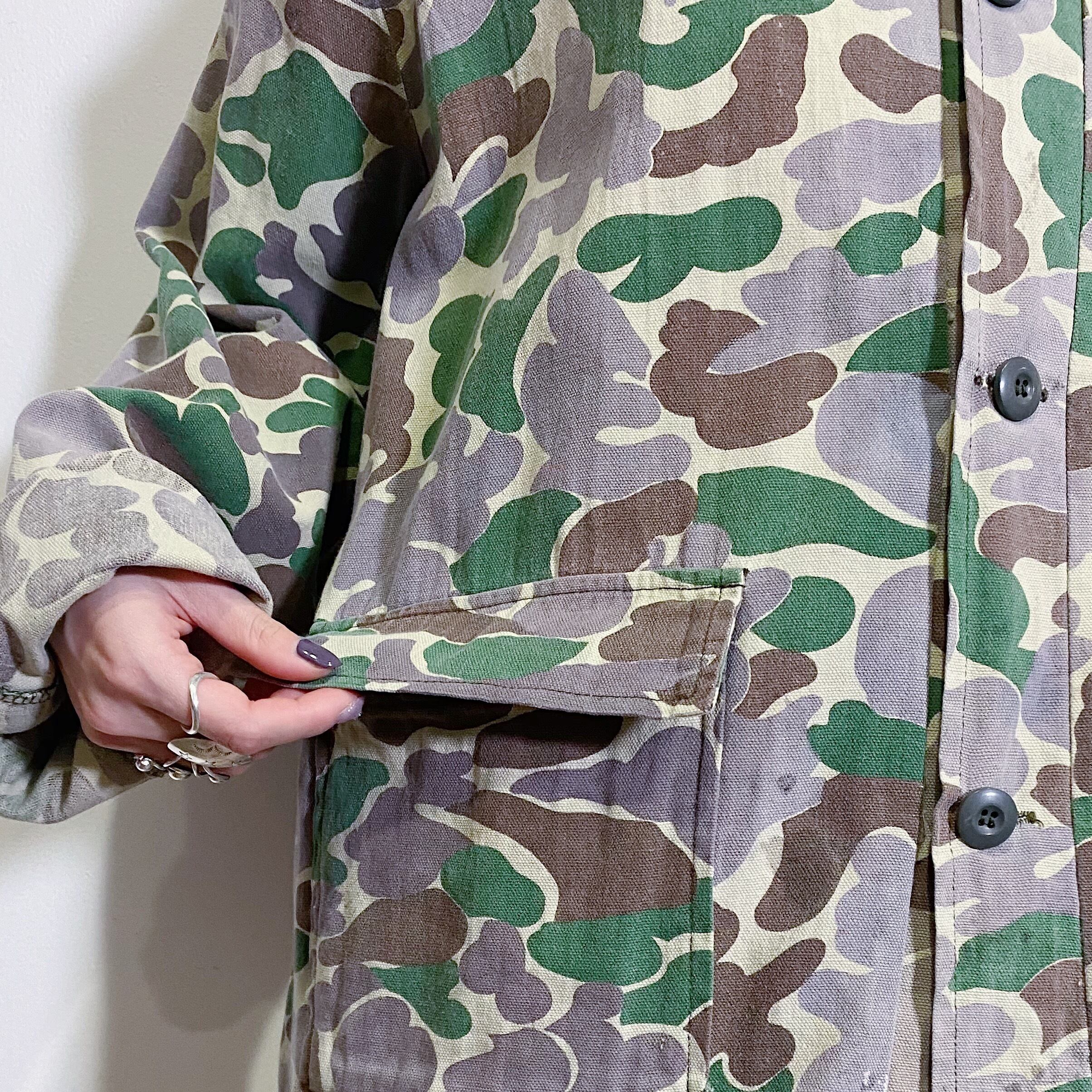 カモ柄の中でもレディースに人気のダックカモパターンが可愛い、80年代のシャツジャケットです。