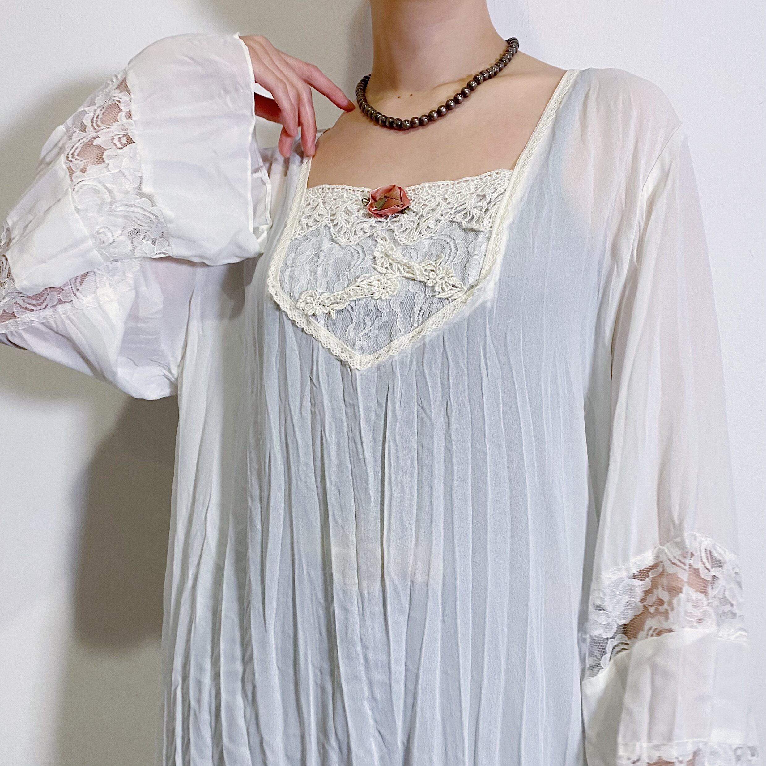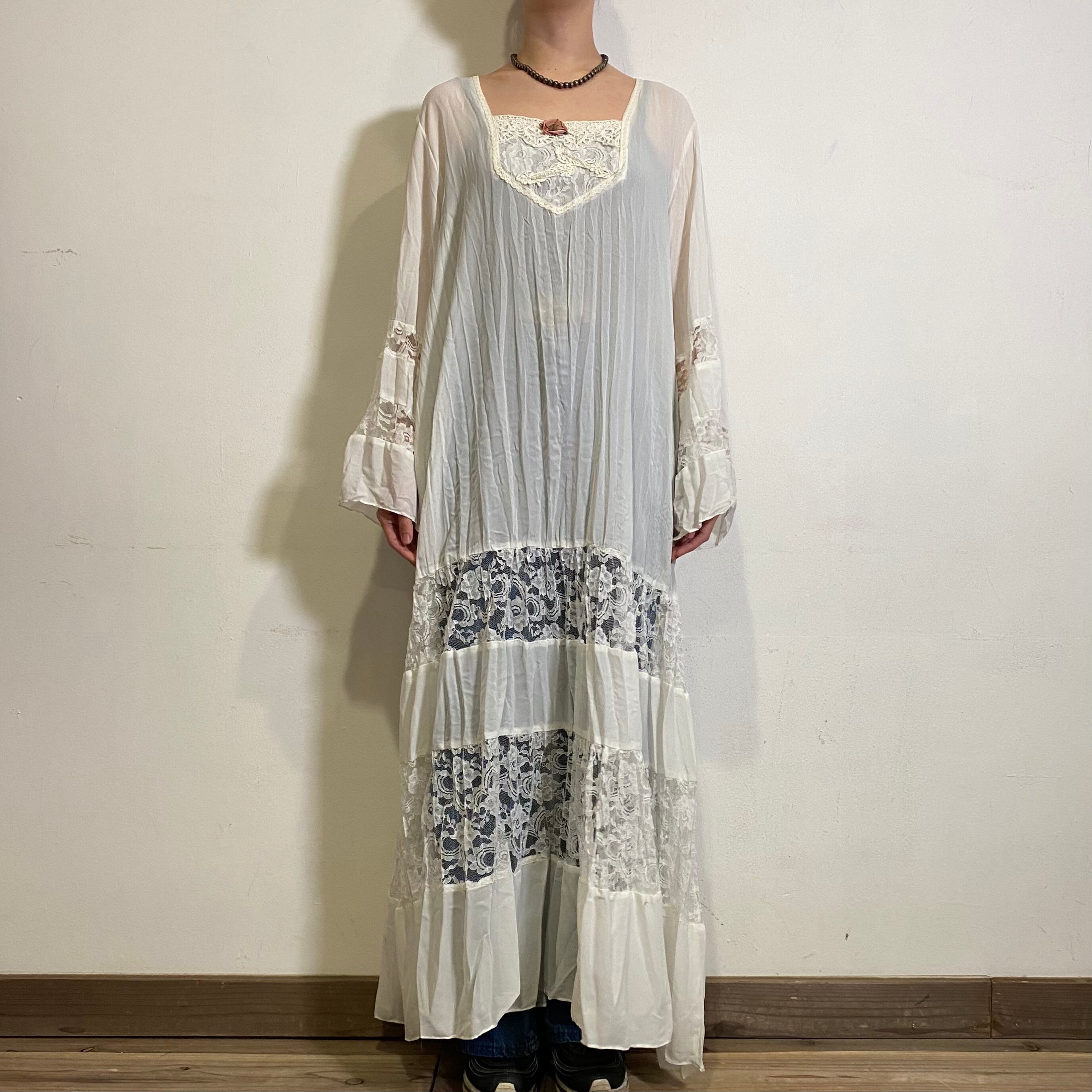 80s white lace long dress
