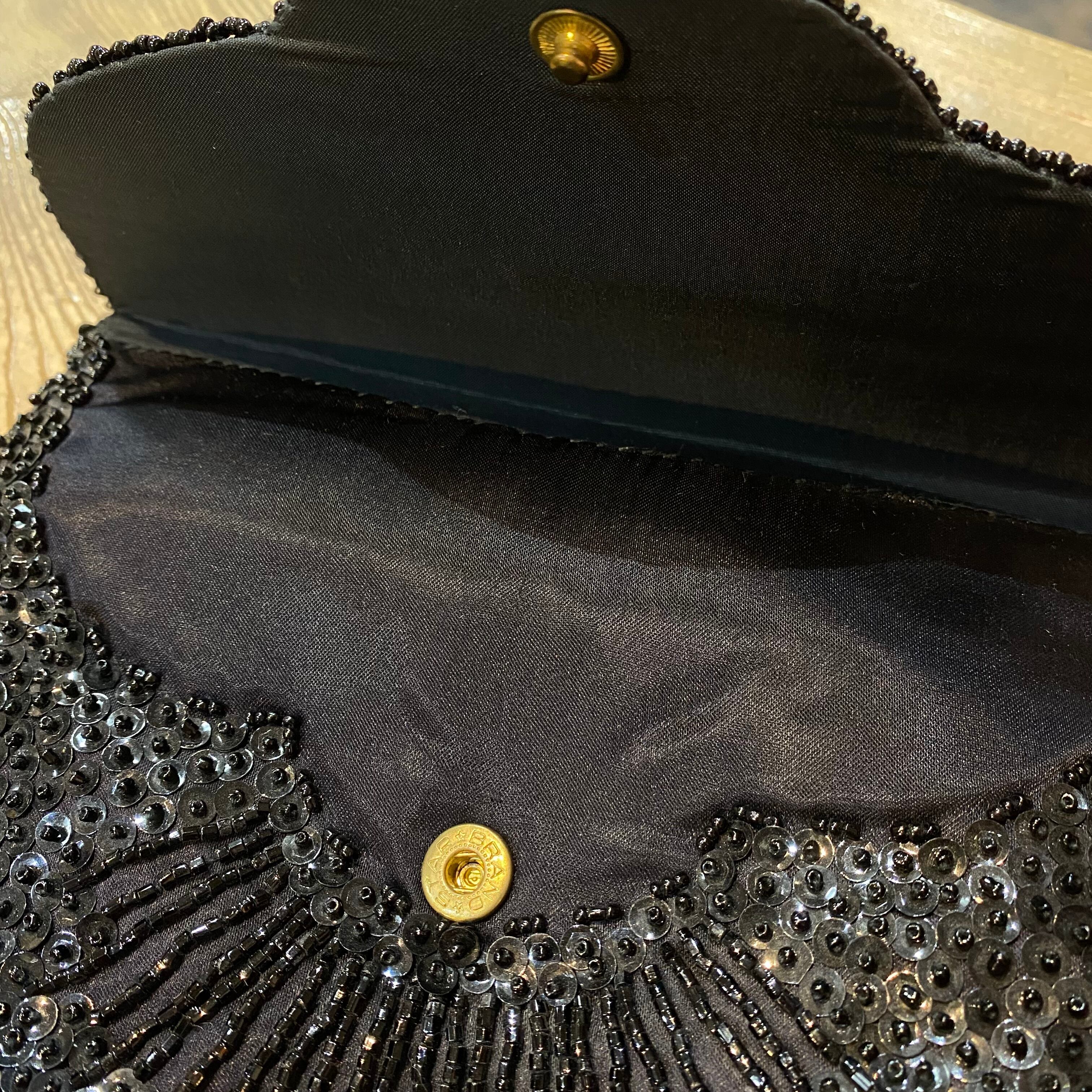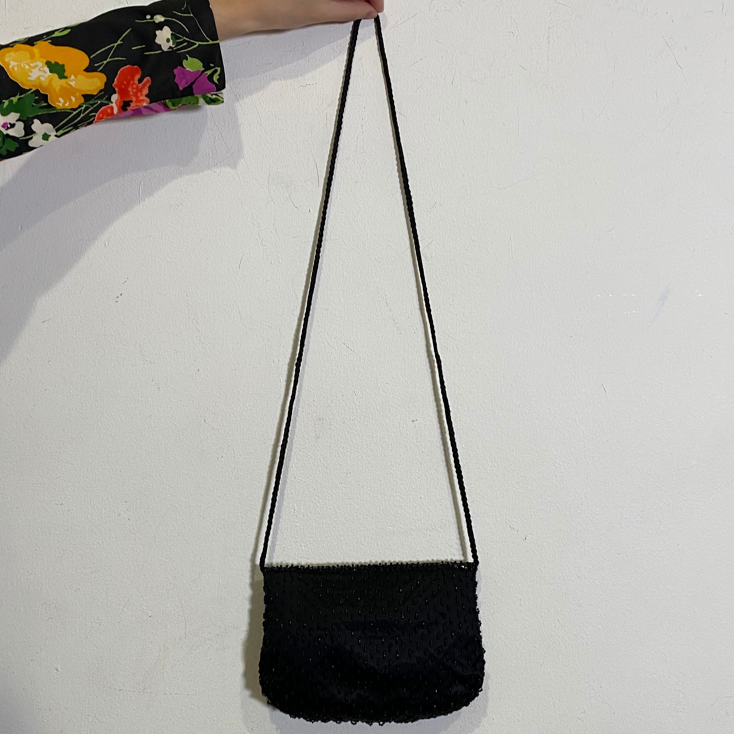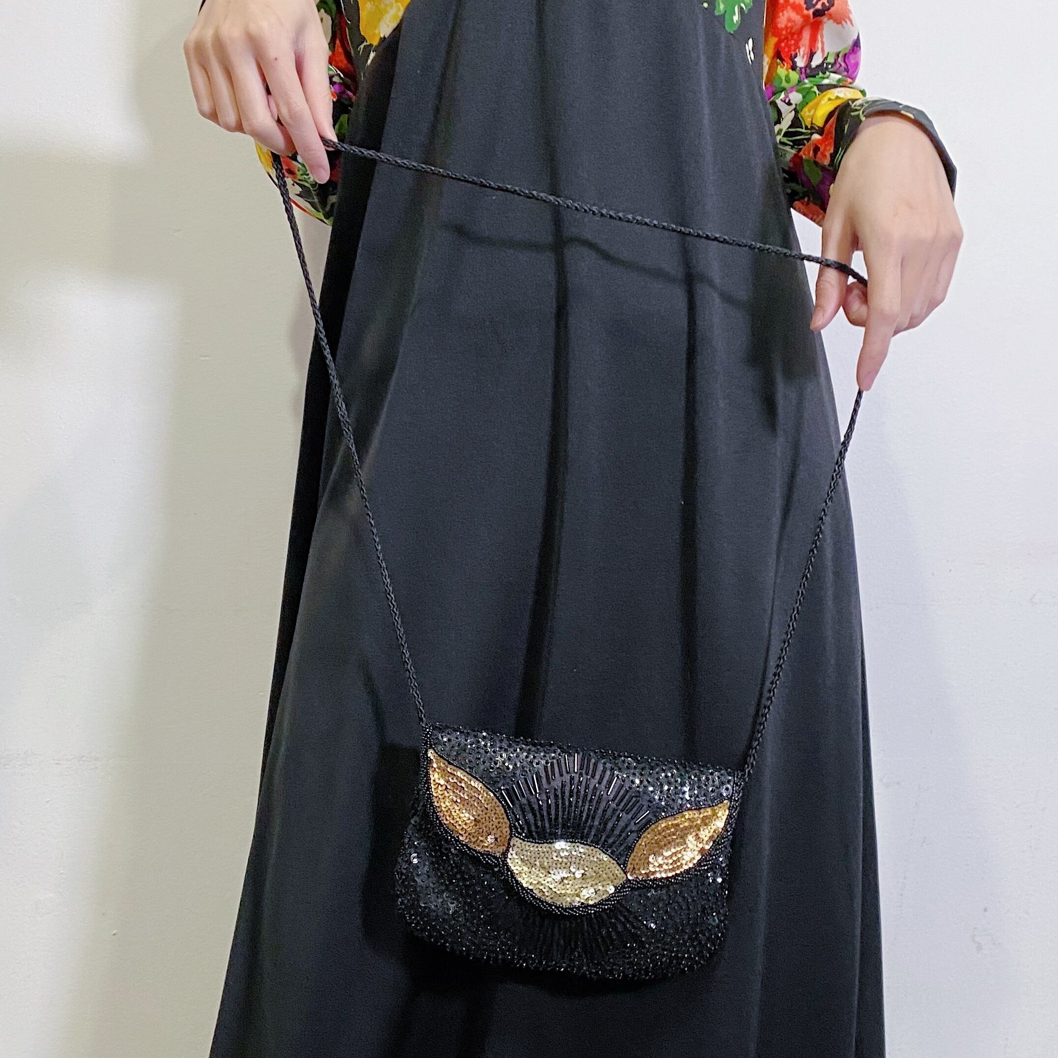 リーフのようなモチーフのゴールドとブラックのツートーンカラーが可愛い、ビーズバッグです。