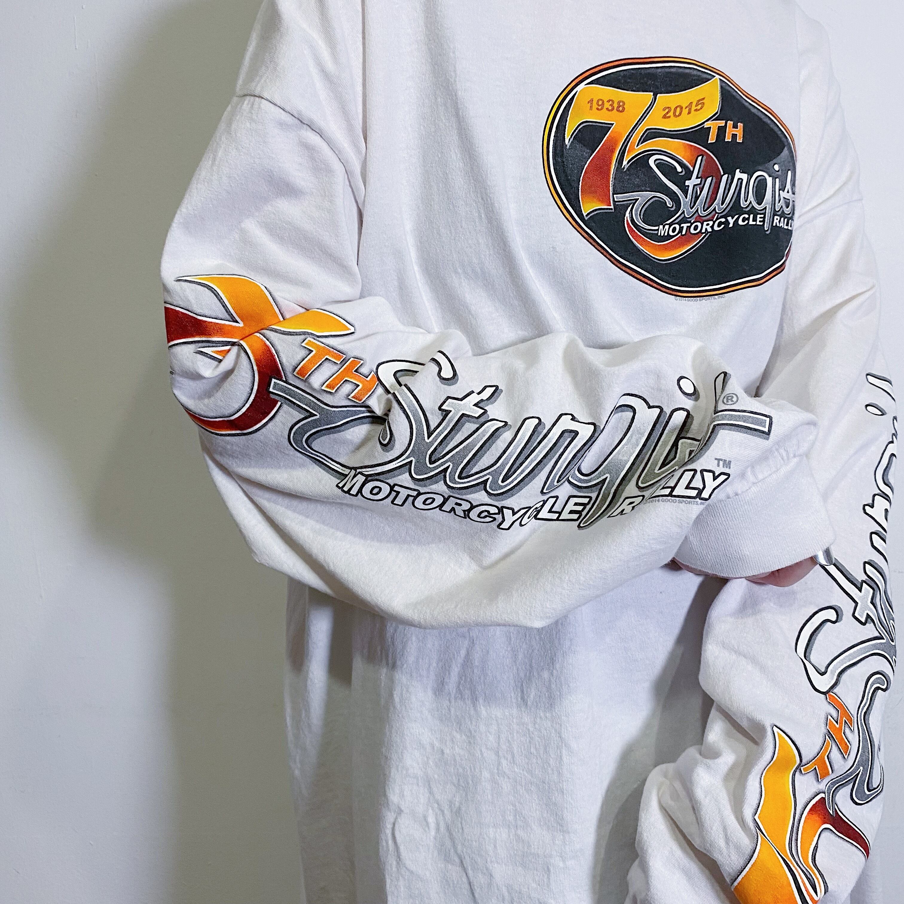 フロントだけでなく、バックや袖にまでプリントが入ったロンTです。