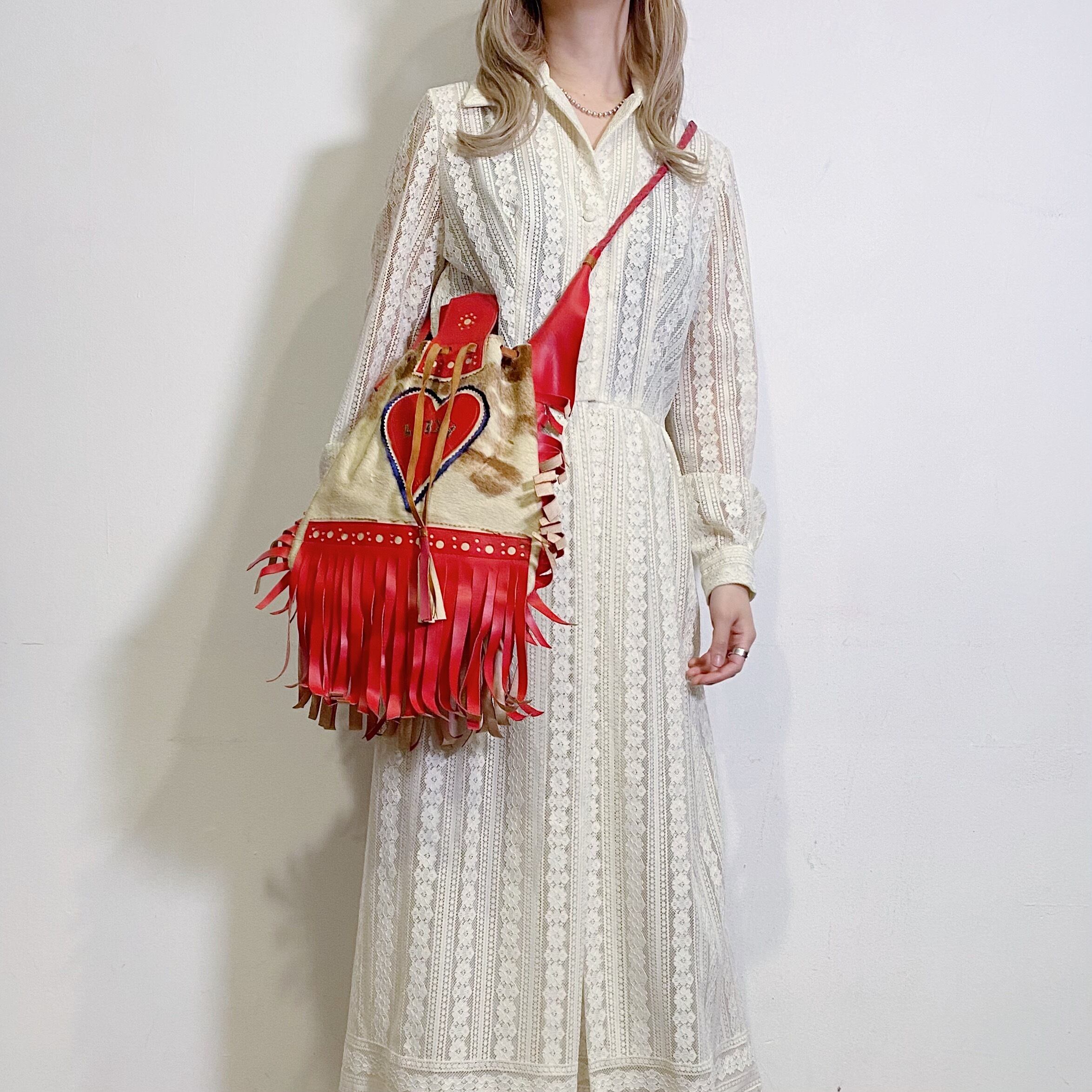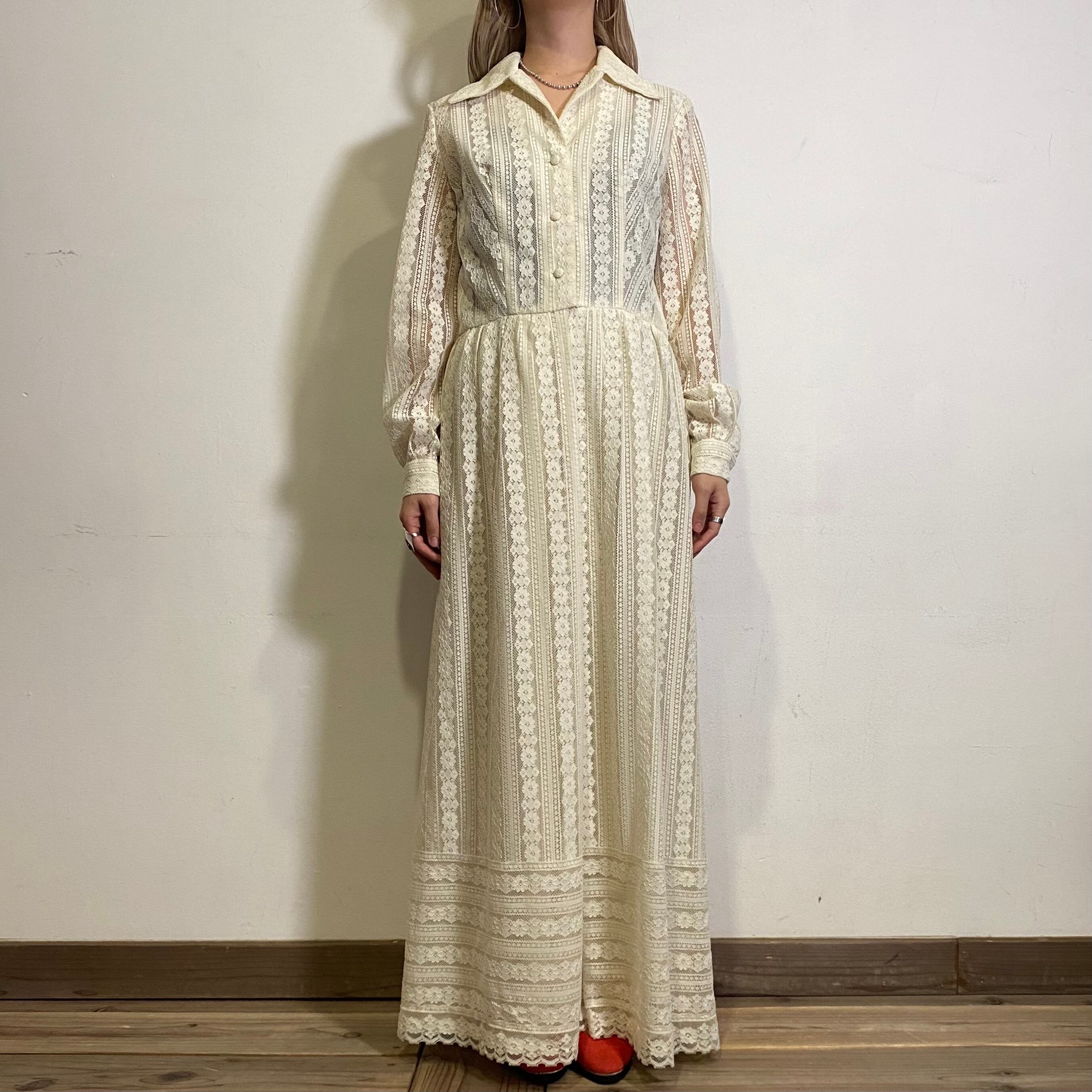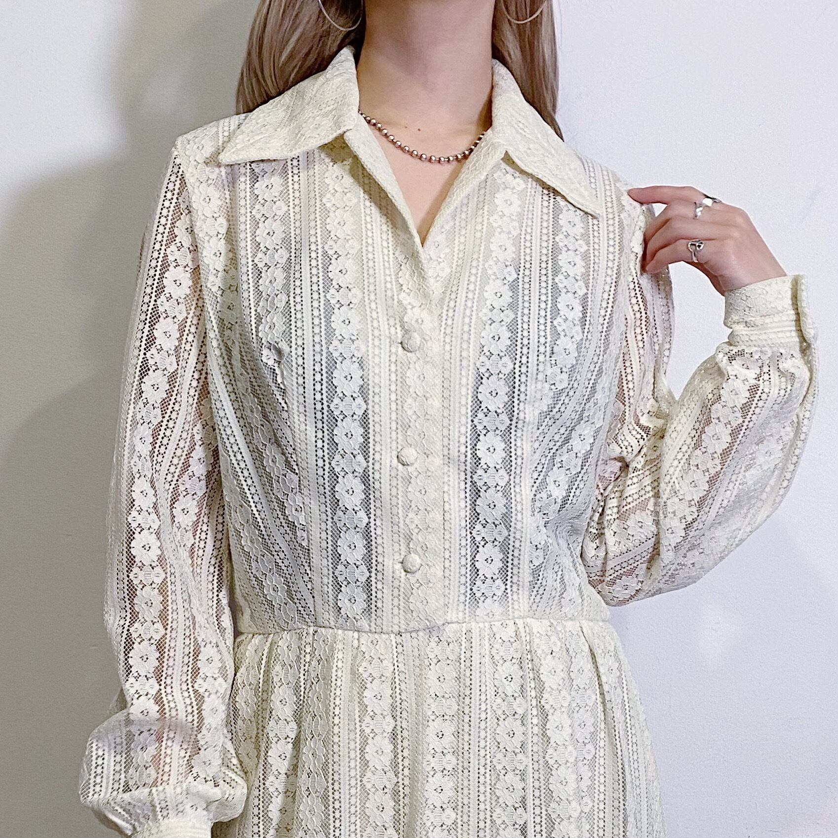 花モチーフの総レースが可愛い、70年代のシャツワンピースです。