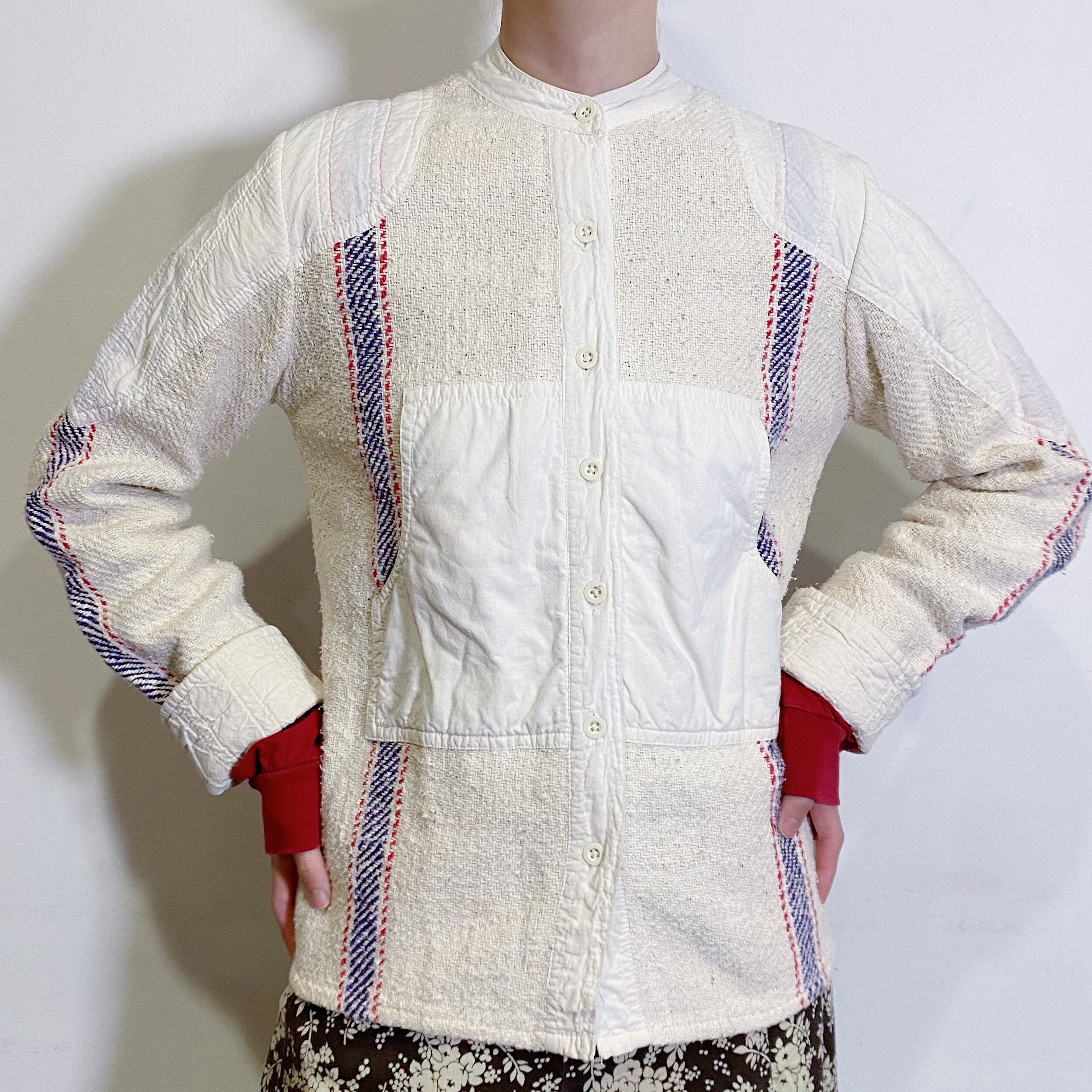 ポコポコとしたラグの風合いに、肩やポケットのキルティングパッチが可愛い70年代のジャケットです。
