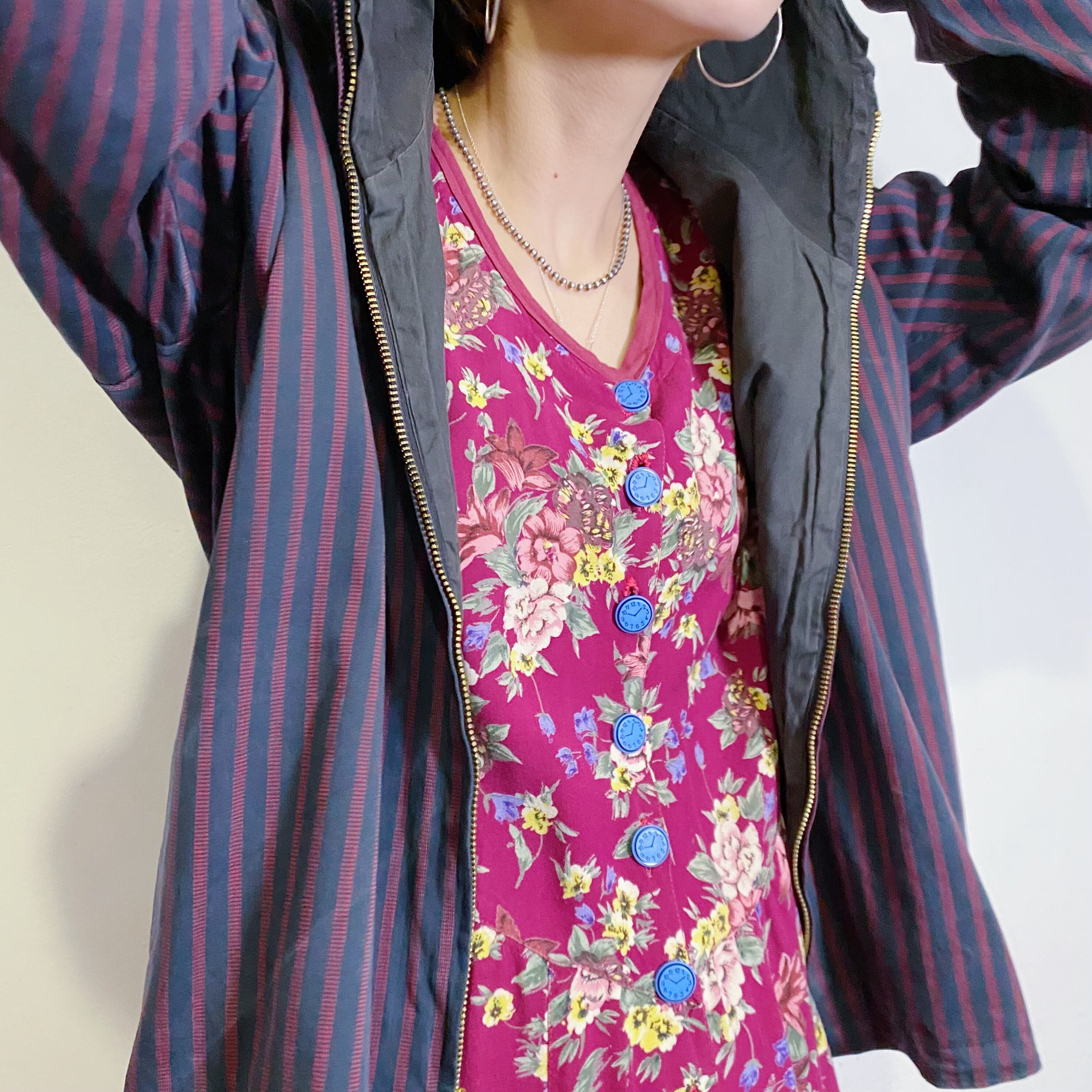 カジュアルなアイテムですが、敢えてガーリーめのワンピースやスカートと合わせても楽しいですよ。