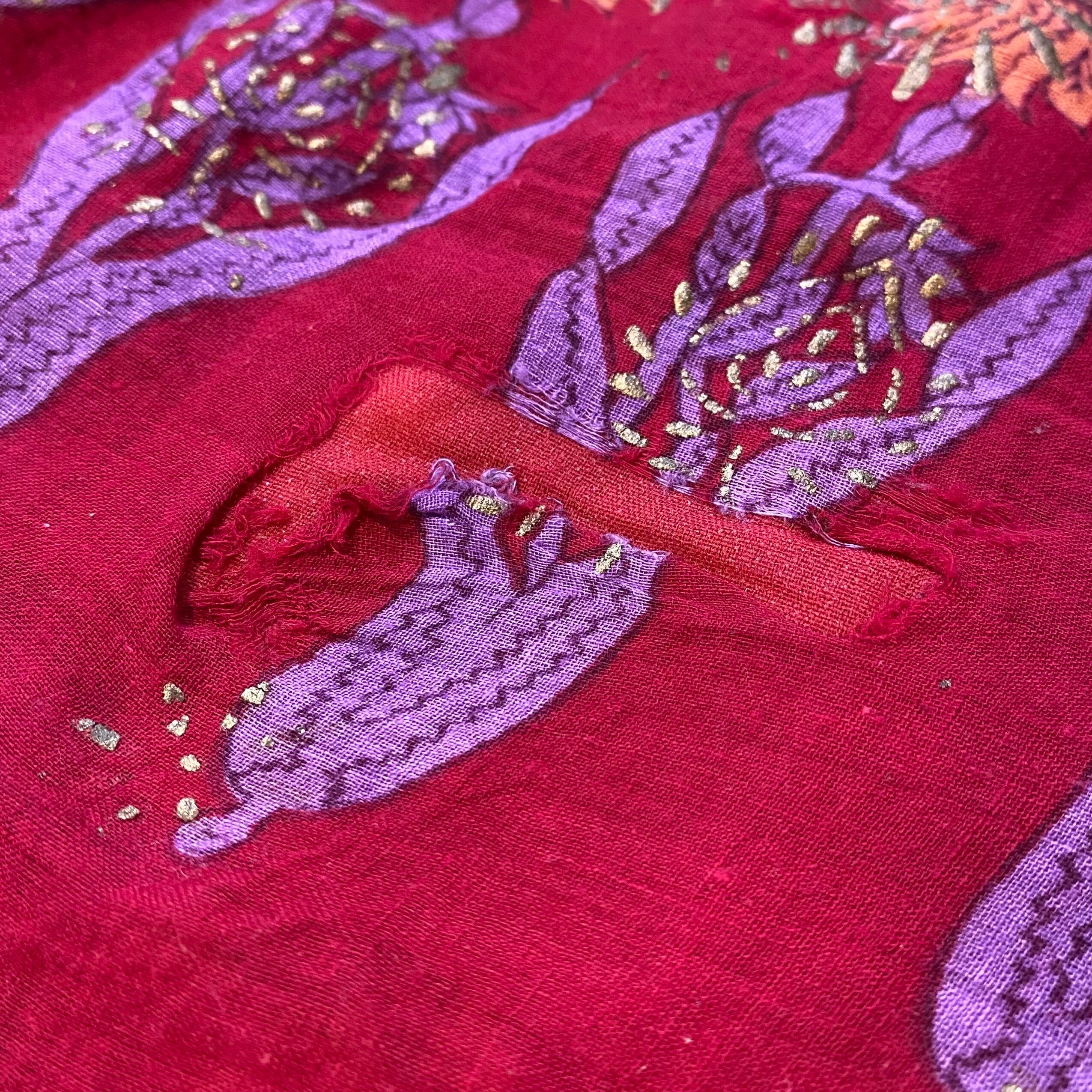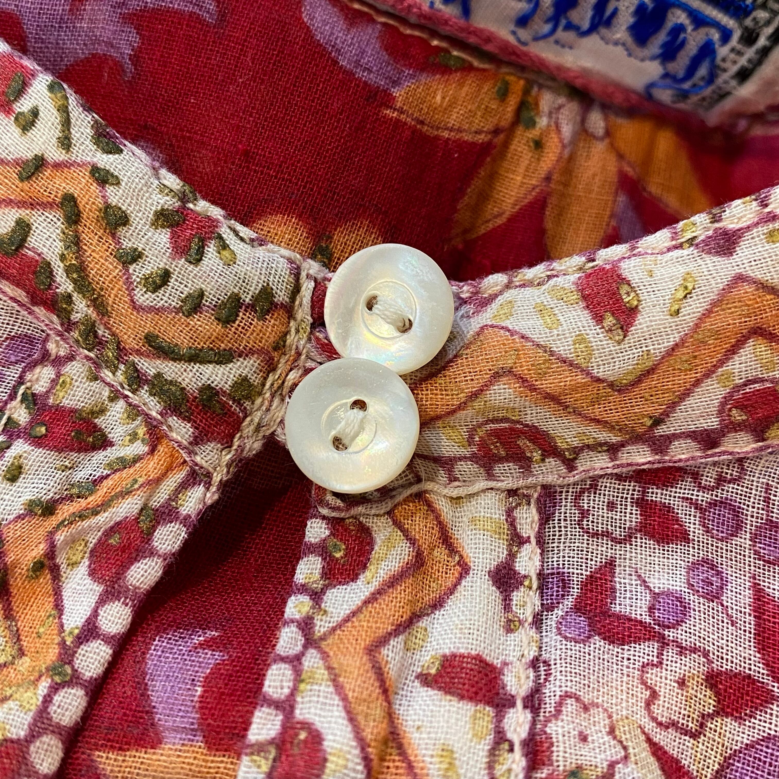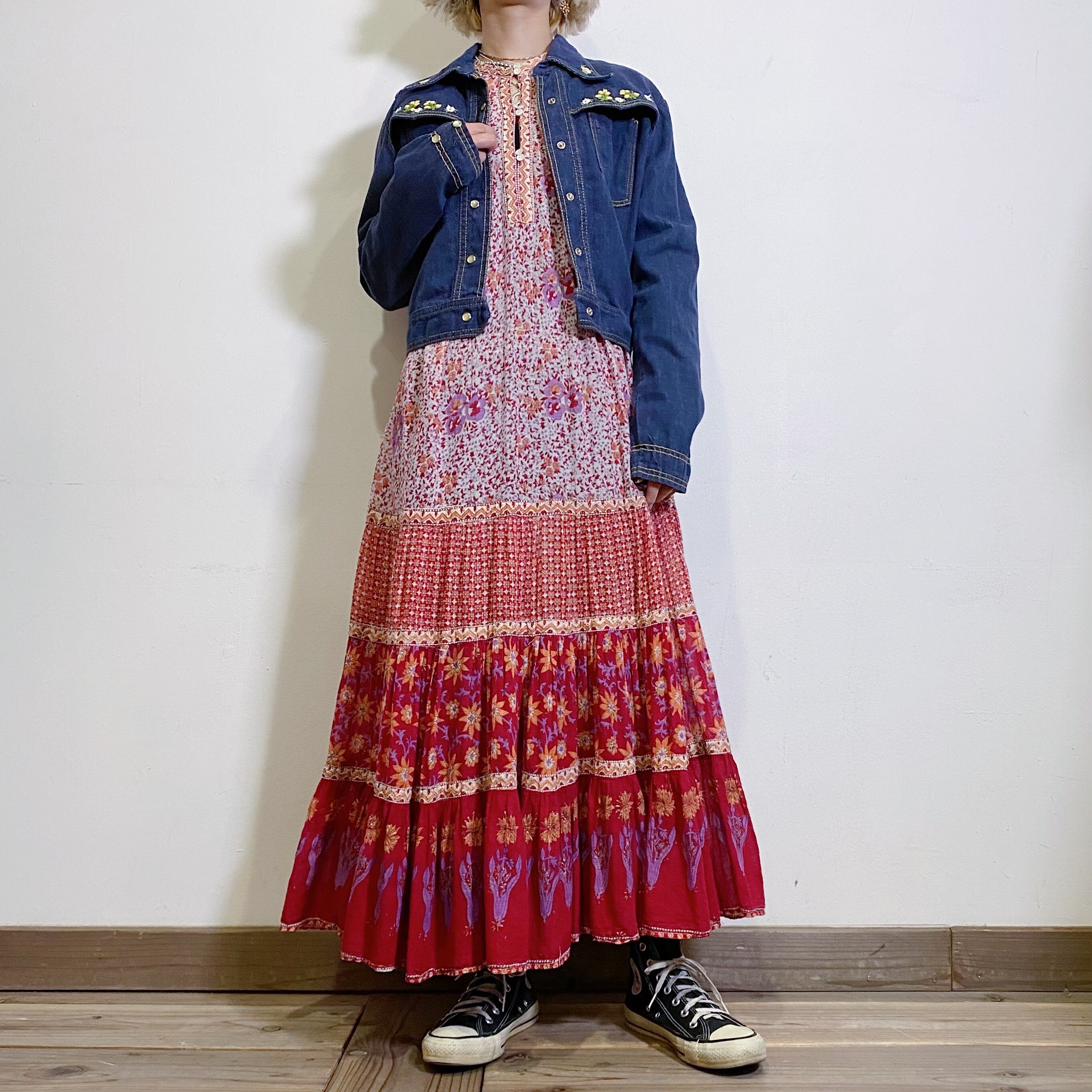 レッドベースに裾の切り替えが可愛い、70年代のインド綿ワンピースです。