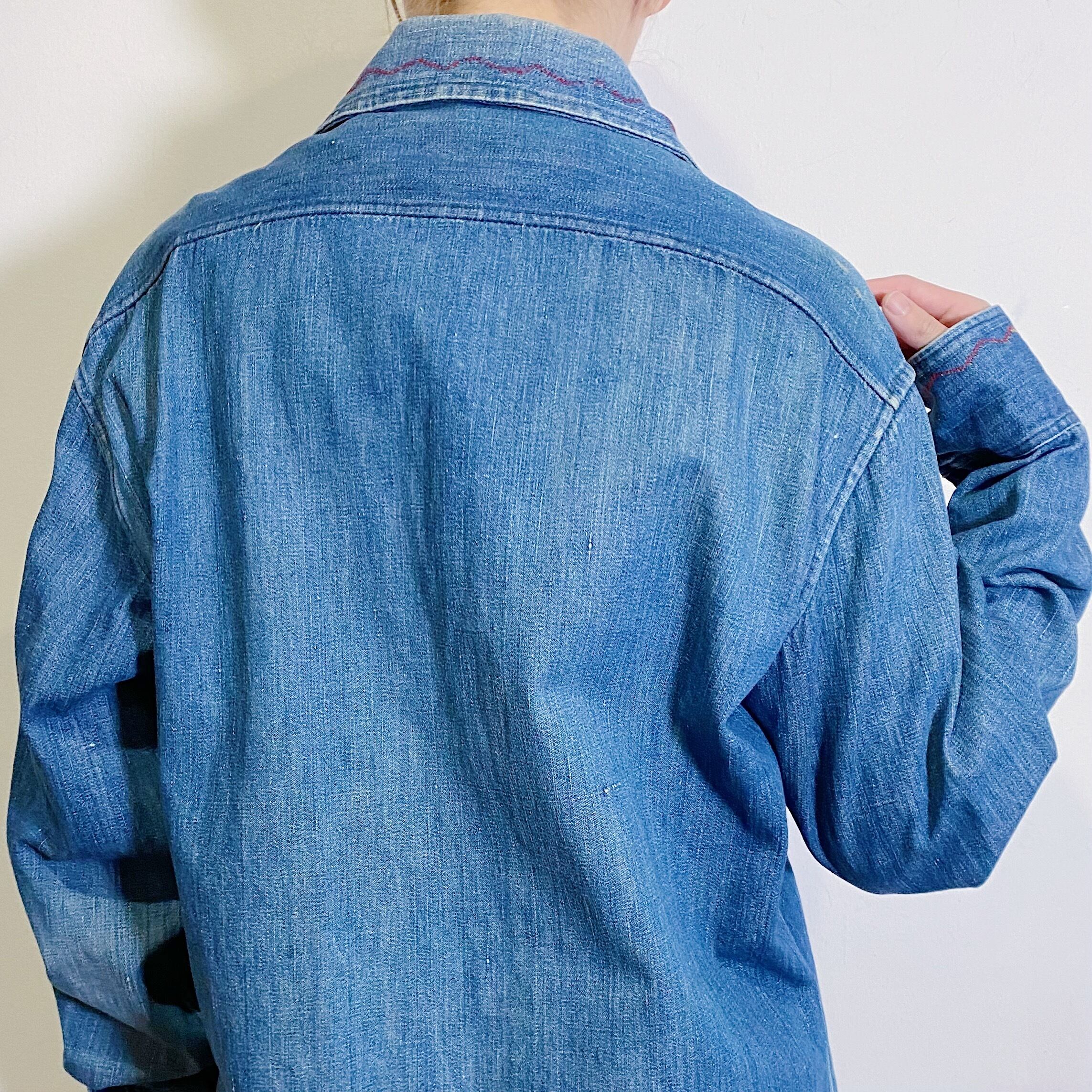 お花や鳥が刺繍された、70年代のデニムジャケットです。
