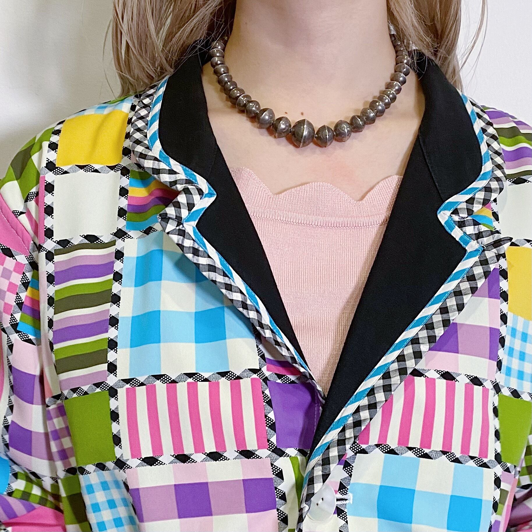 こちらはリバーシブル仕様になっており、裏返すとブラックの無地ベース×チェックと、また違った印象で楽しめますよ。