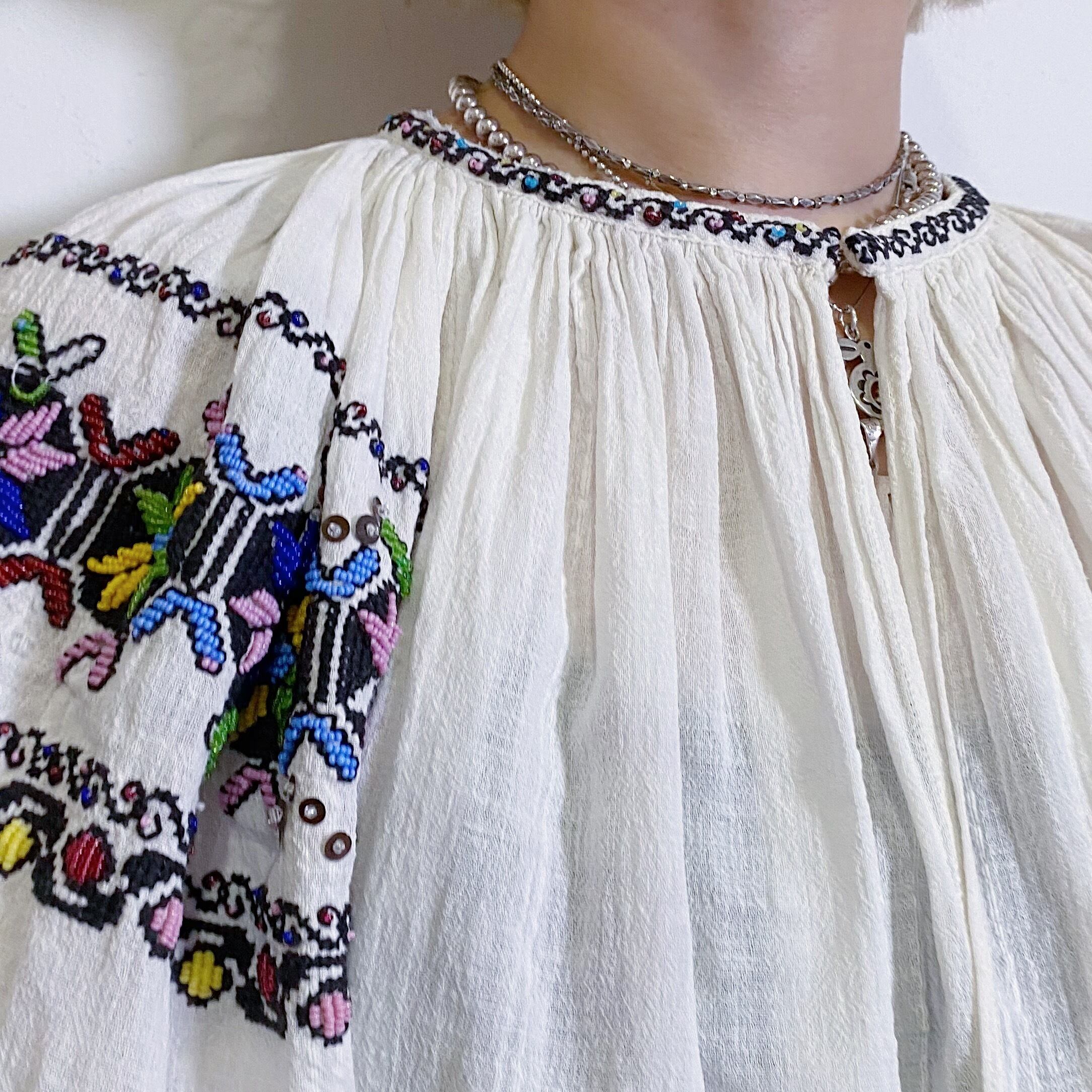 カラフルなビーズや刺繍が施された、ウクライナのチュニックトップスです。