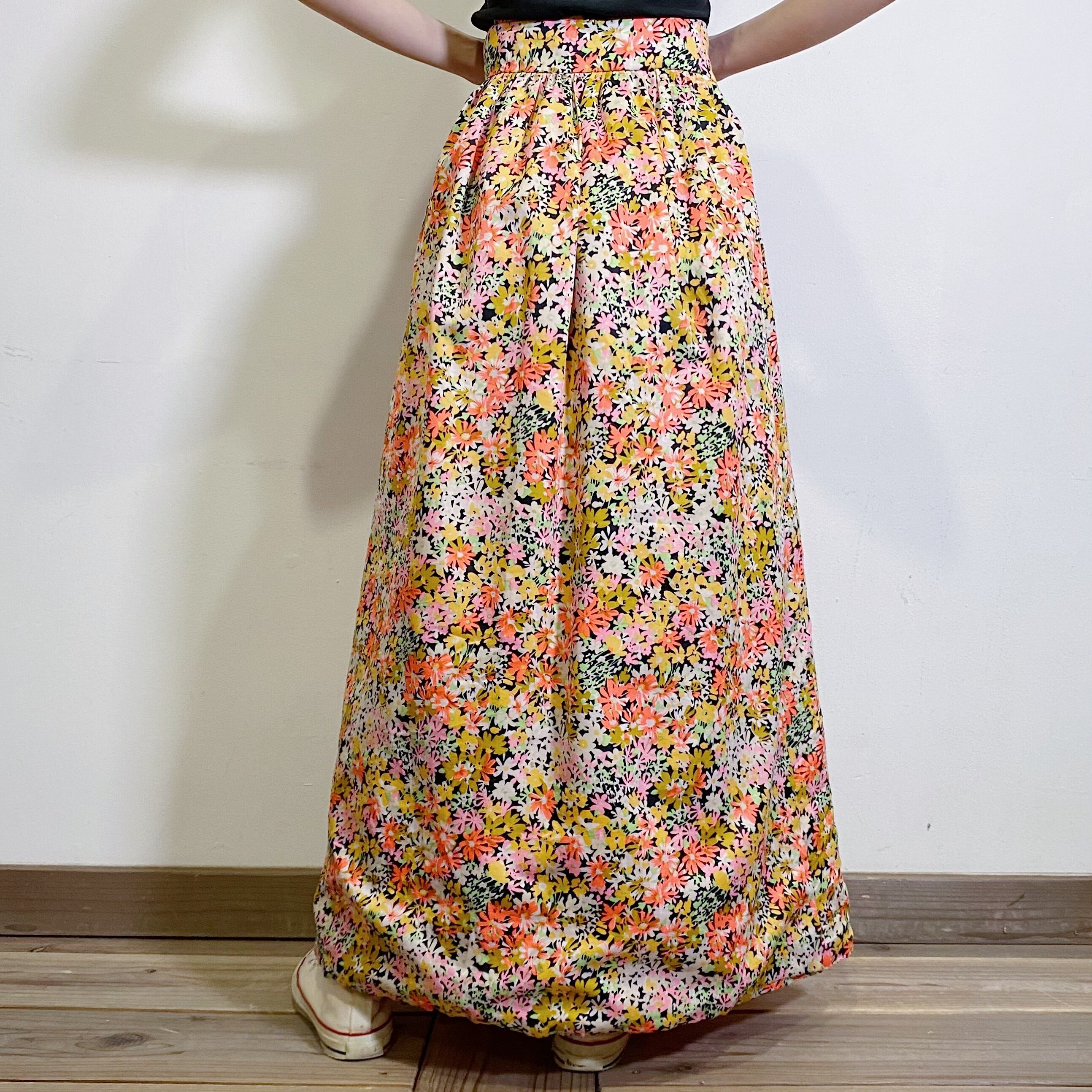 オレンジやピンクの花柄が可愛い、70年代のラップスカートです。