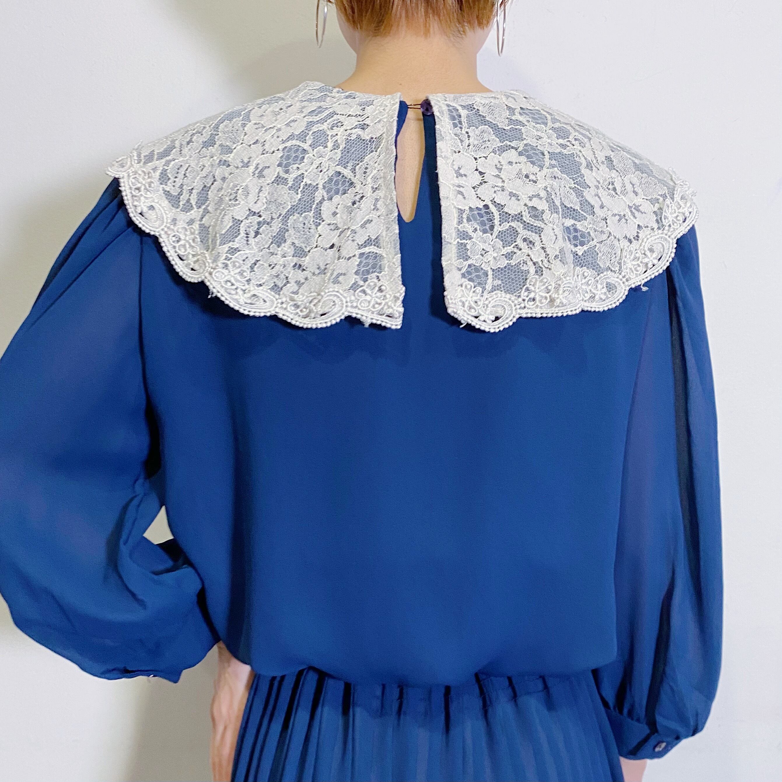大きな白レースの襟が可愛い、80年代のワンピースです。