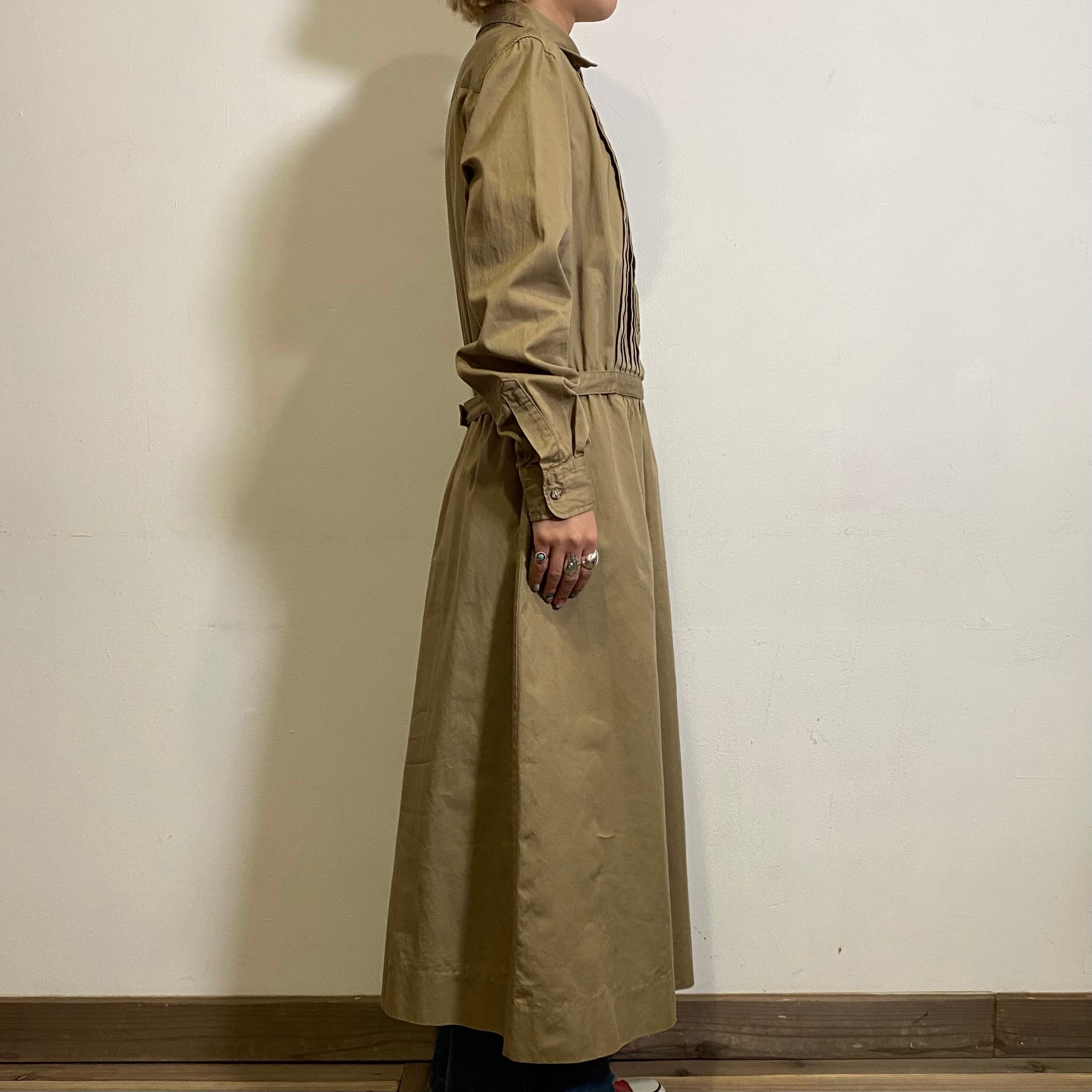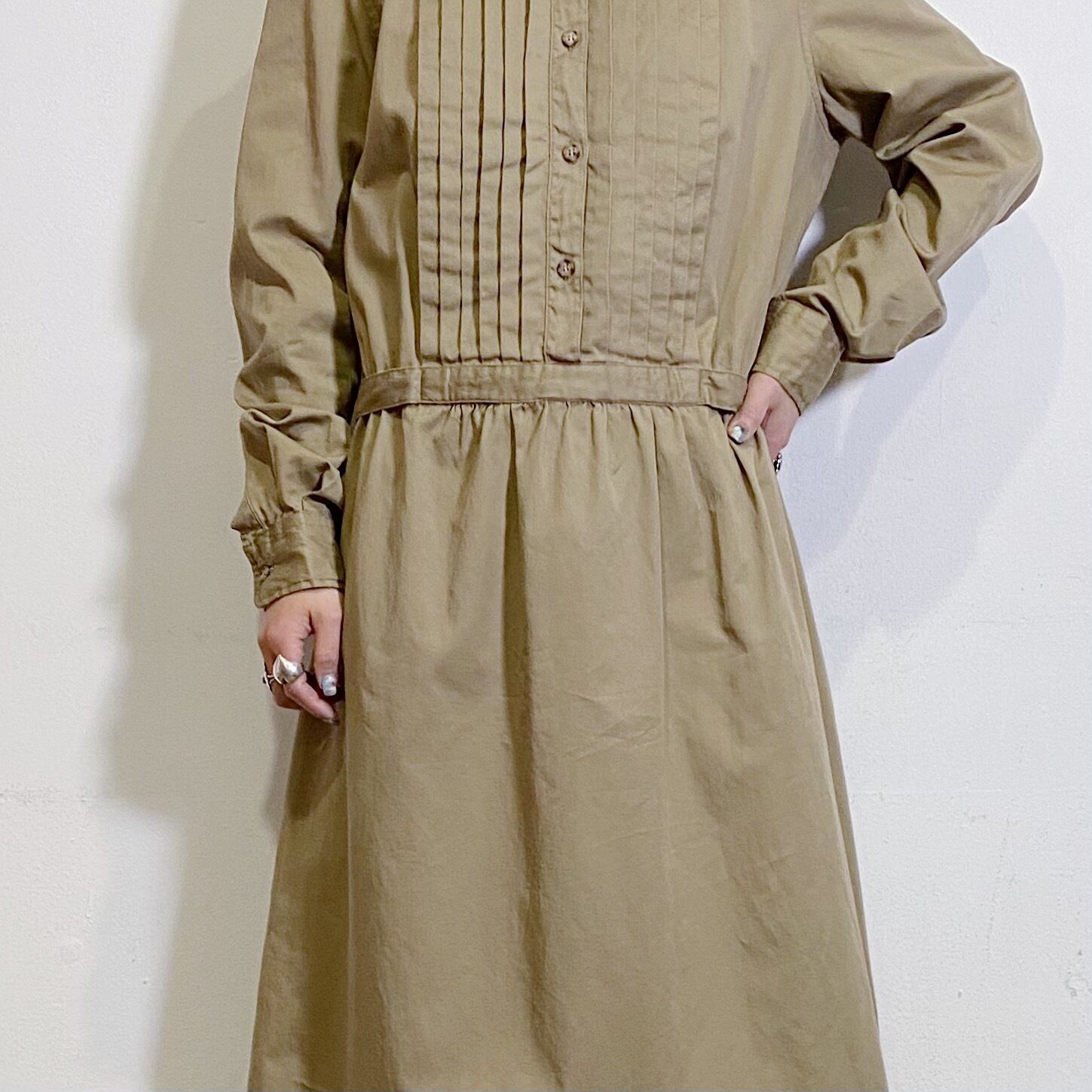 ベージュカラーでエイジレスに着こなしすい、80年代のシャツワンピースです。