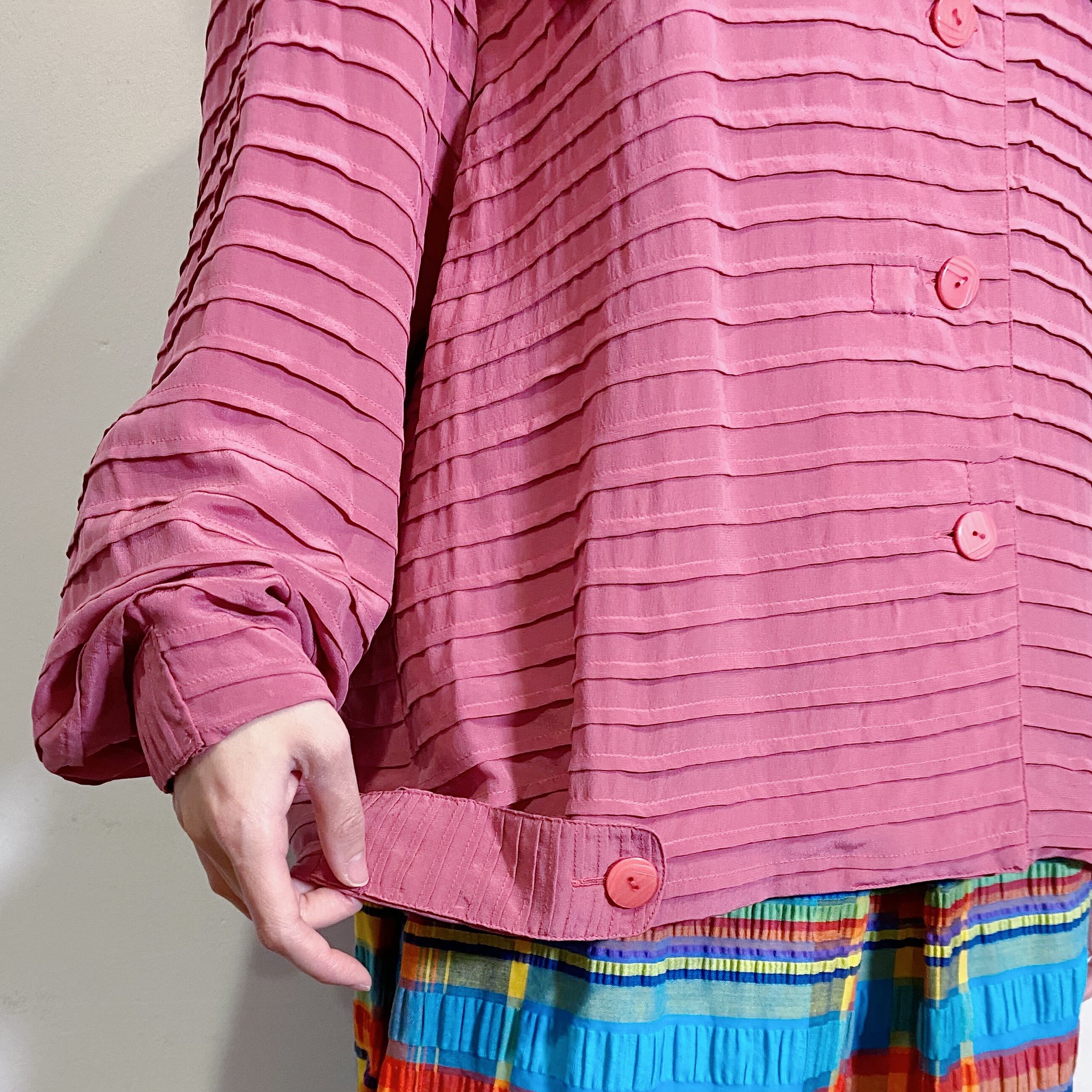 凝ったプリーツデザインとキルティングに、軽やかで上質なシルク素材が魅力の一枚。