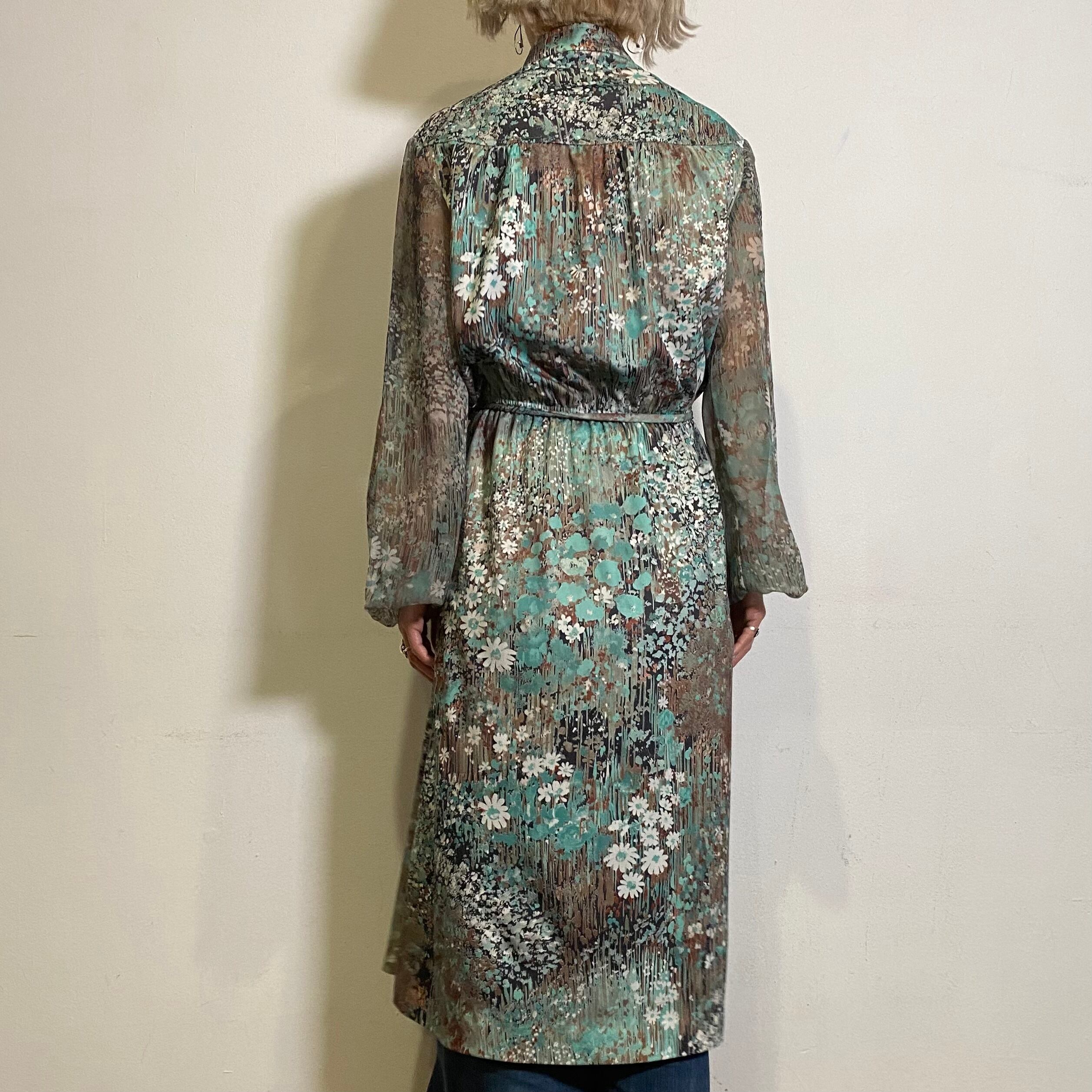 水彩画のようなアートな花柄が可愛い、70年代のワンピースです。