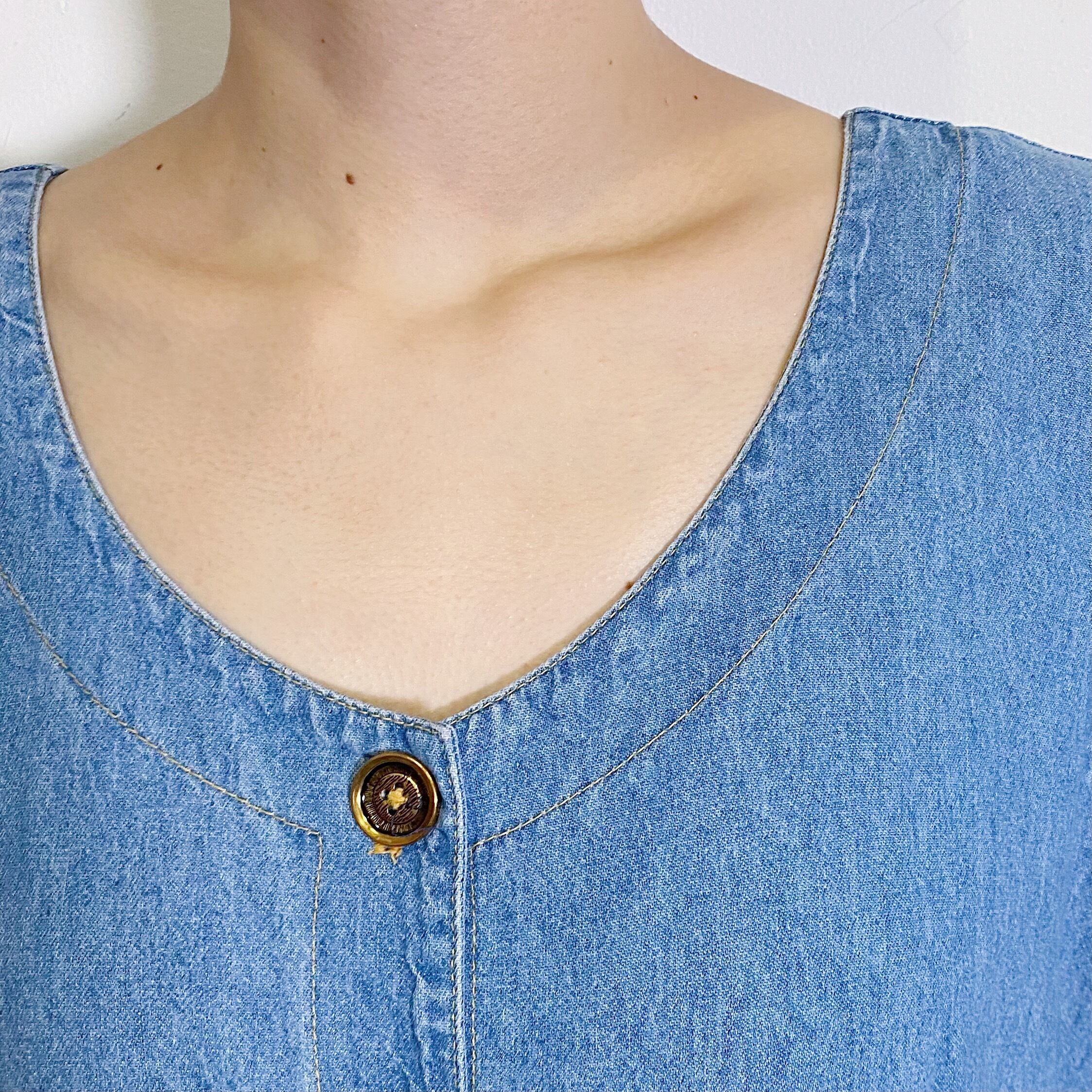 パフスリーブが可愛い、80年代のデニムワンピースです。