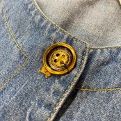 シンプルながら、フロントのゴールドボタンやウエストの切り替えなど凝ったデザインの一枚。