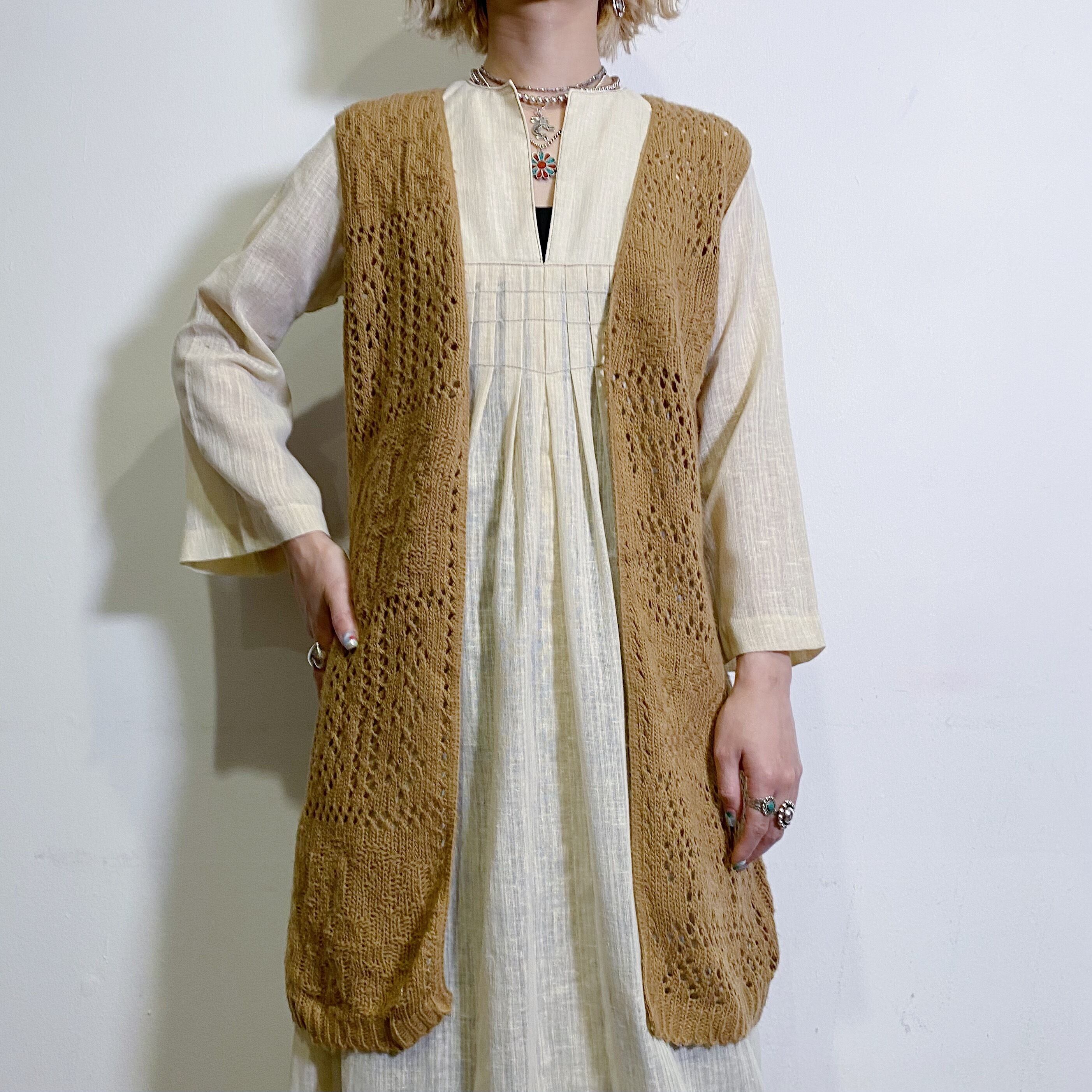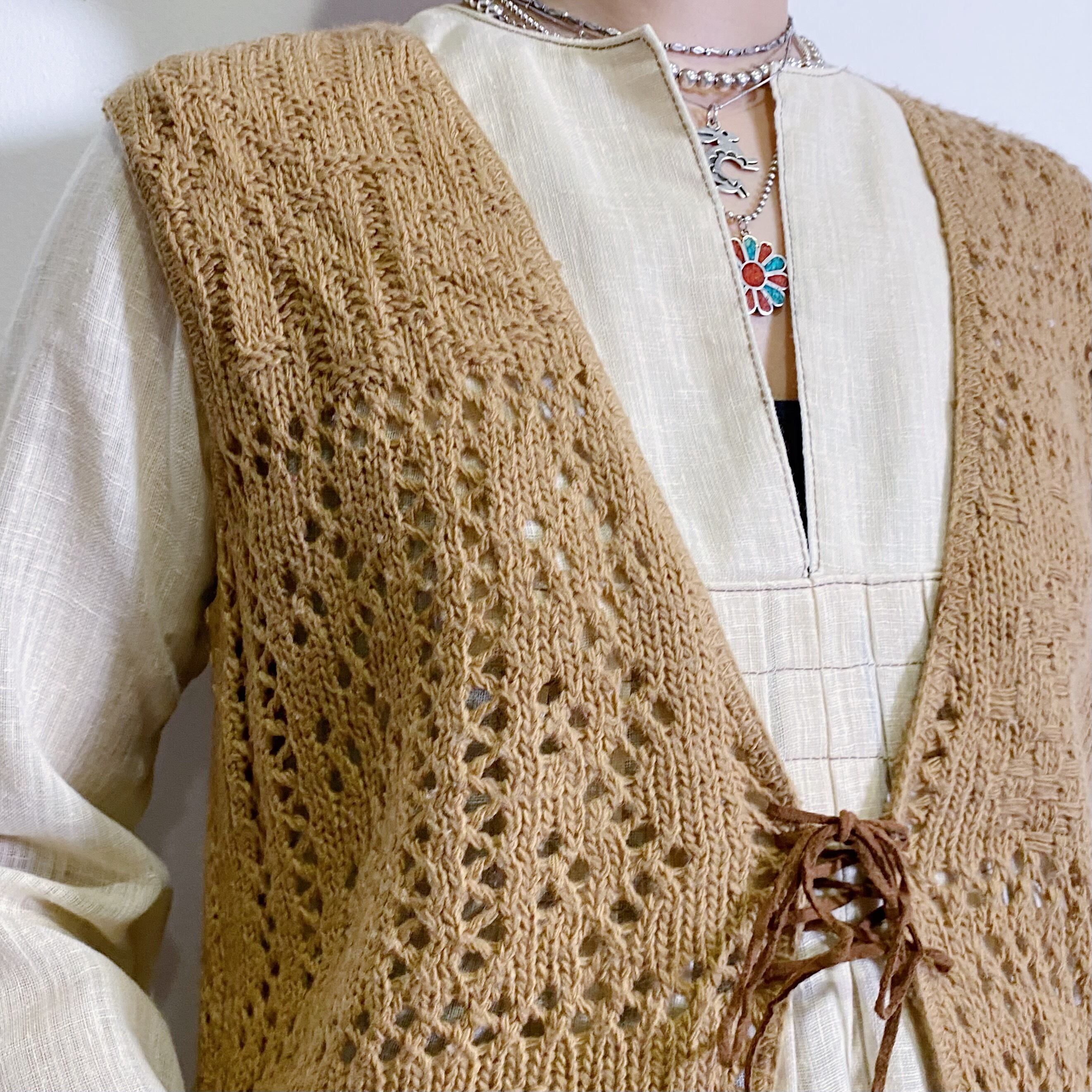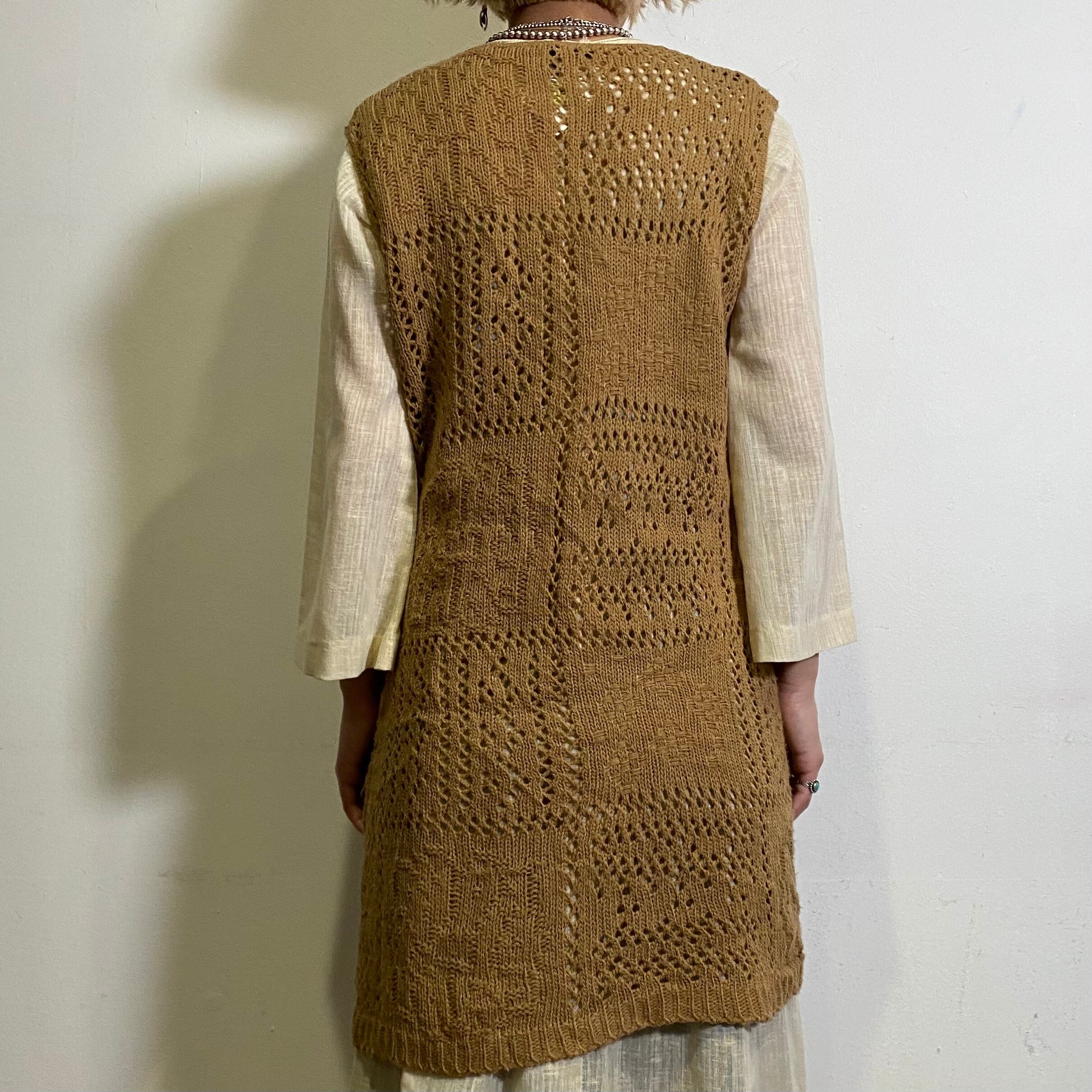 ブラウンカラーで大変使い勝手の良い、クロシェベストです。