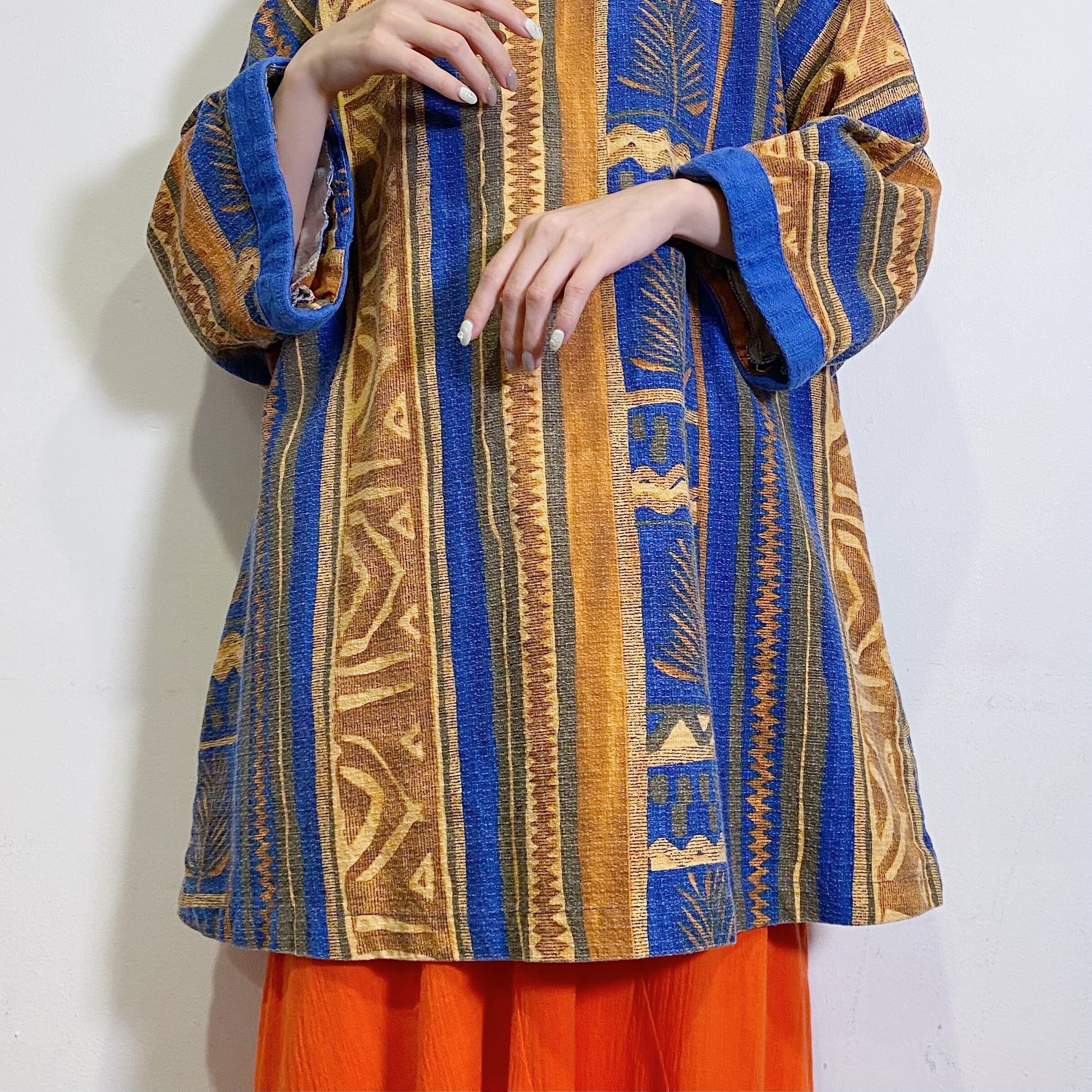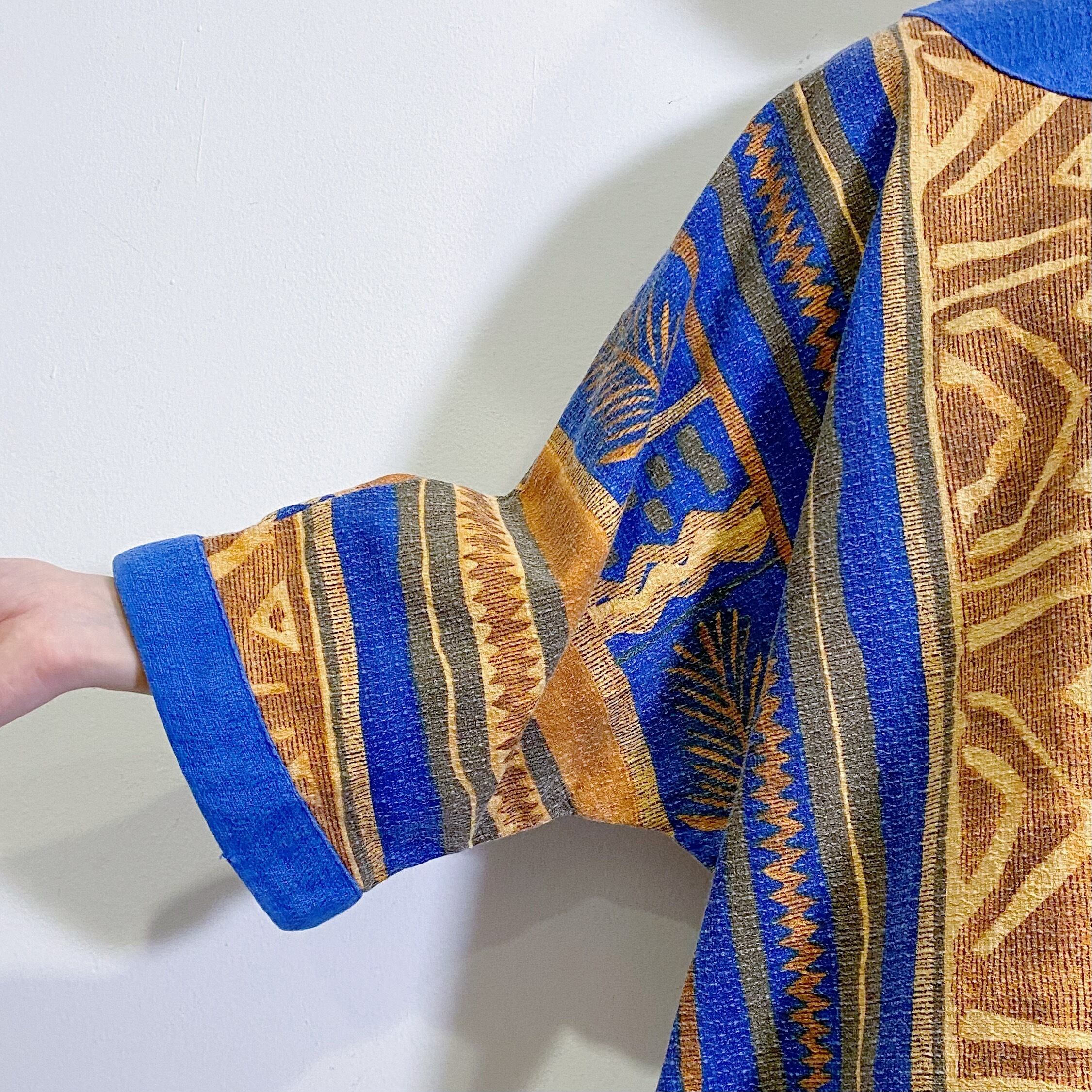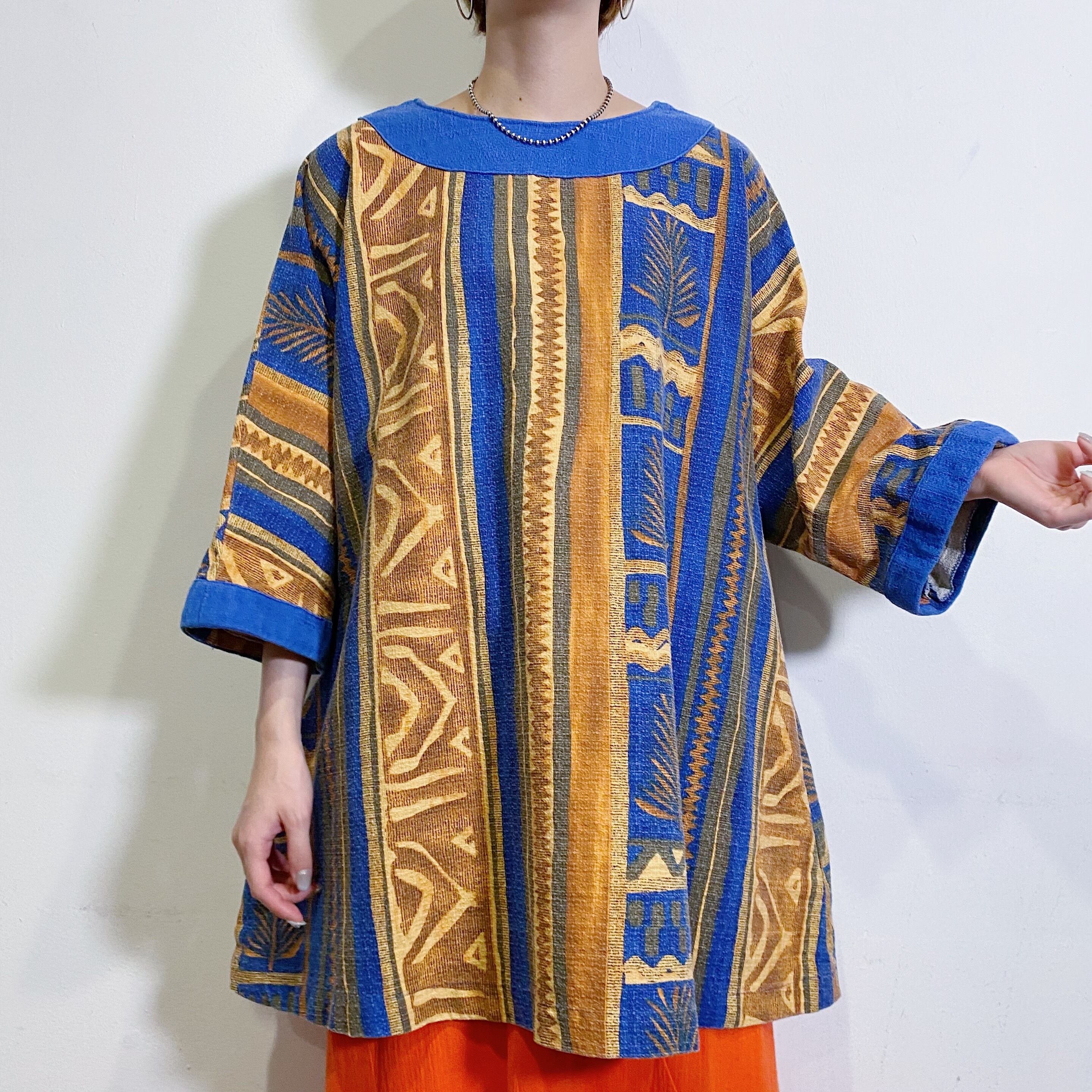 木やジグザグとした不思議な模様に、ビックシルエットなデザインが魅力的の一枚。