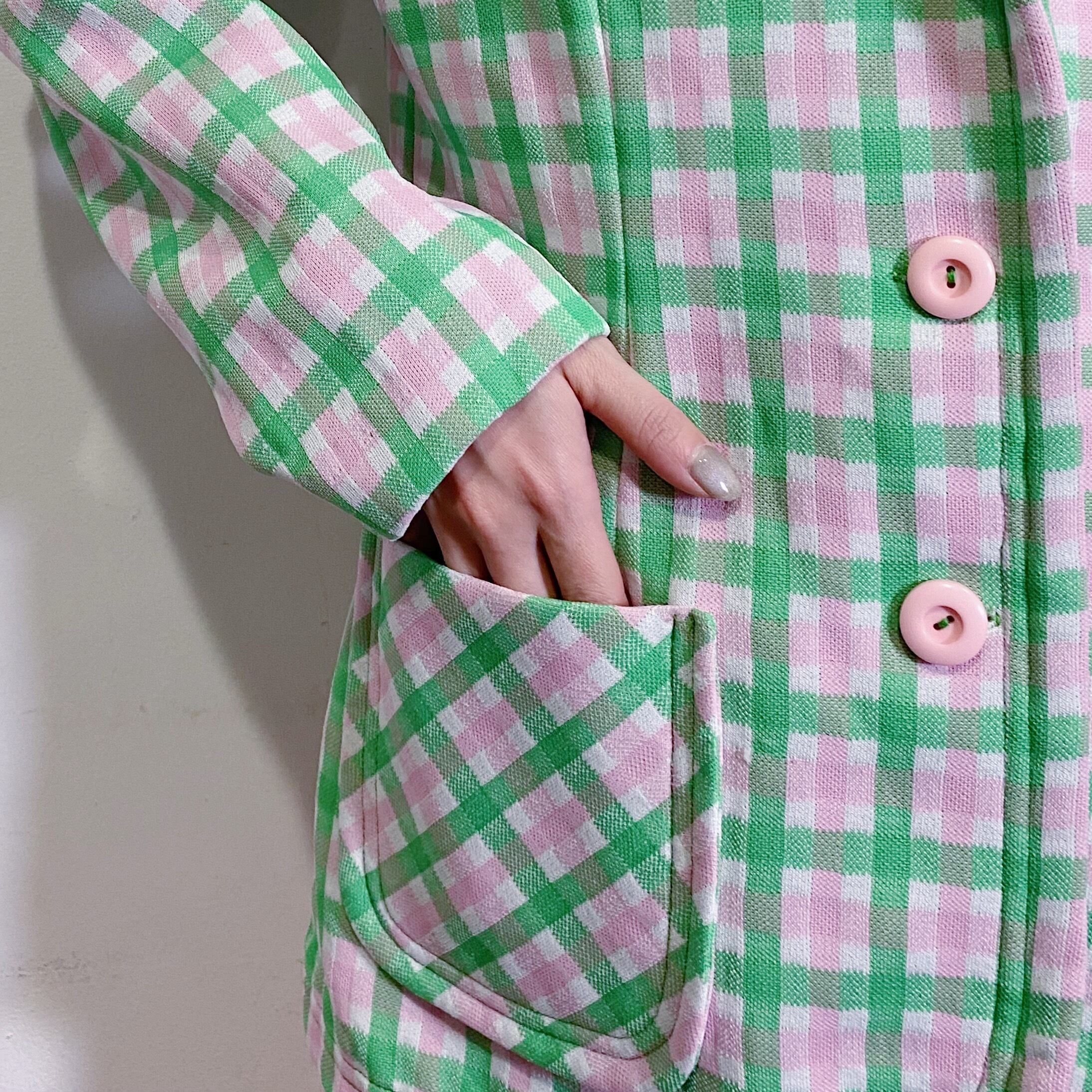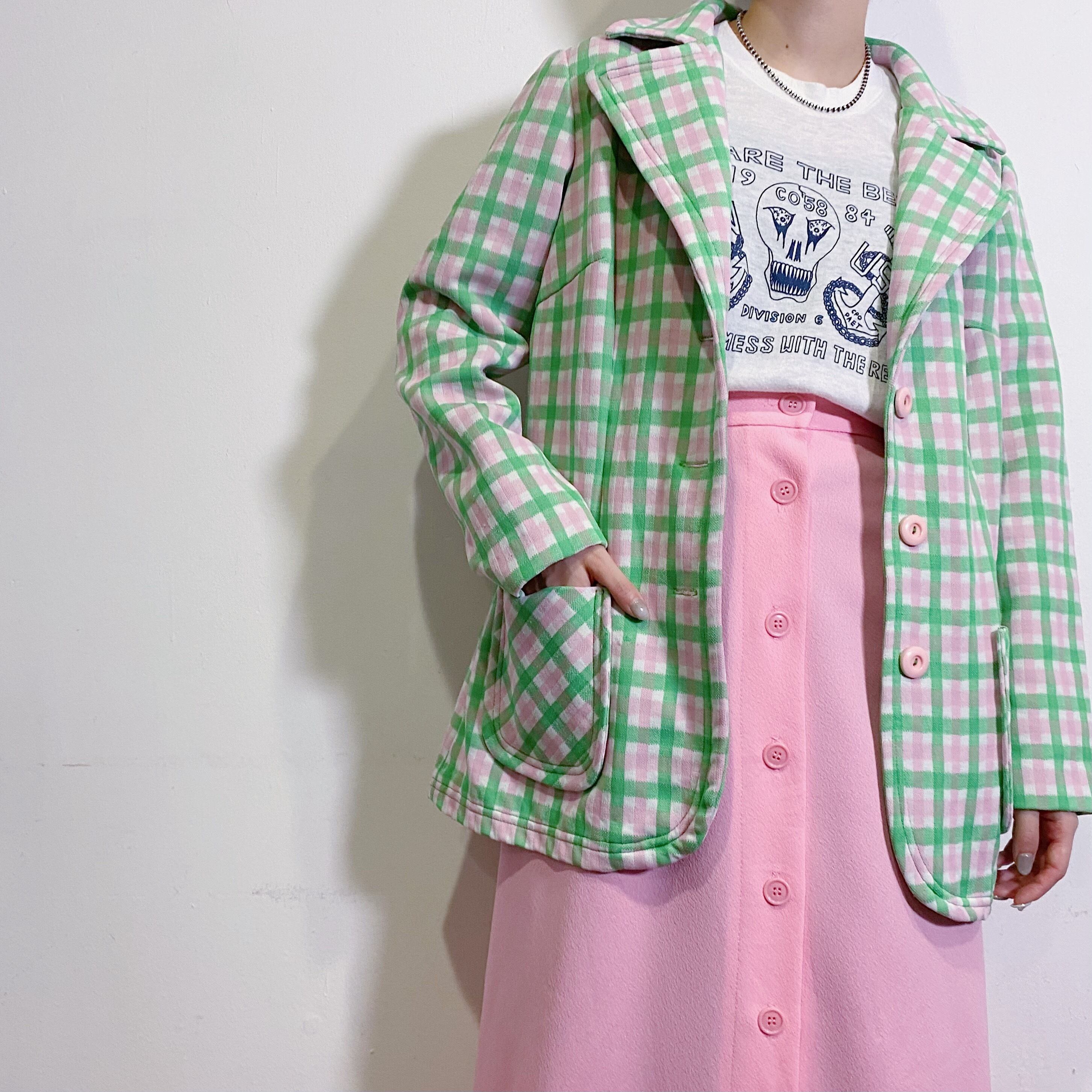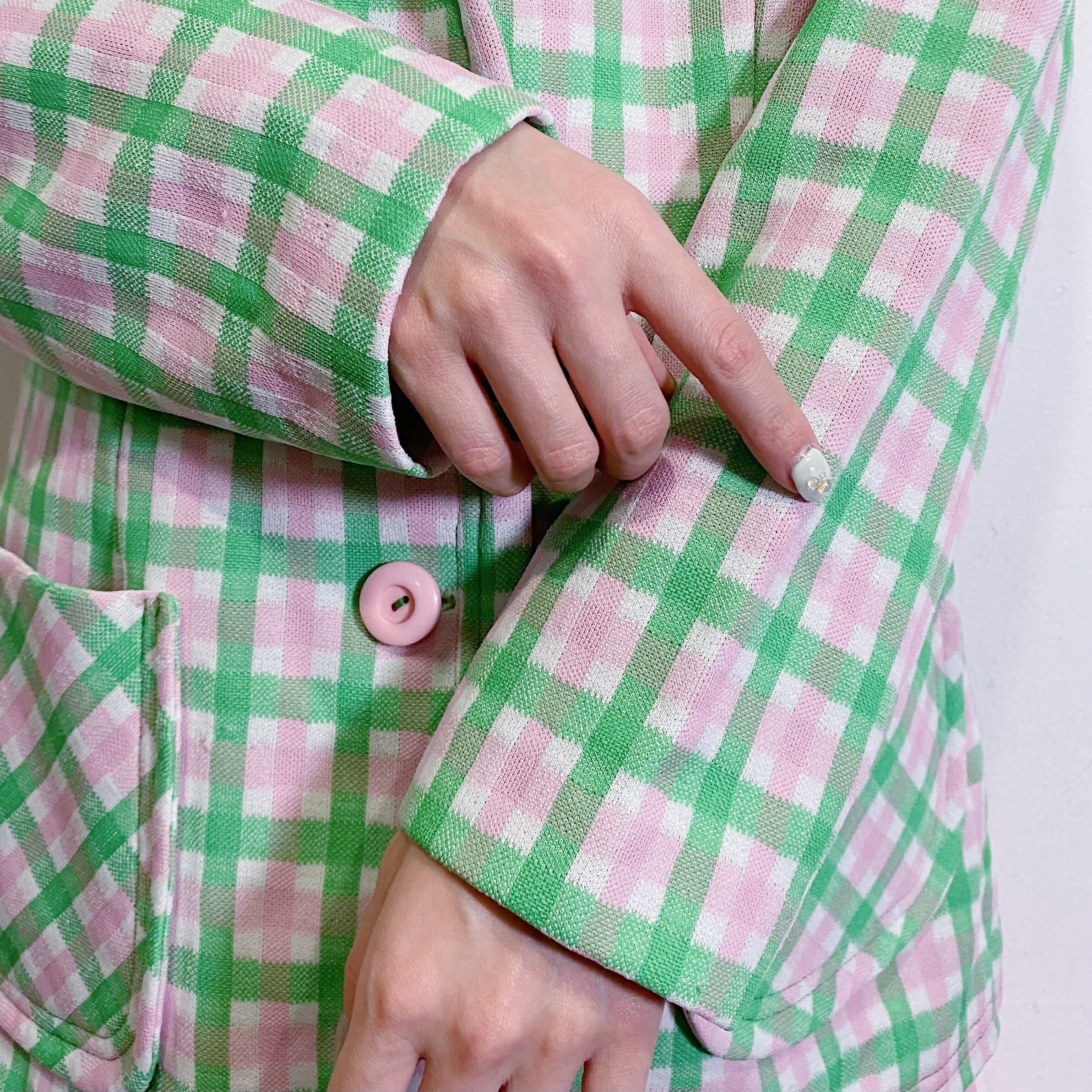 グリーンとピンクのチェックが可愛い、70年代のテーラードジャケットです。