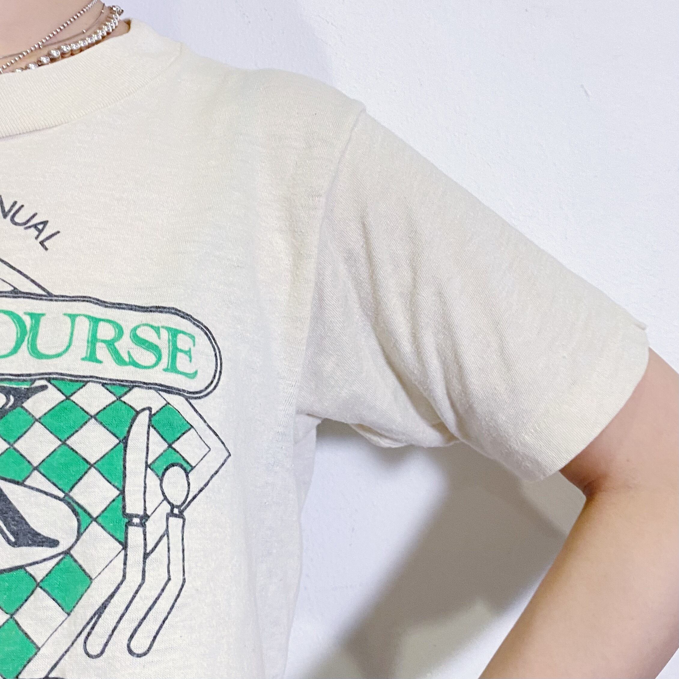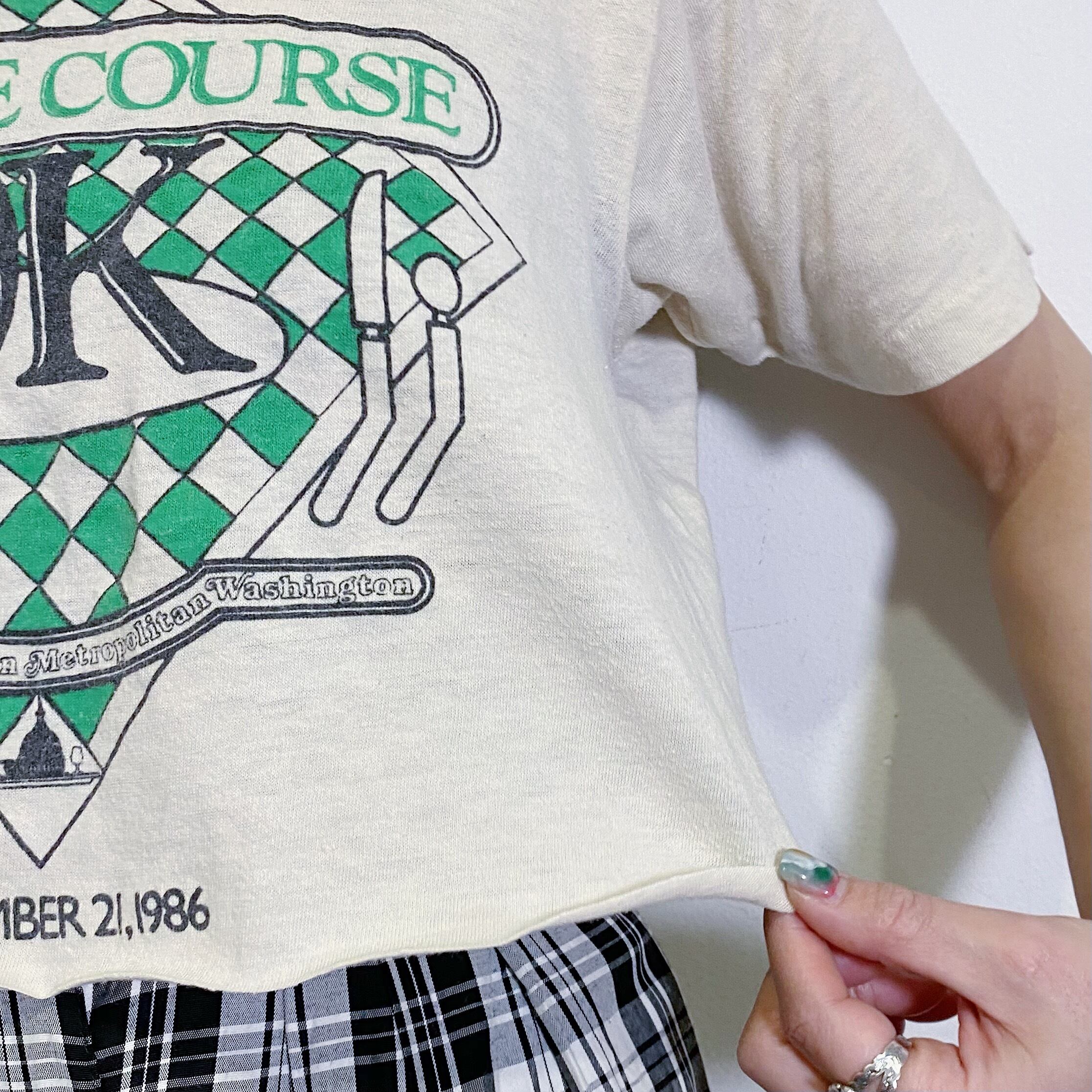 カットオフされたショートな丈感が可愛い、80年代のTシャツです。