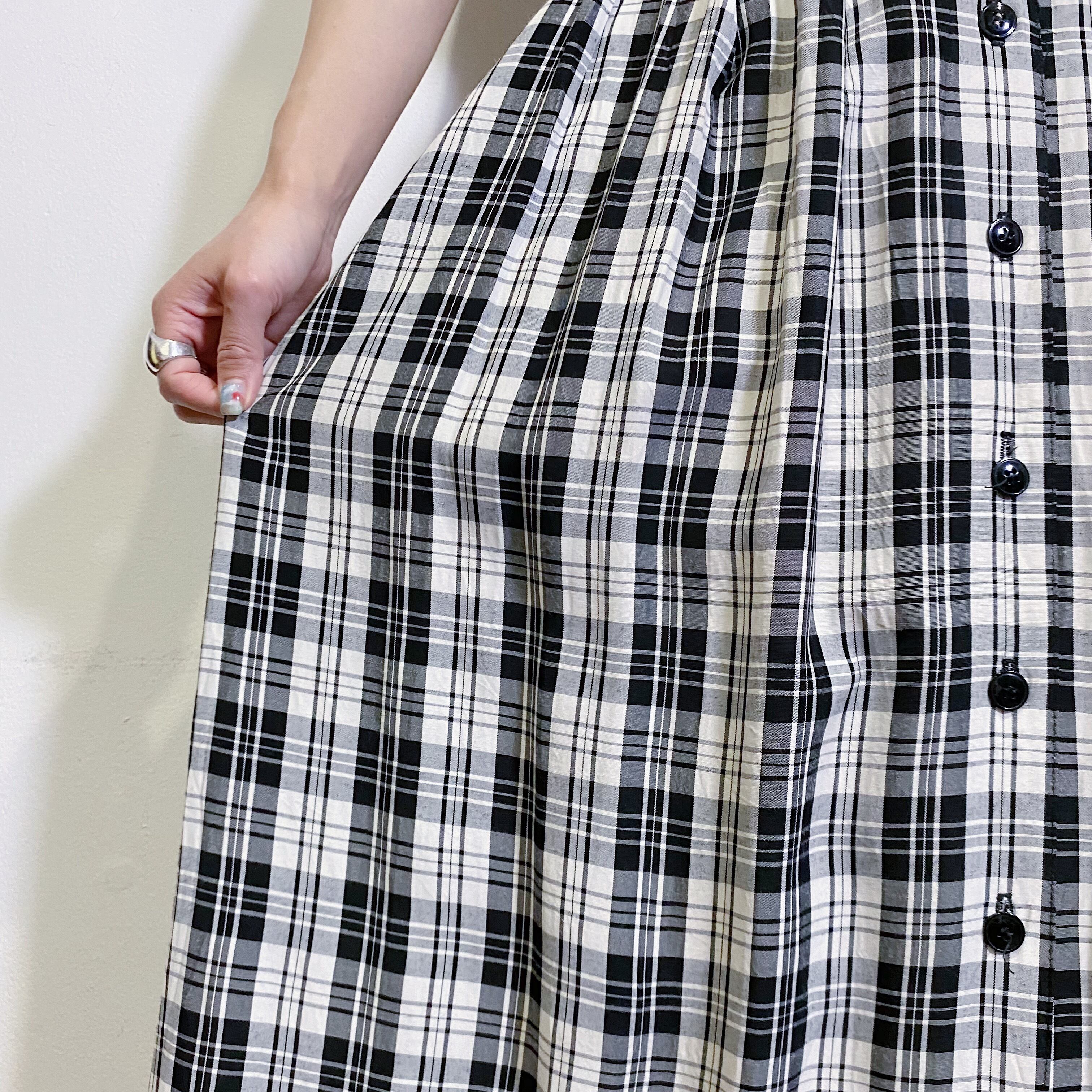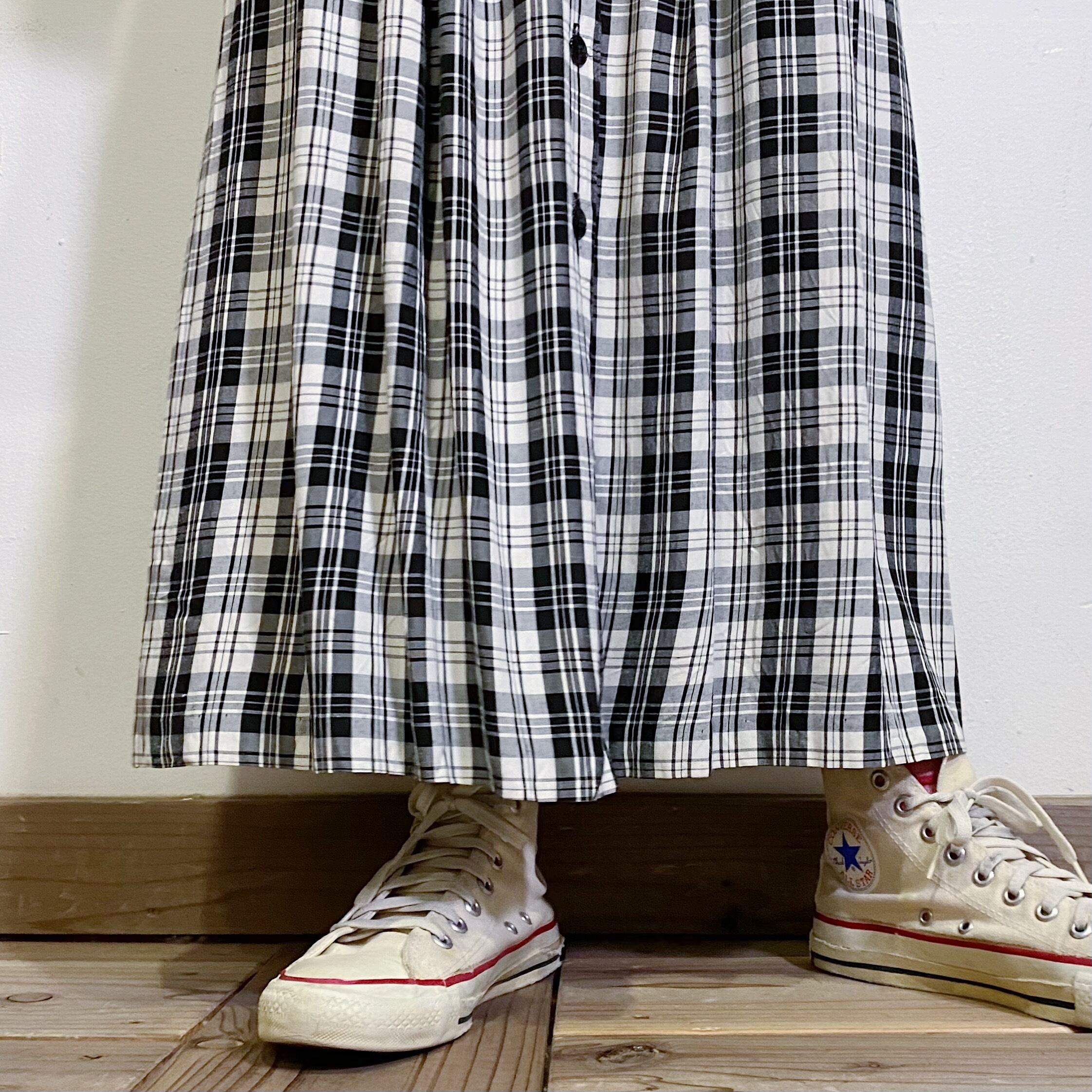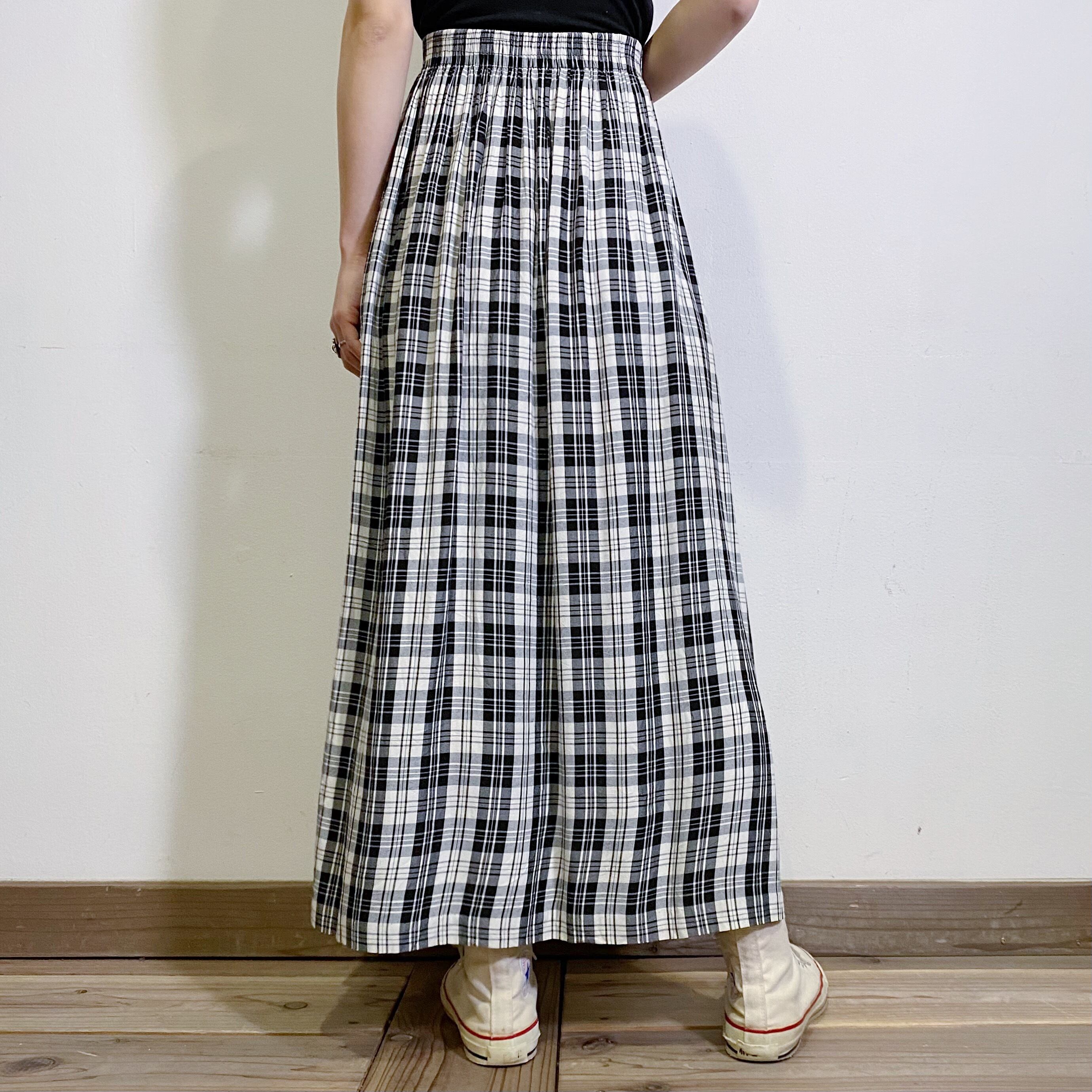 モノトーンカラーのチェックが可愛い、80年代のロングスカートです。