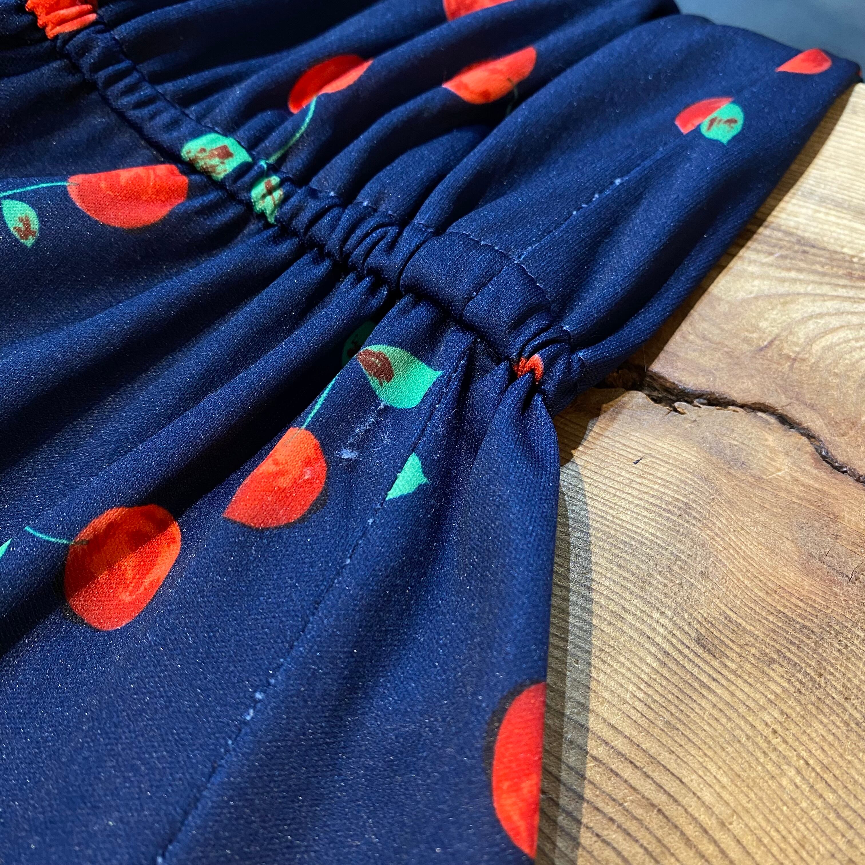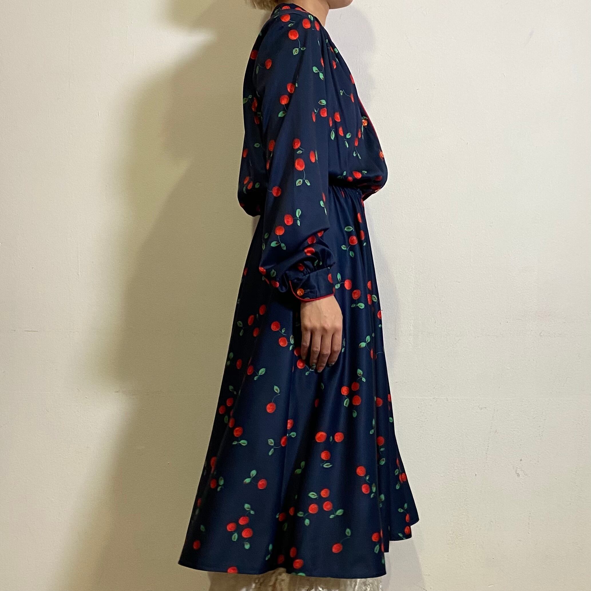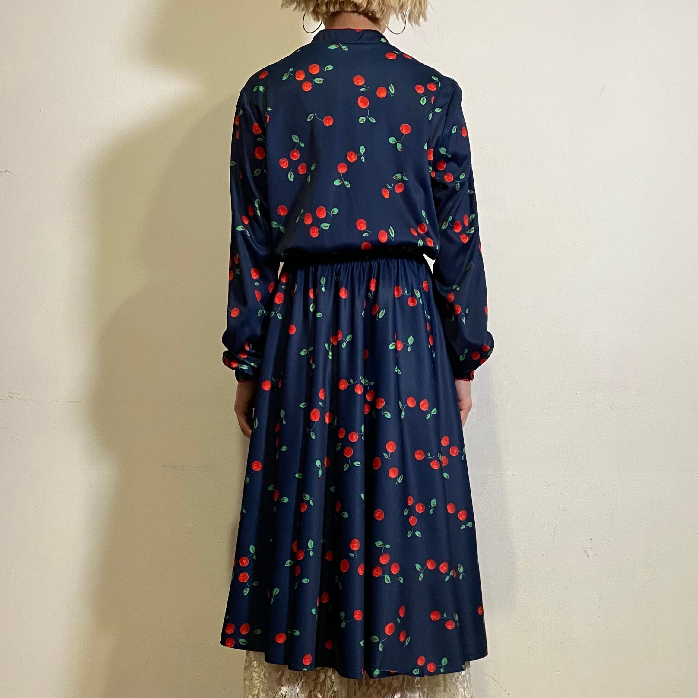 ネイビーベースにさくらんぼ柄が可愛い、80年代のワンピースです。