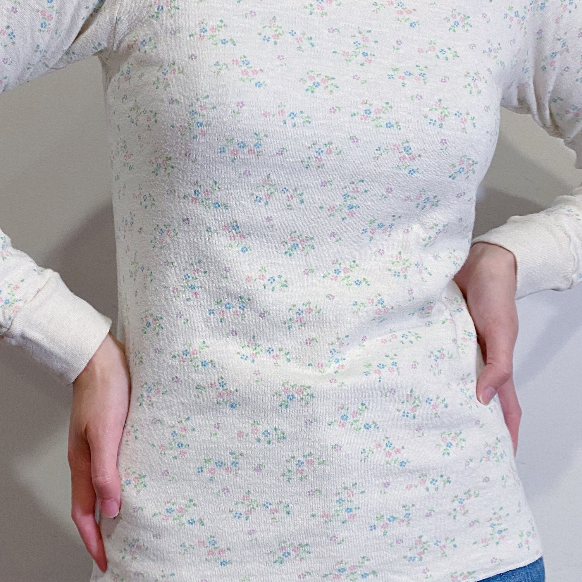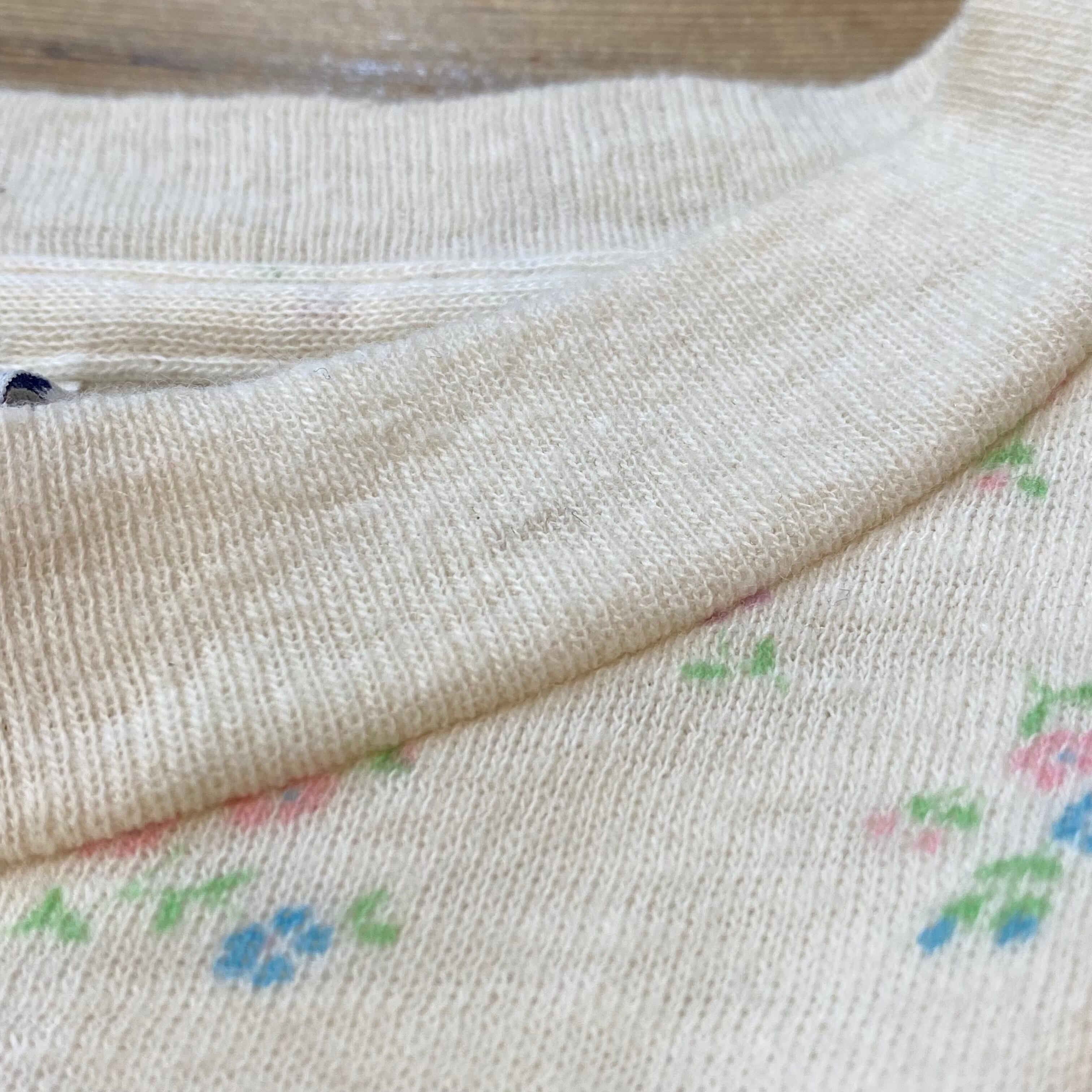 ホワイトベースにパステルの小花柄が可愛い、70年代のロンTです。