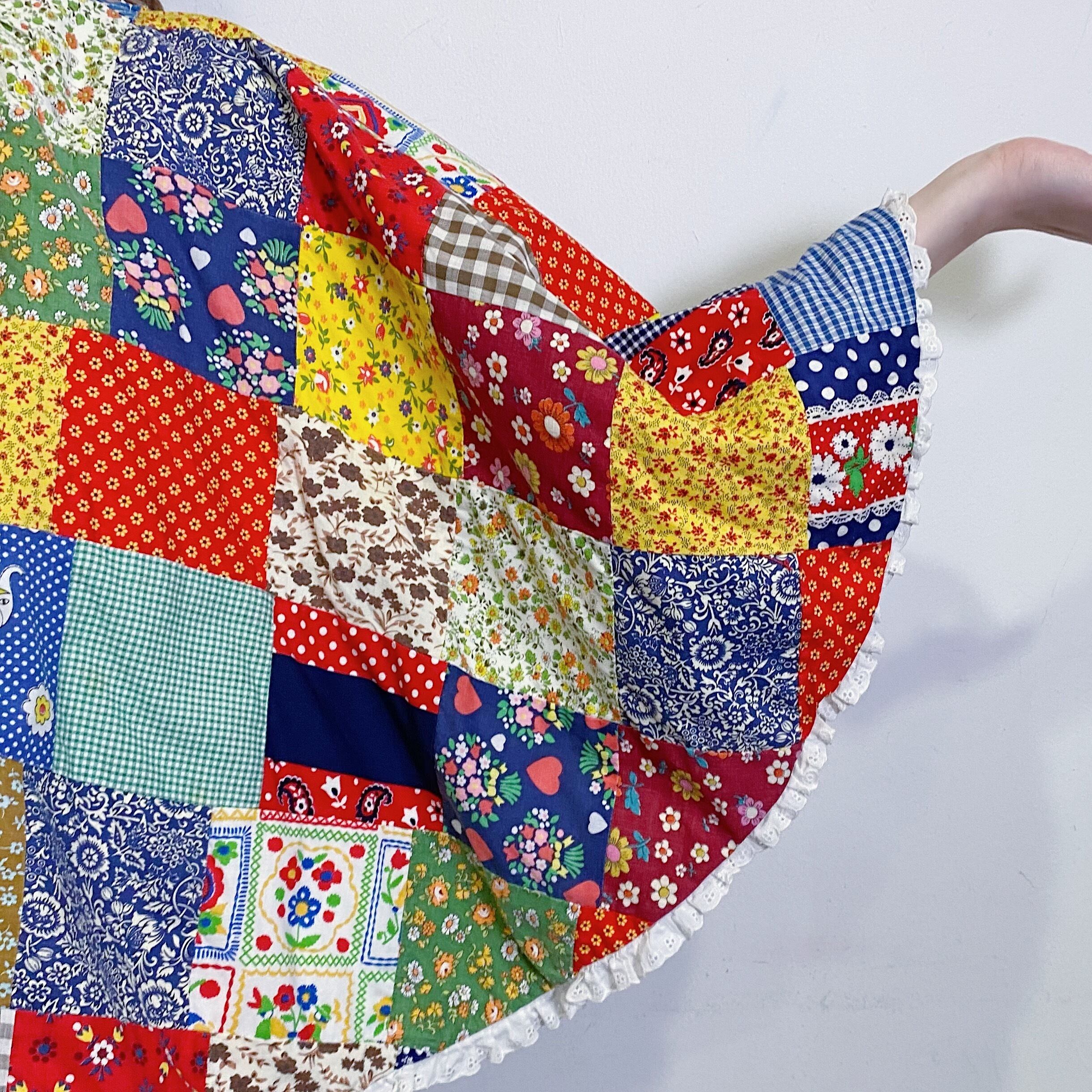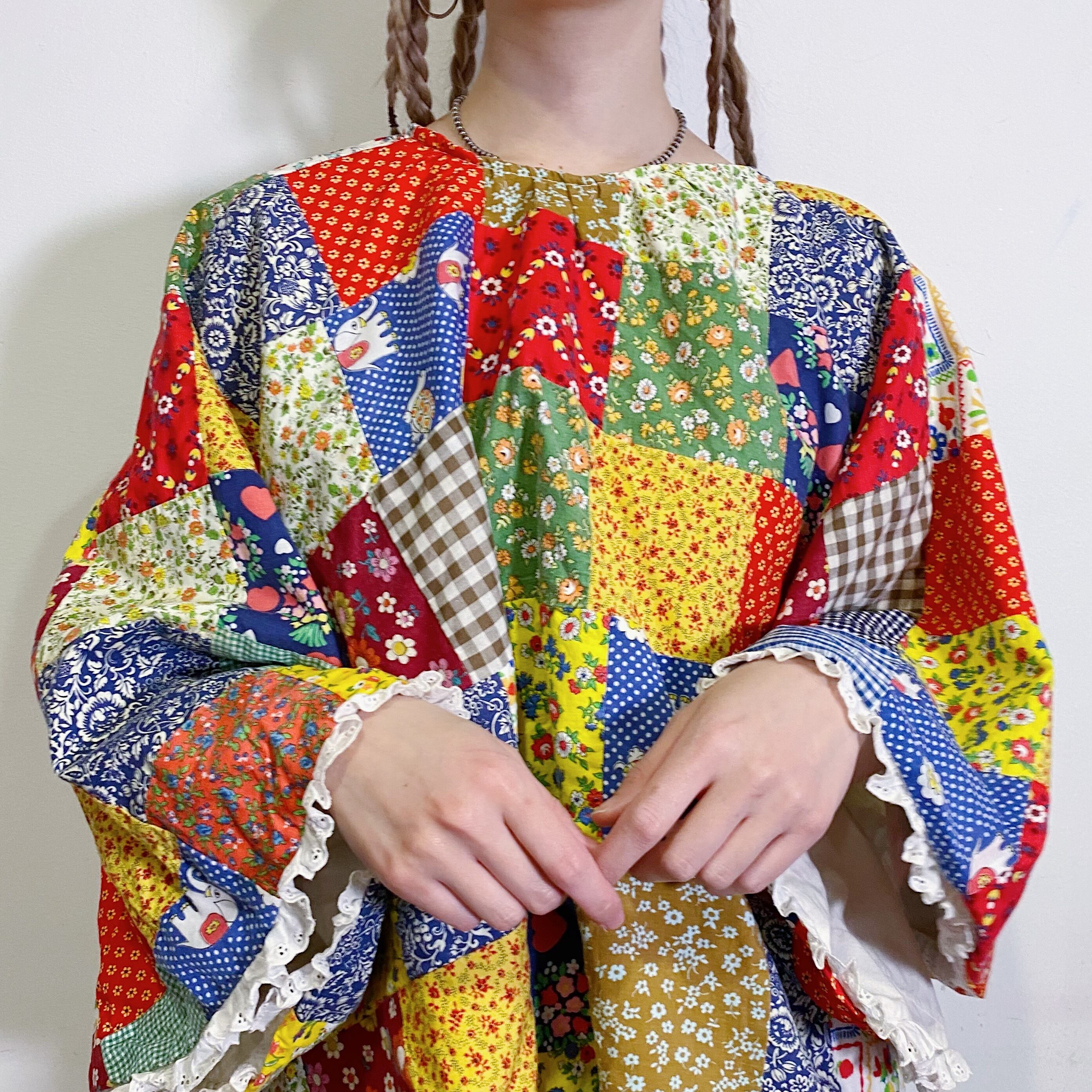 カラフルなパッチワークが可愛い、70年代のポンチョです。