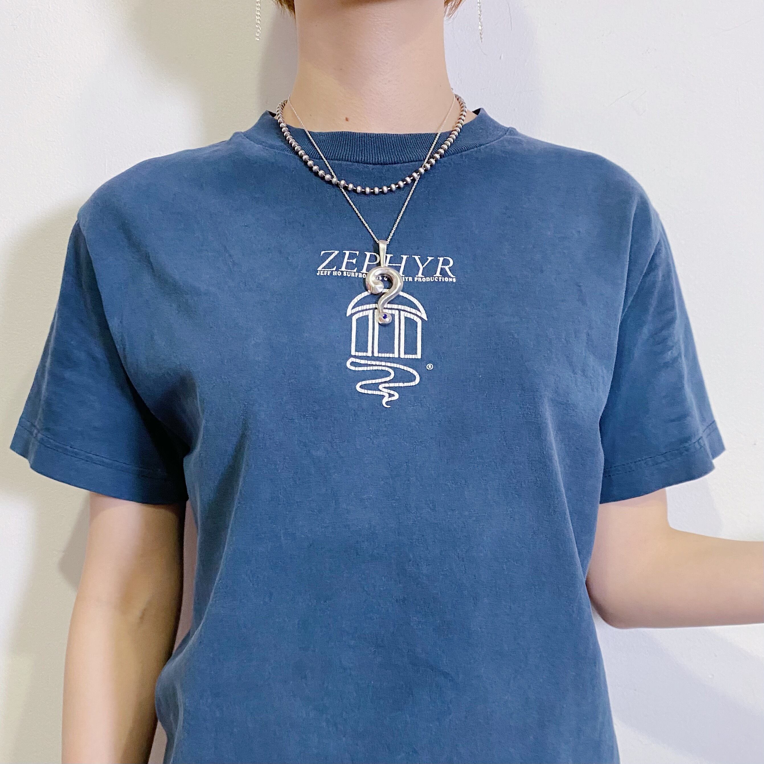 ネイビー地にホワイトのプリントで使い勝手のいい、80年代のTシャツです。