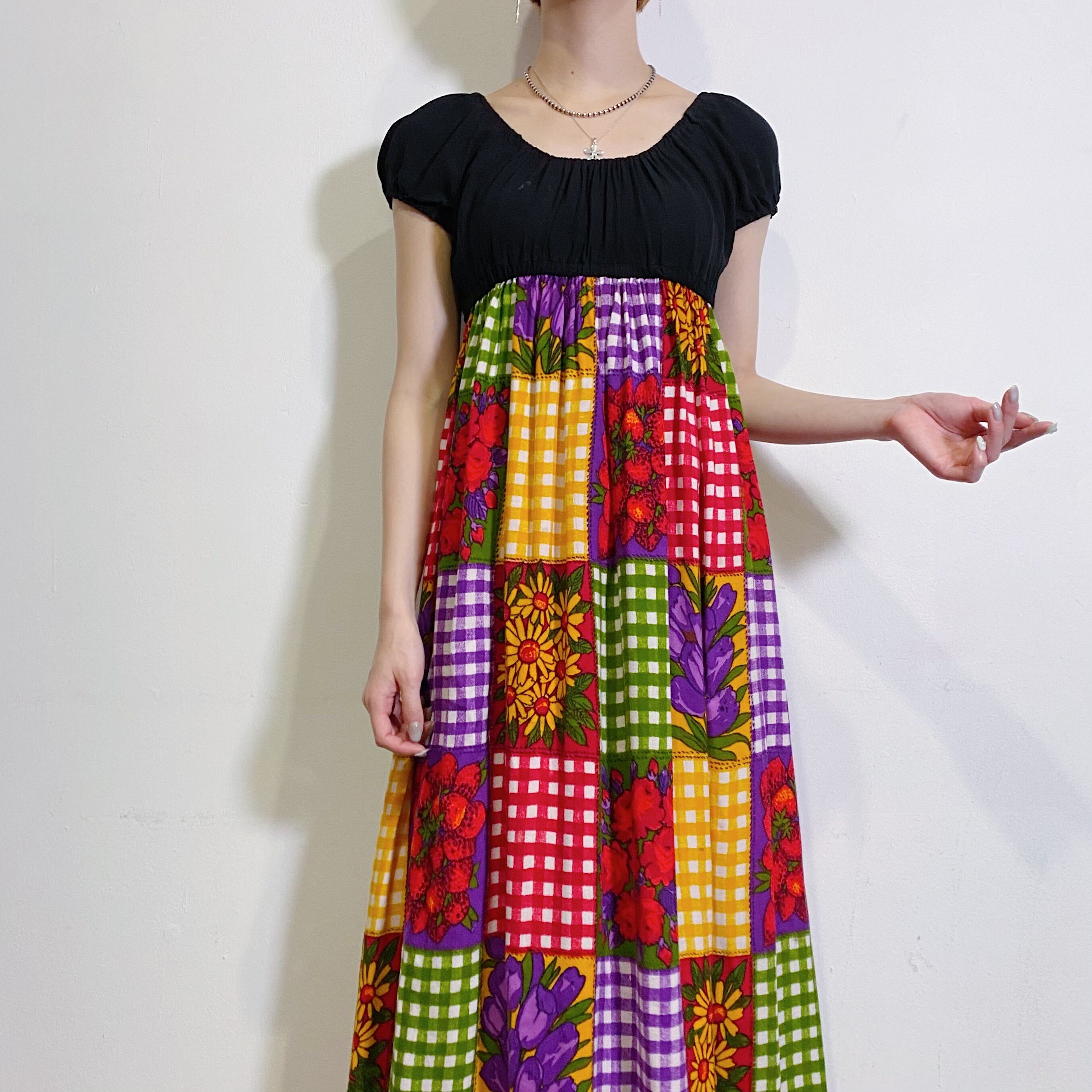 中でもこちらはお花とフルーツにギンガムのパッチワーク柄が最高に可愛く、裾には大きな苺が並んでおりとてもスペシャルなデザインです。