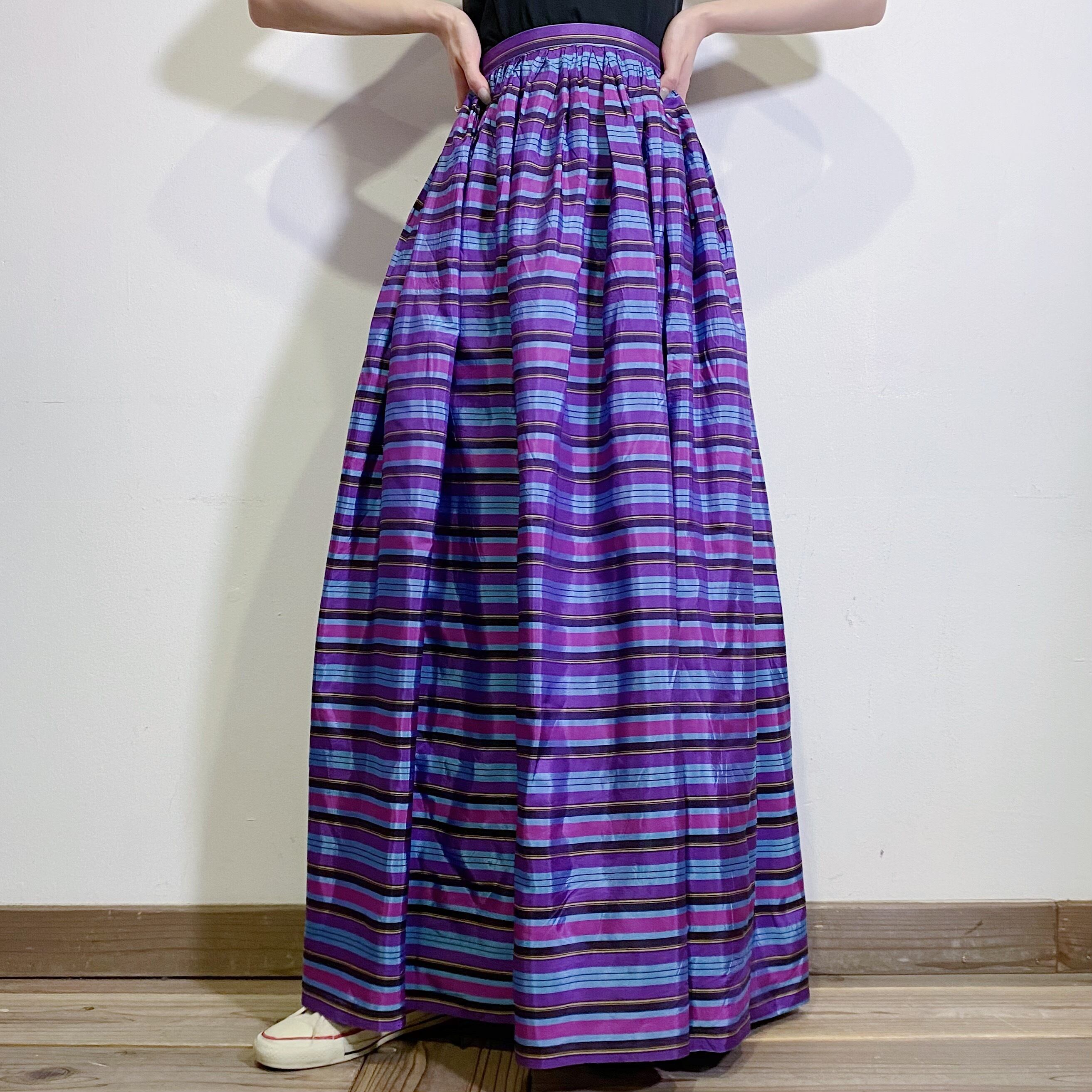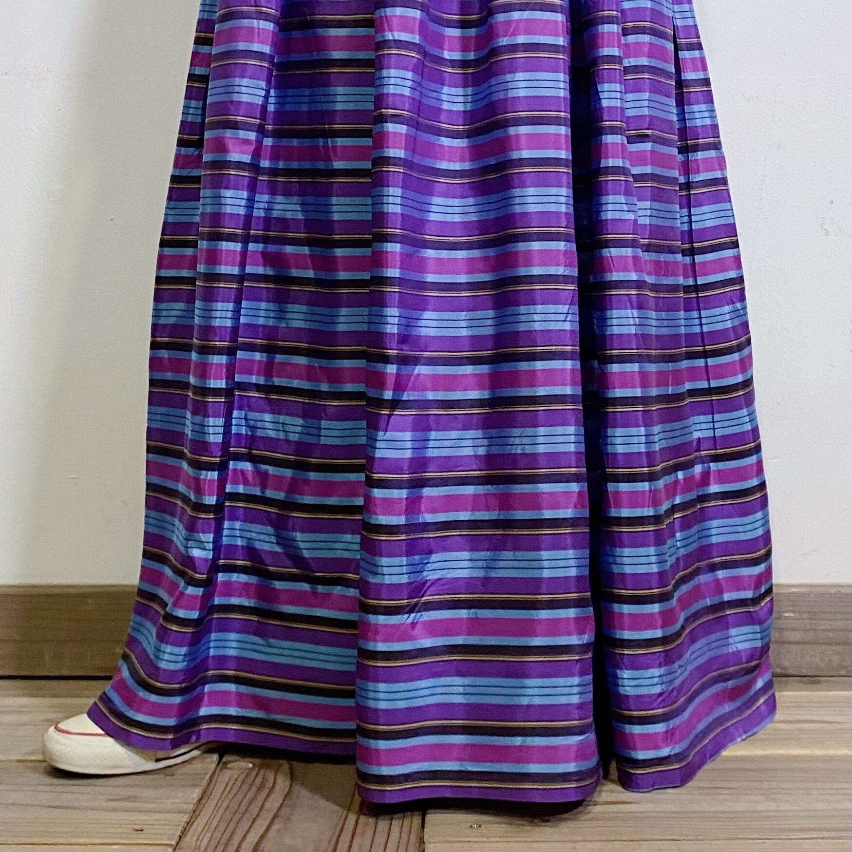 60s purple shantung stripe long skirt