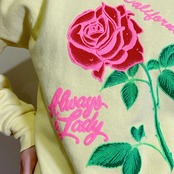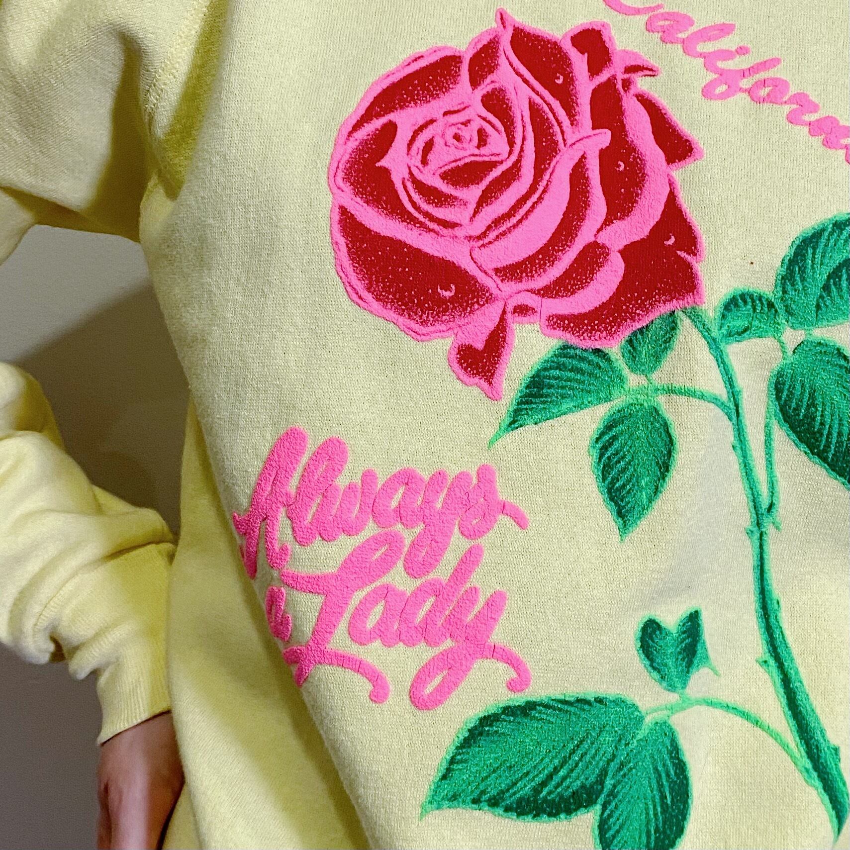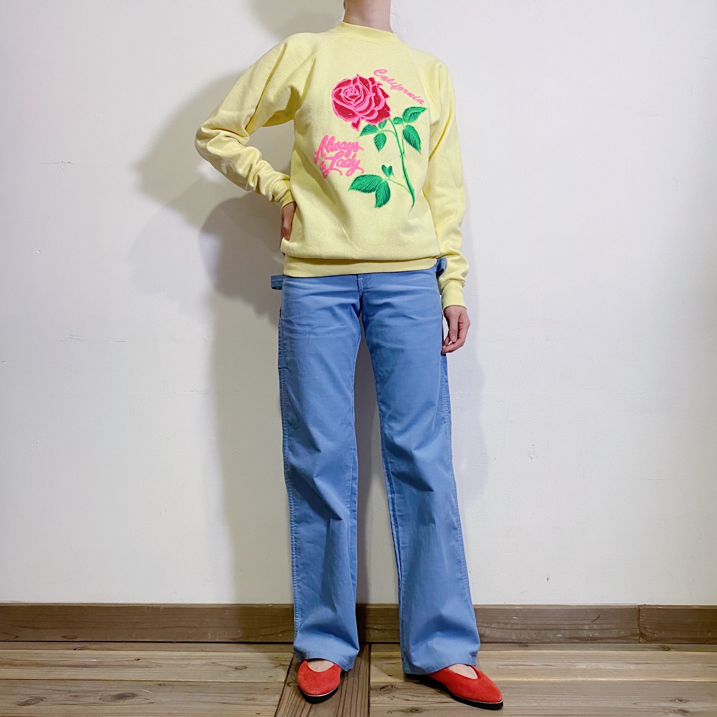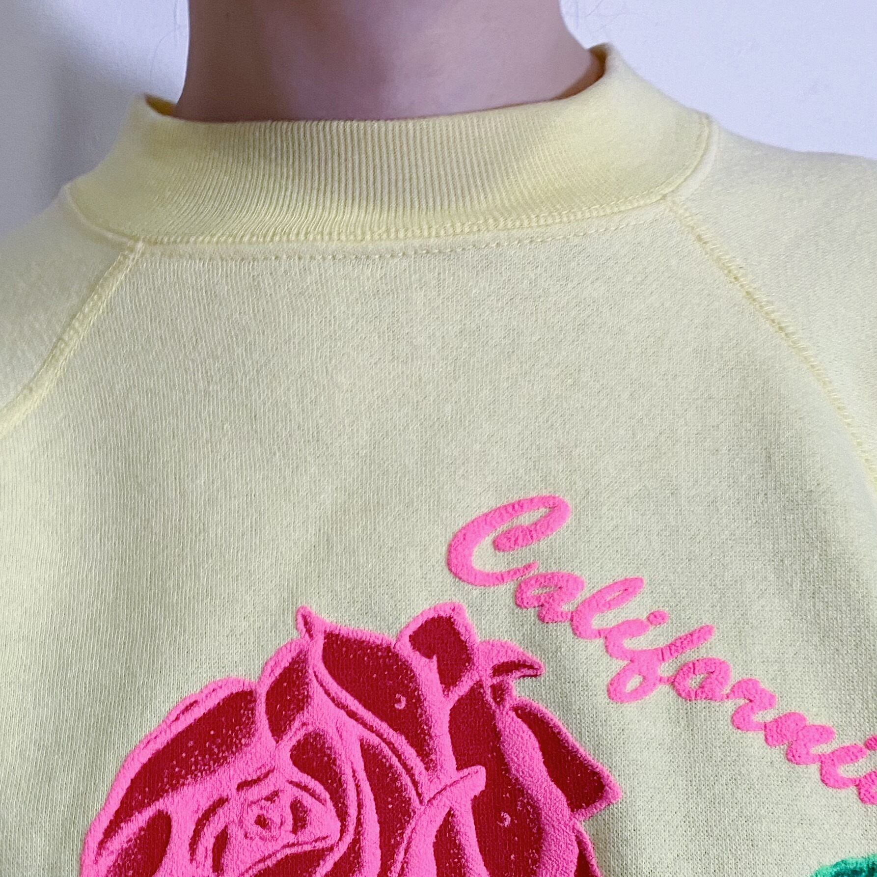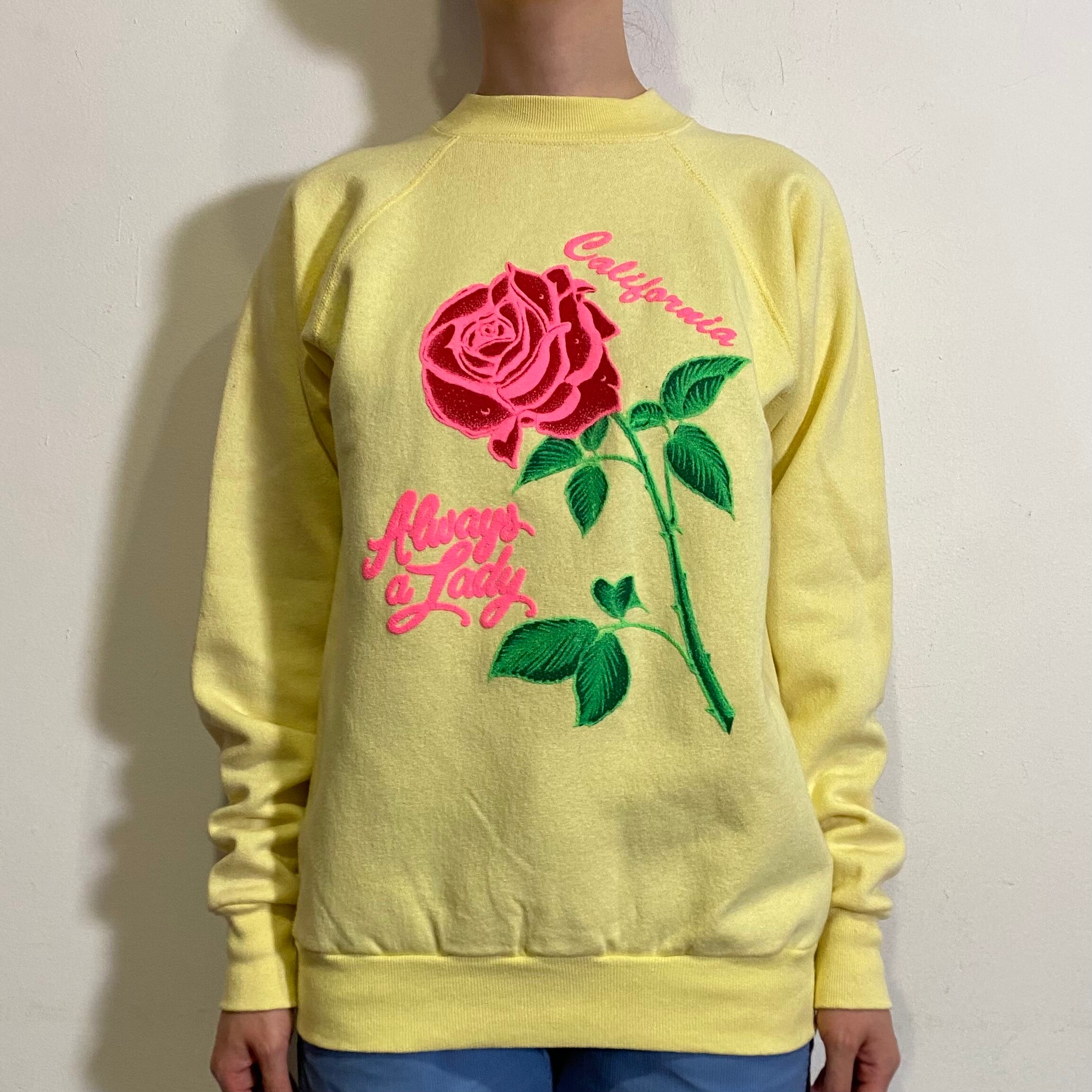 ぷっくりとしたバラの発砲プリントが可愛い、80年代のスウェットです。