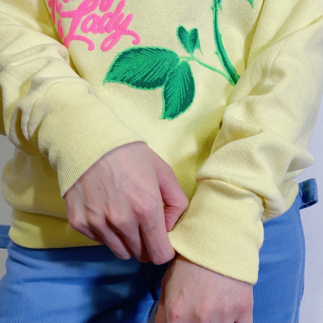 着こなしやすいサイズ感に、ボディの淡いイエローカラーがとってもキュート。