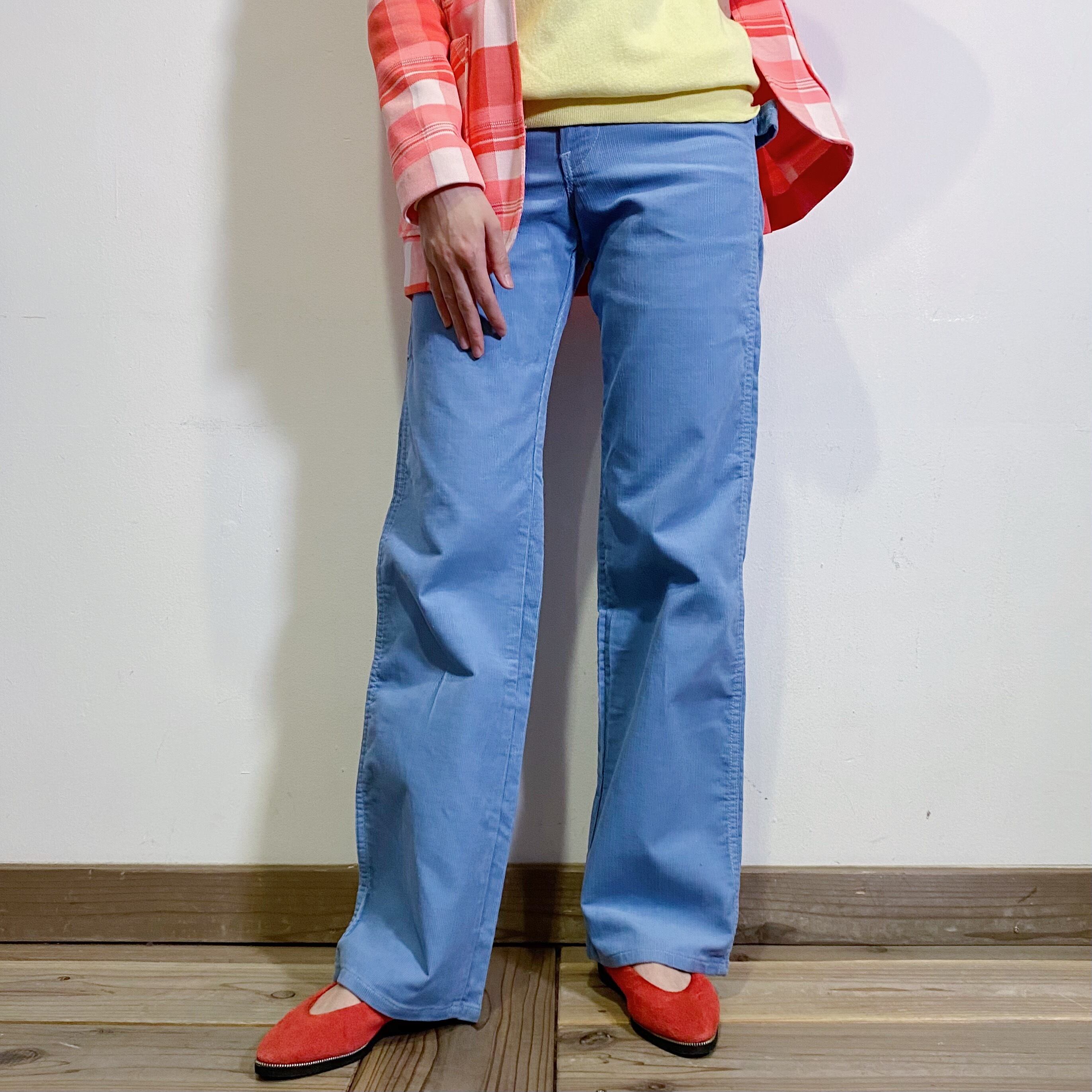 サックスブルーの色合いが可愛い、70~80年代のDeeCeeのコーデュロイパンツです。