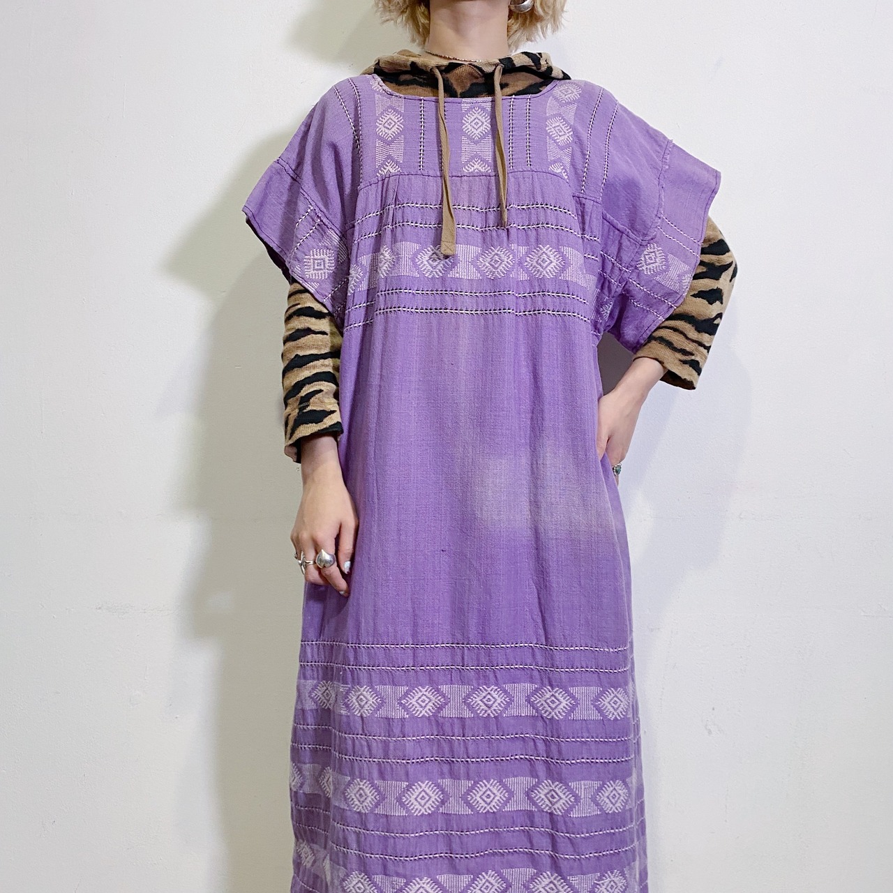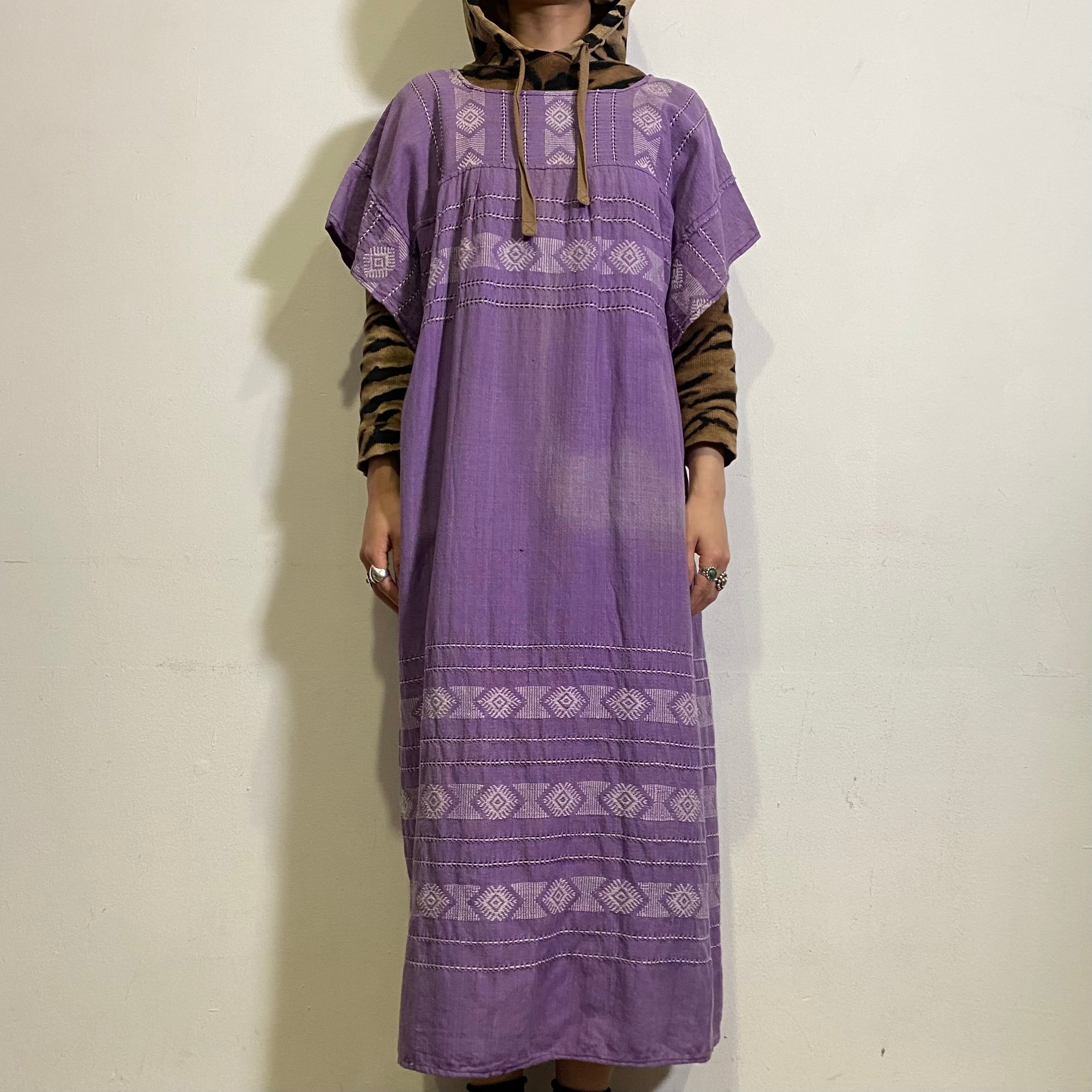 ラベンダーカラーが可愛い、70年代のグアテマラ刺繍ワンピースです。