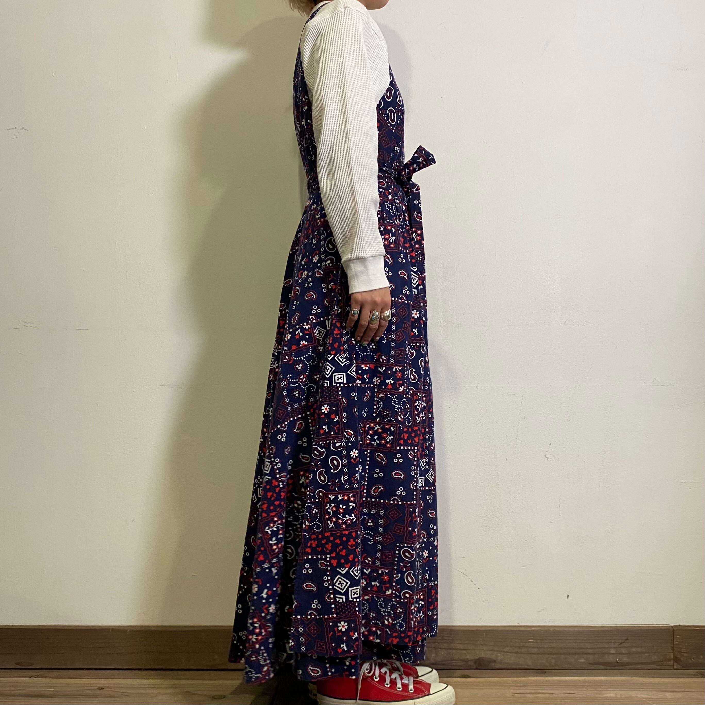 バンダナ柄がとっても可愛い70年代のエプロンワンピースです。