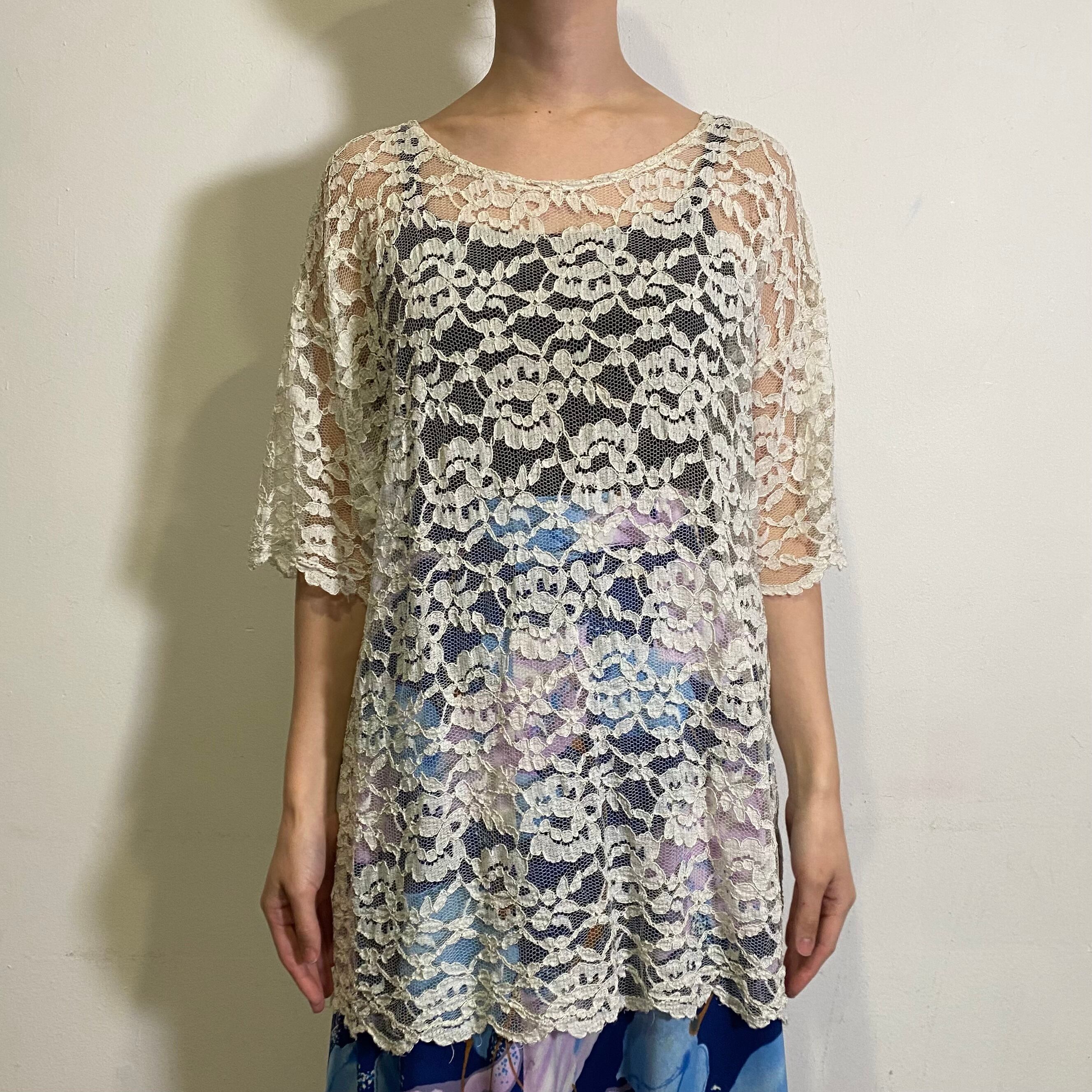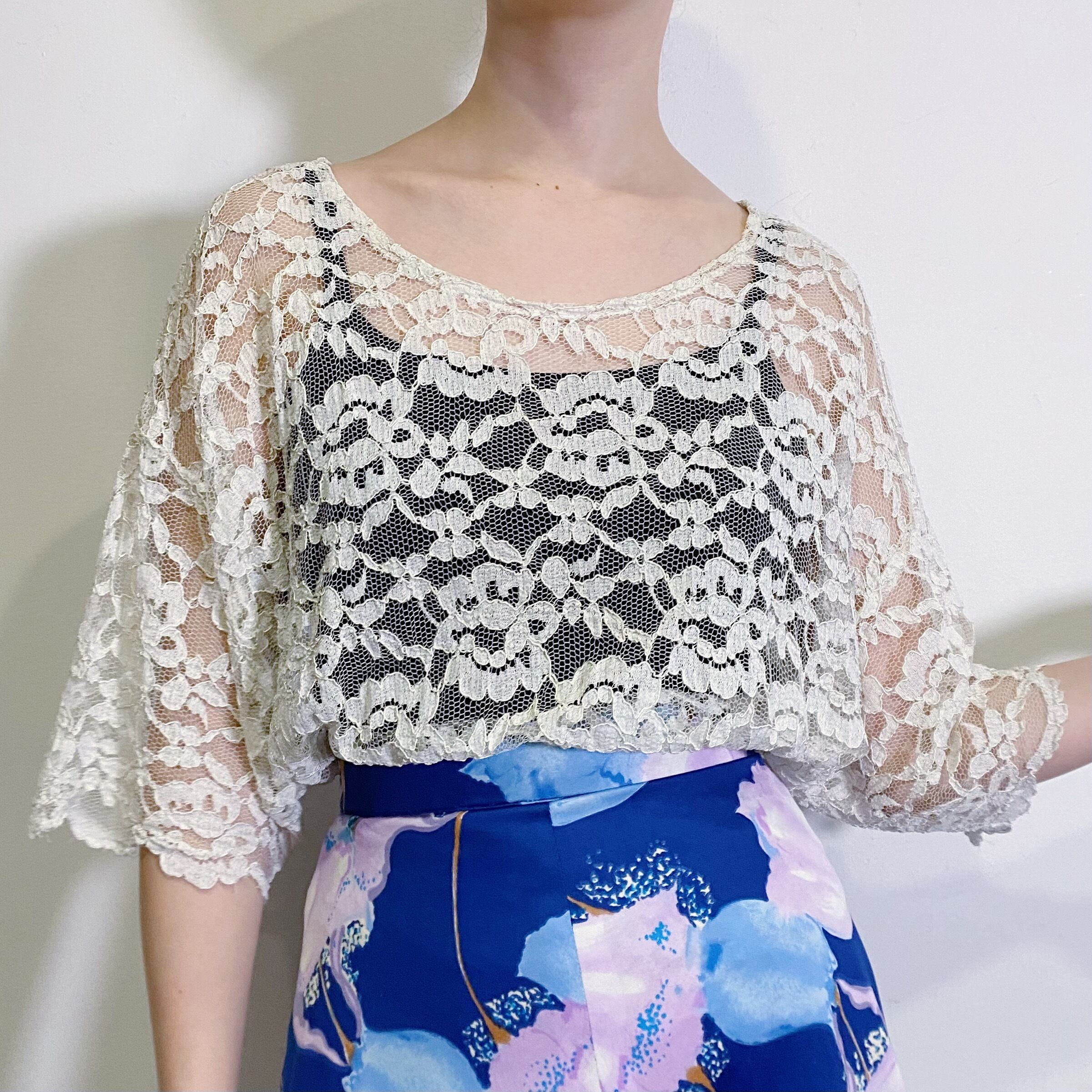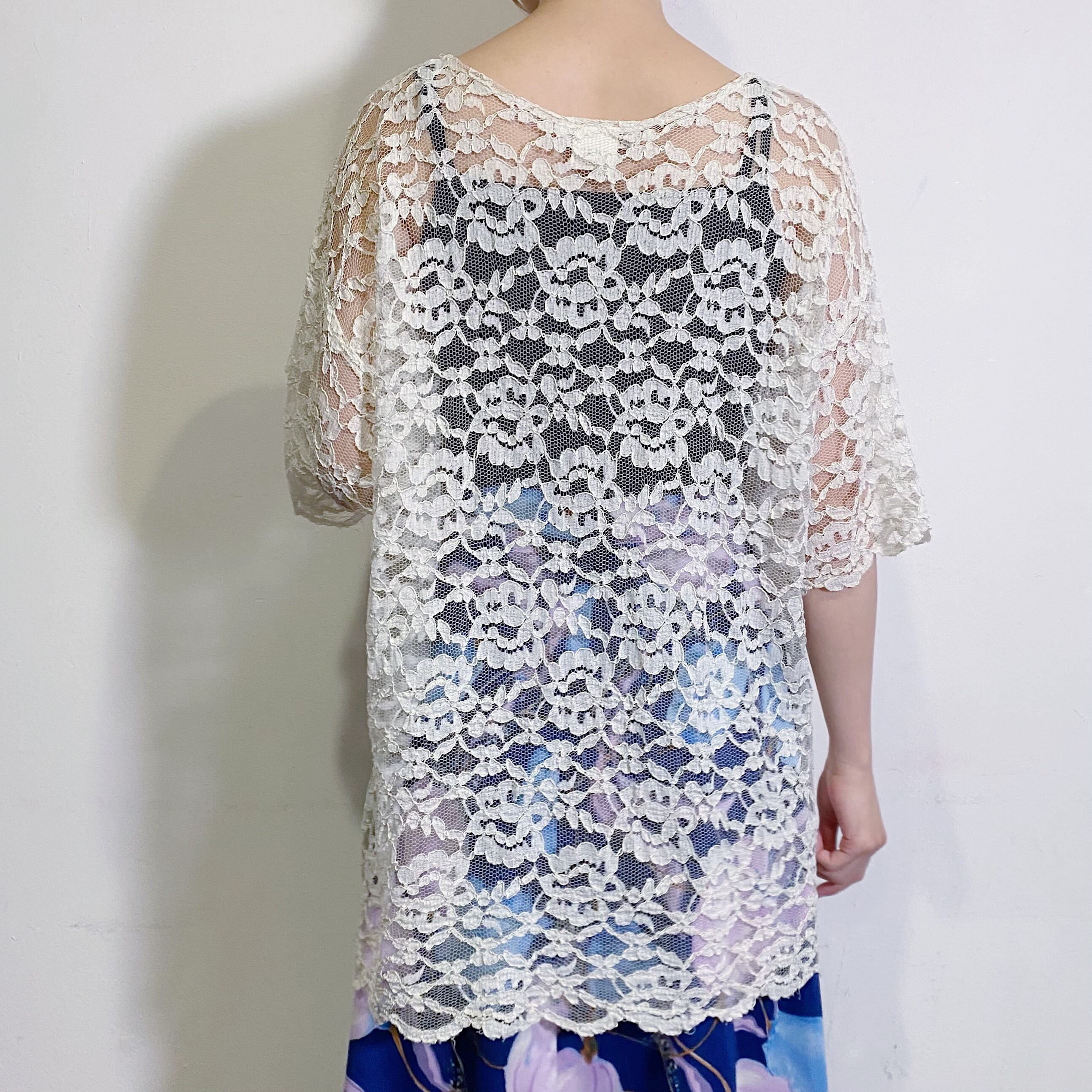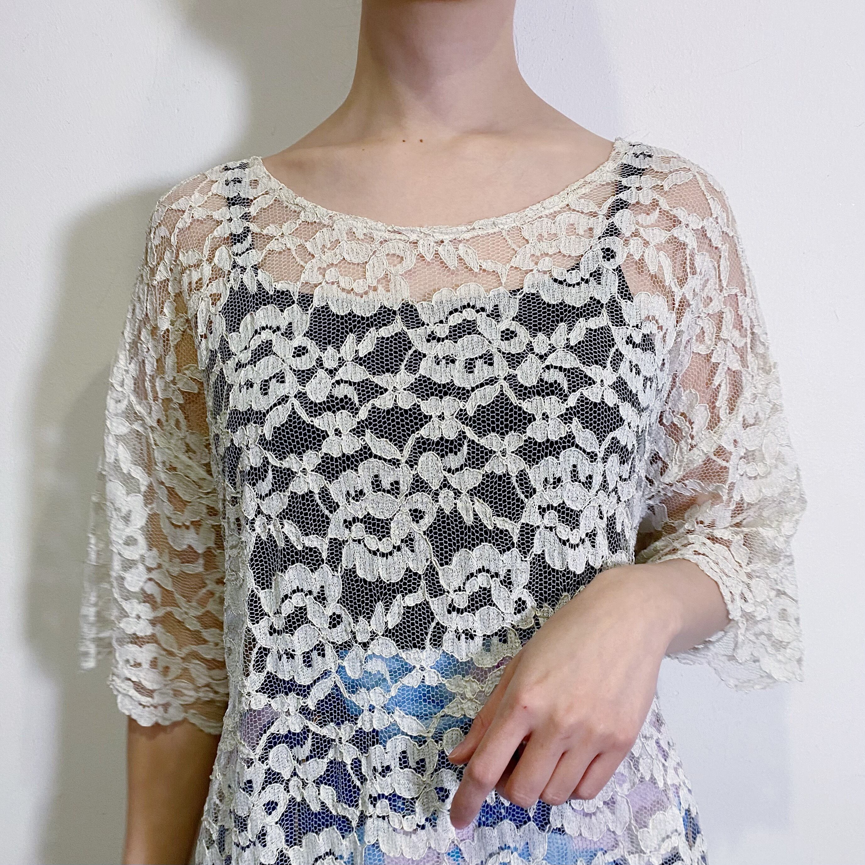 花模様の総レースが可愛い、80年代の半袖トップスです。