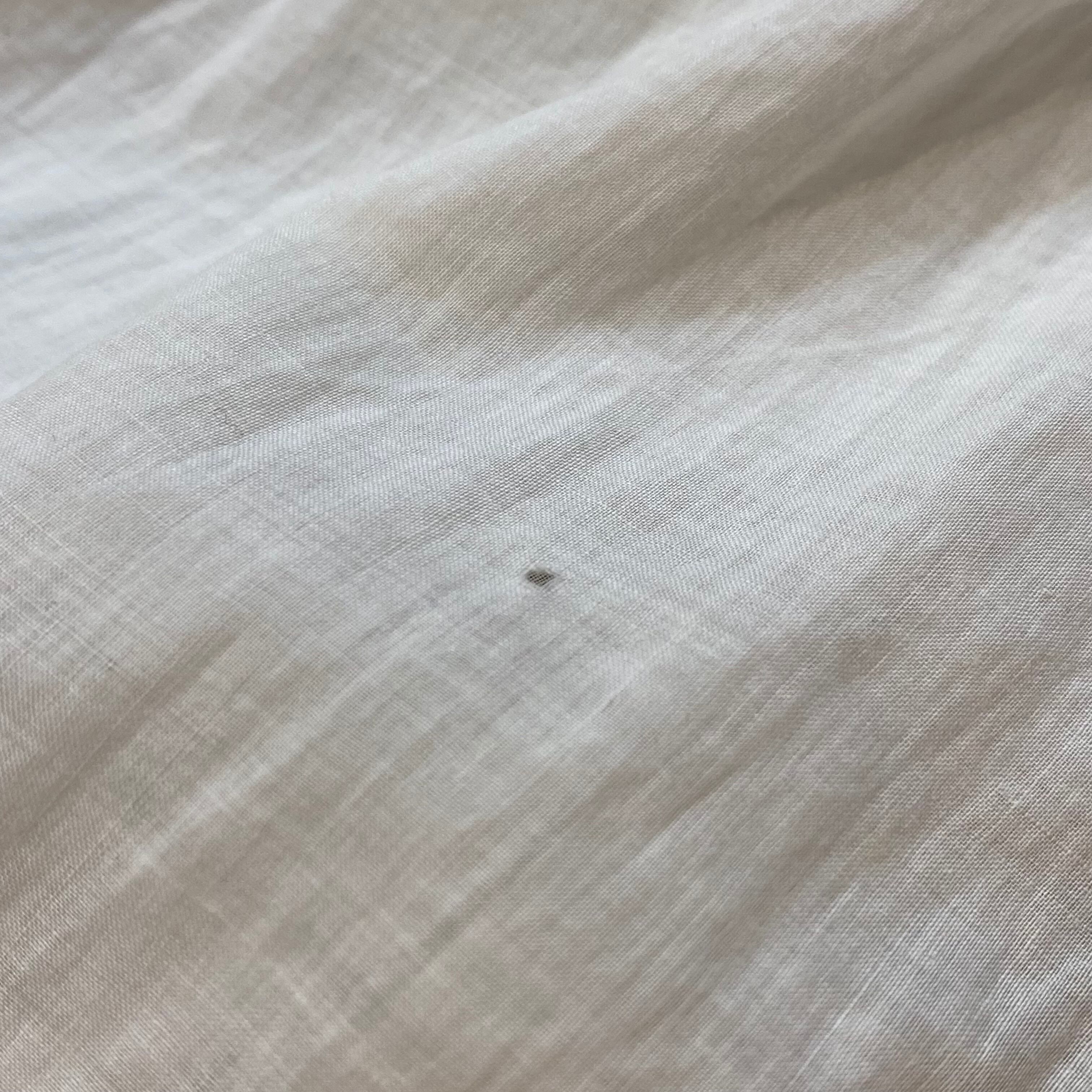 ペン先ほどの小さな穴や軽度のダメージが見受けられますが、ほとんど気にならない程度かと思われます。