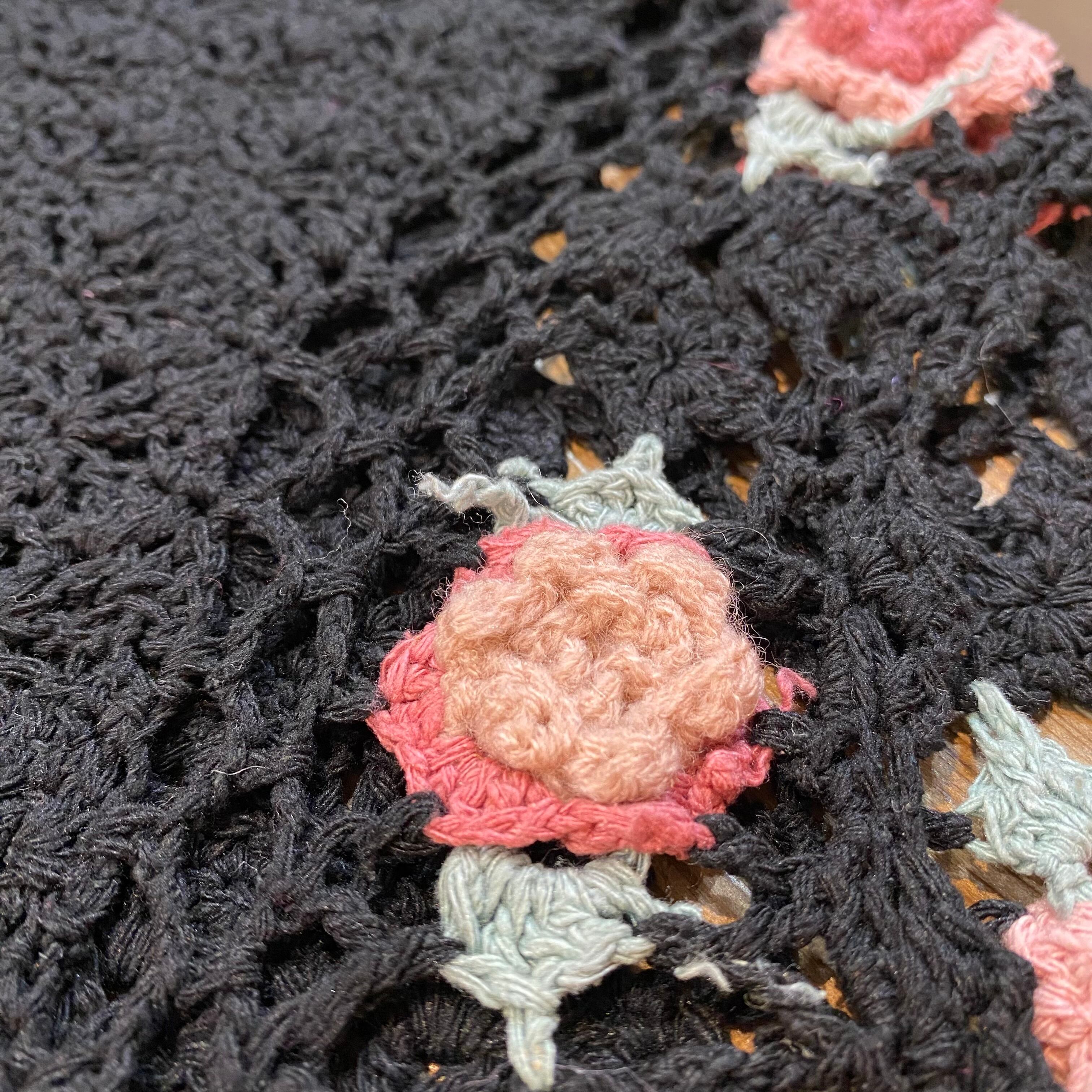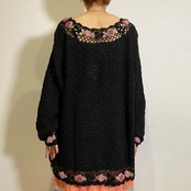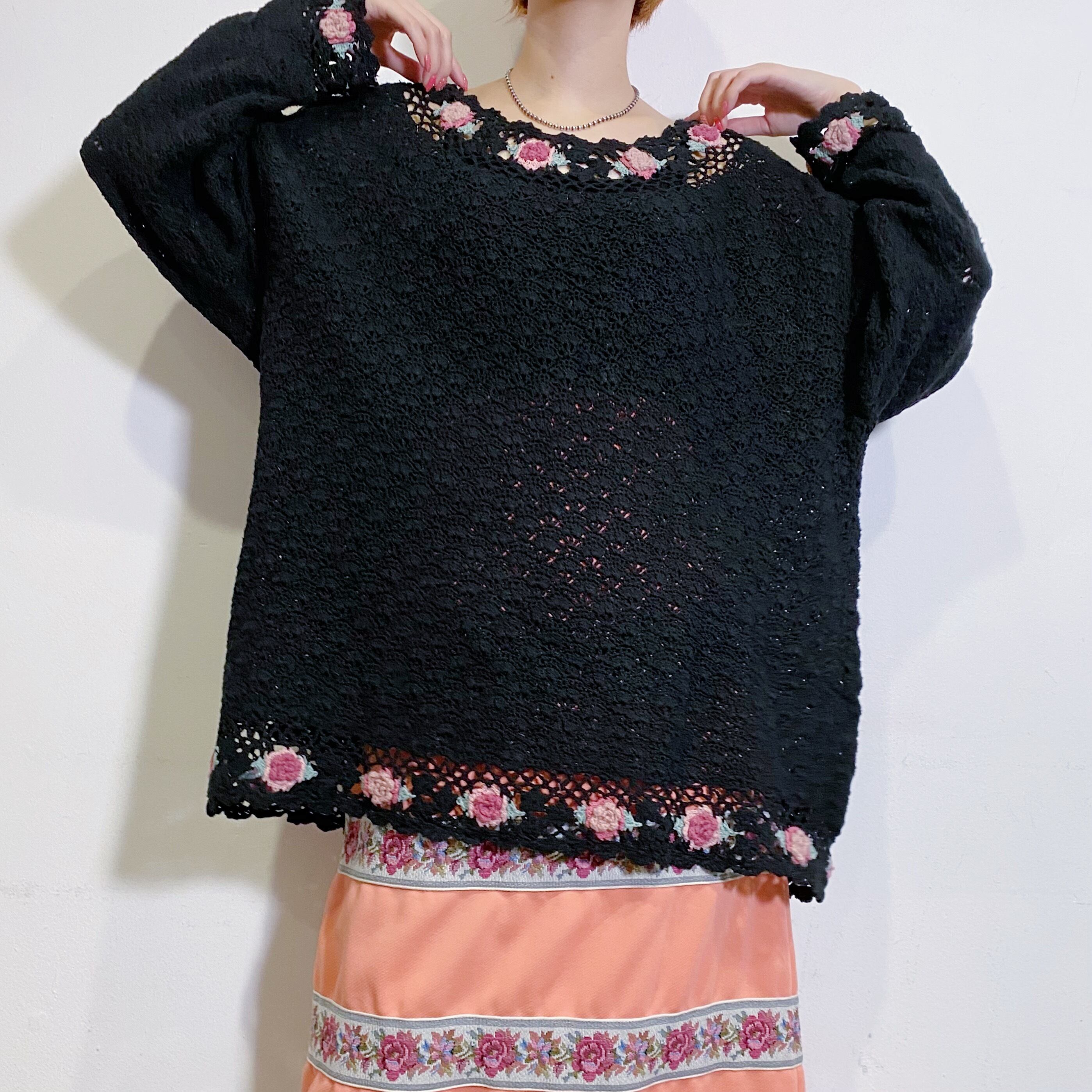 クロシェ編みに立体的なお花の編みデザインが可愛い、クロシェニットトップです。