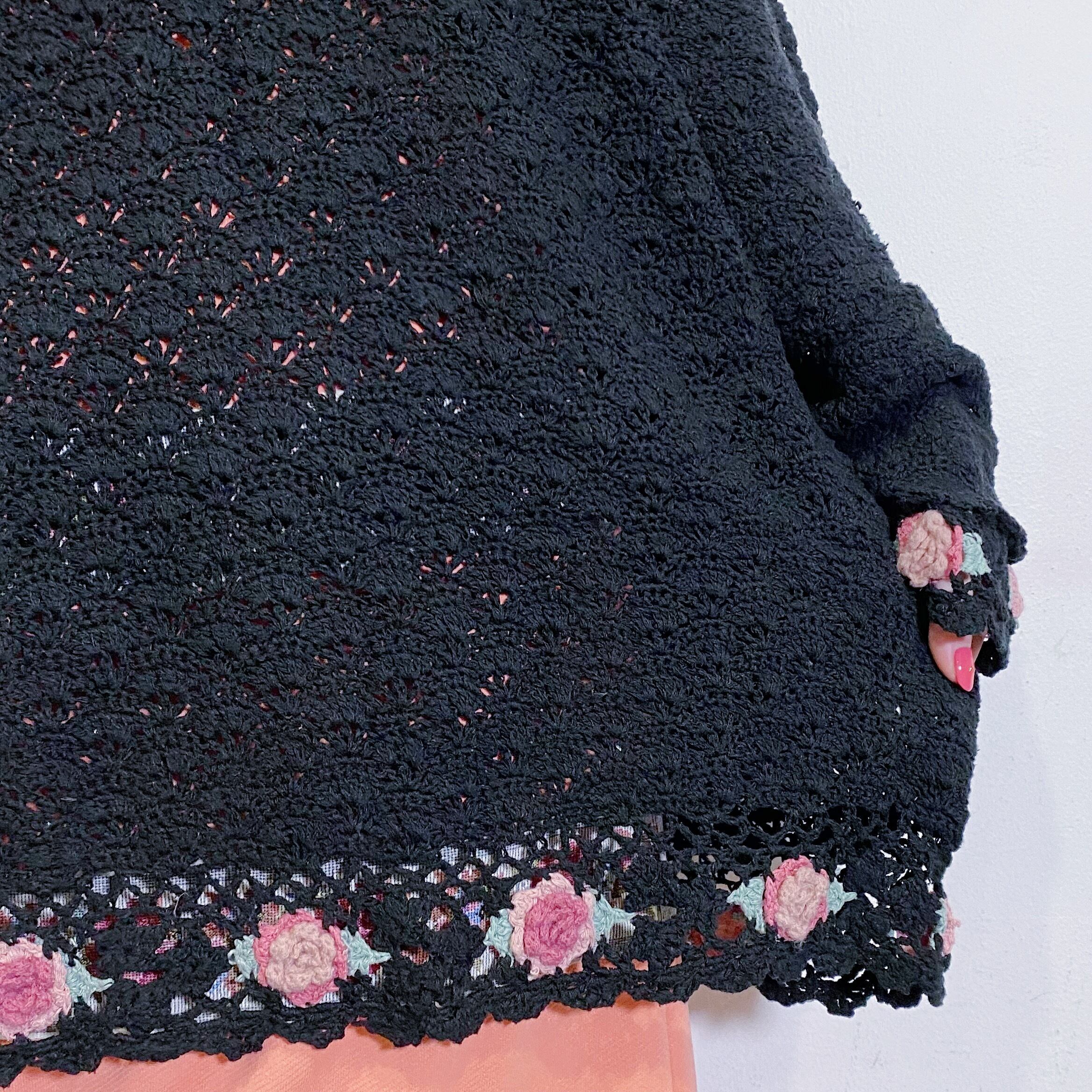 クロシェ編み特有の、着たときの肌の透け感がなんともキュートな一枚。