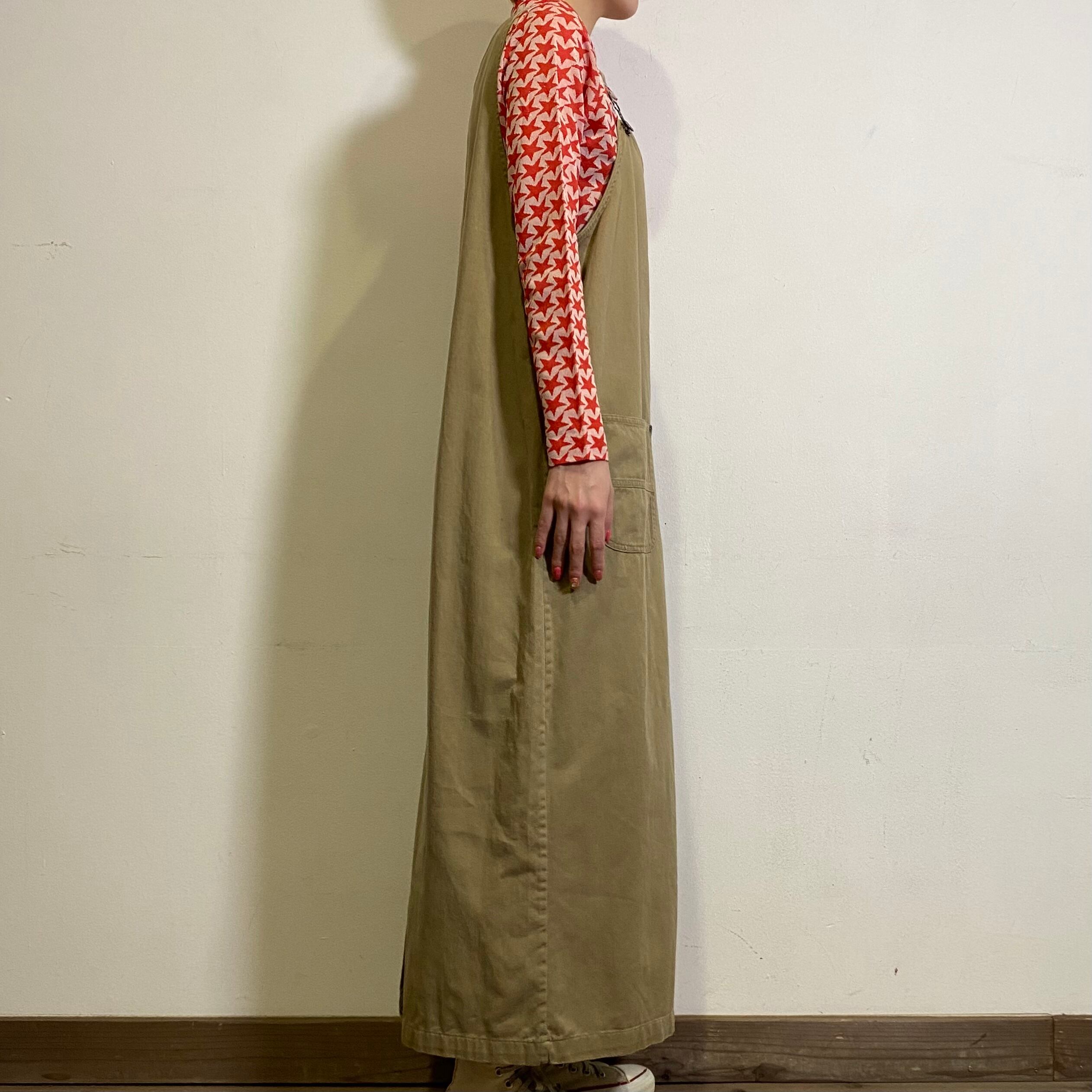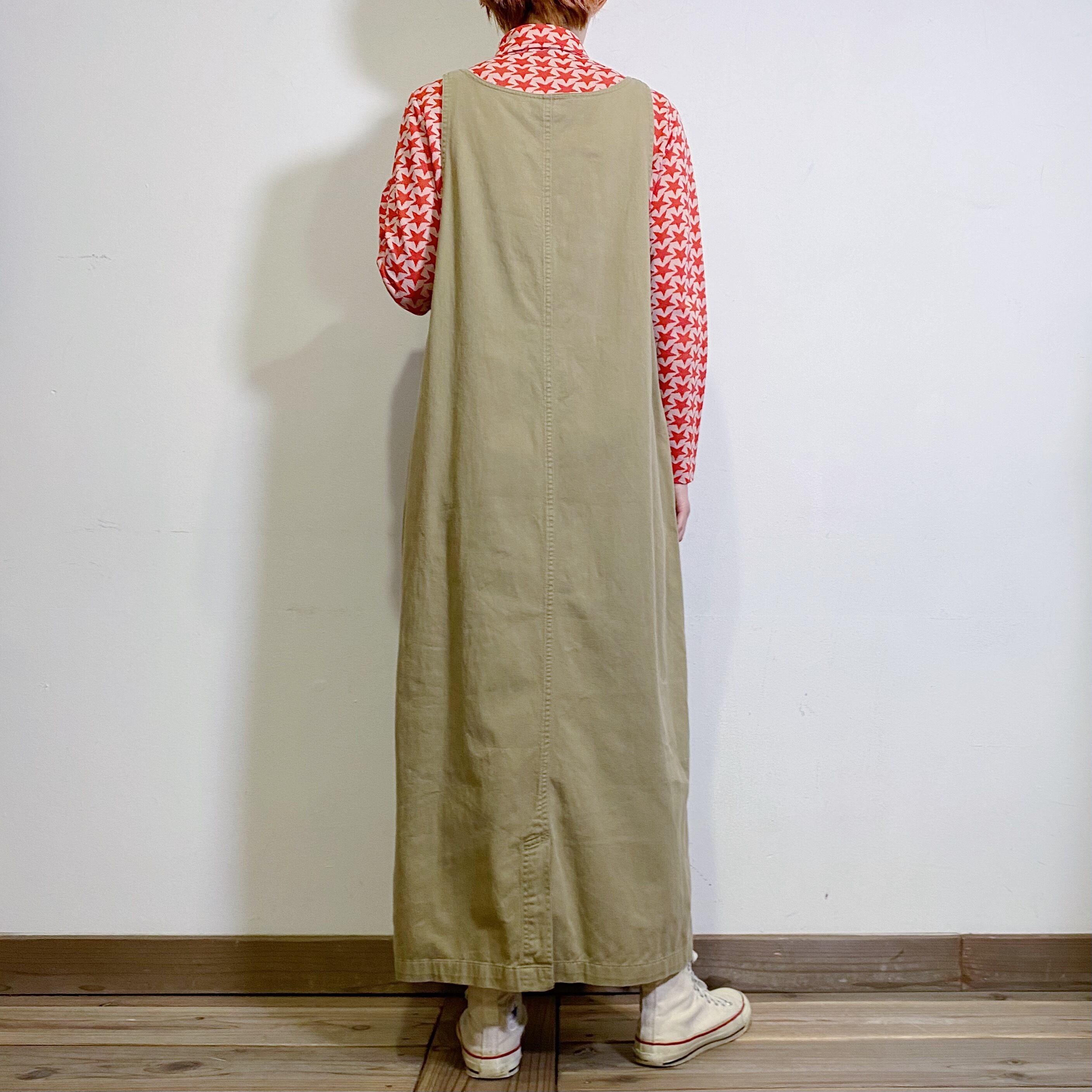 使い勝手いいベージュカラーのジャンパーワンピースです。