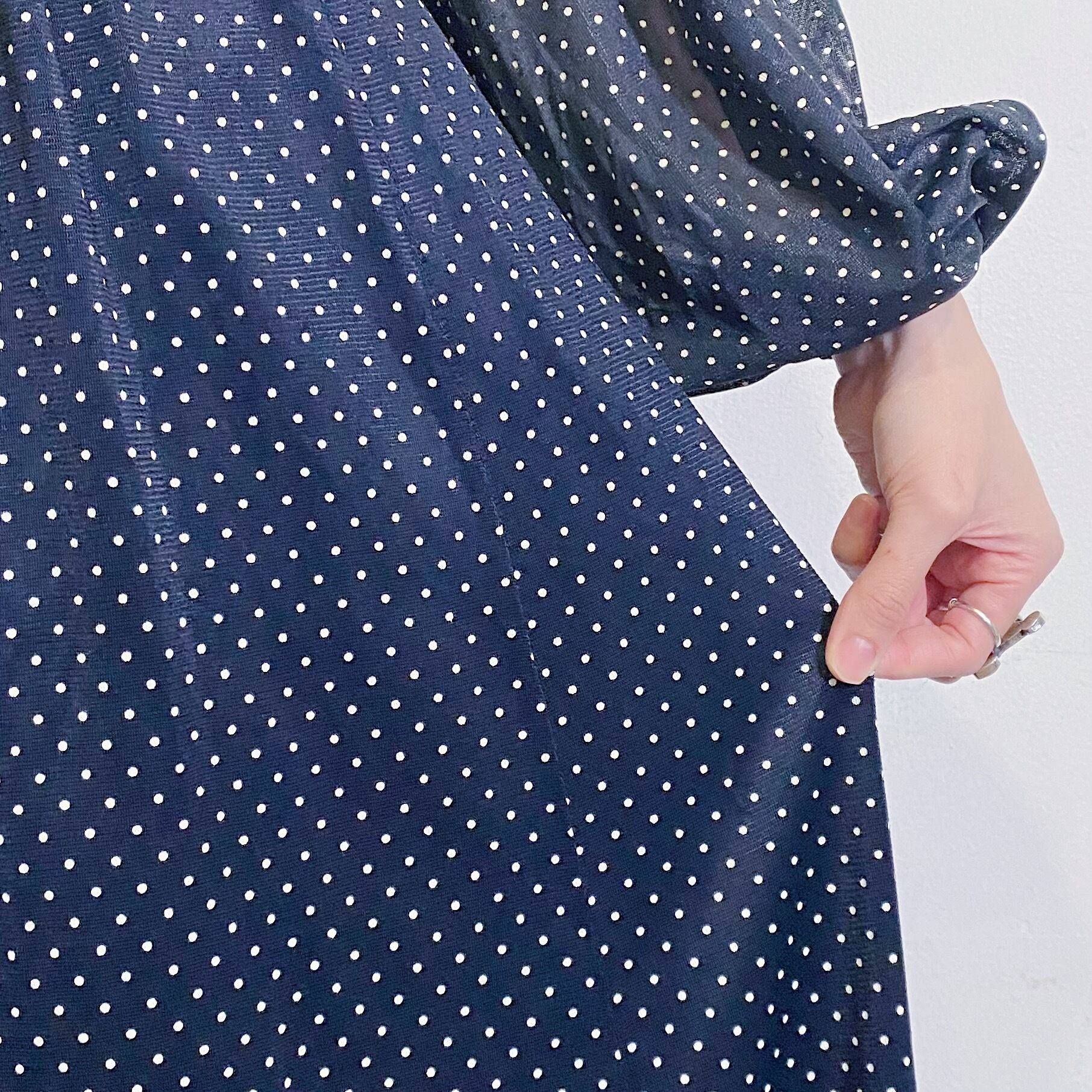 ブラックベースにピンドットが可愛い、70年代のワンピースです。
