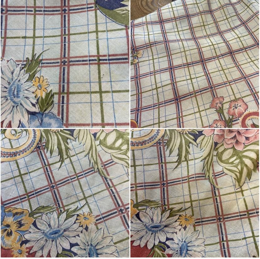 うっすらとした点のようなシミが主に裾周りにいくつか見受けられますが、柄に紛れてあまり目立たないかと思われます。