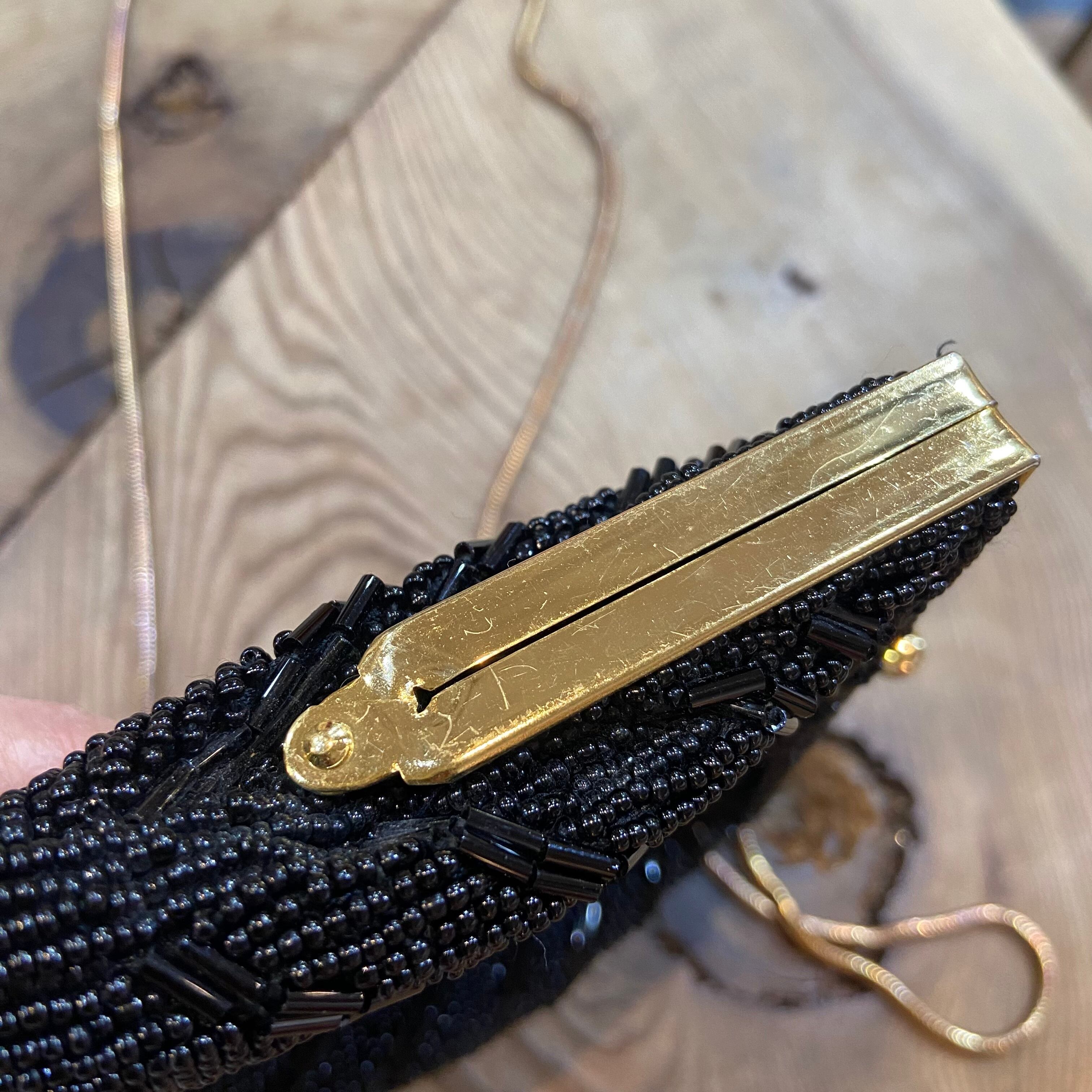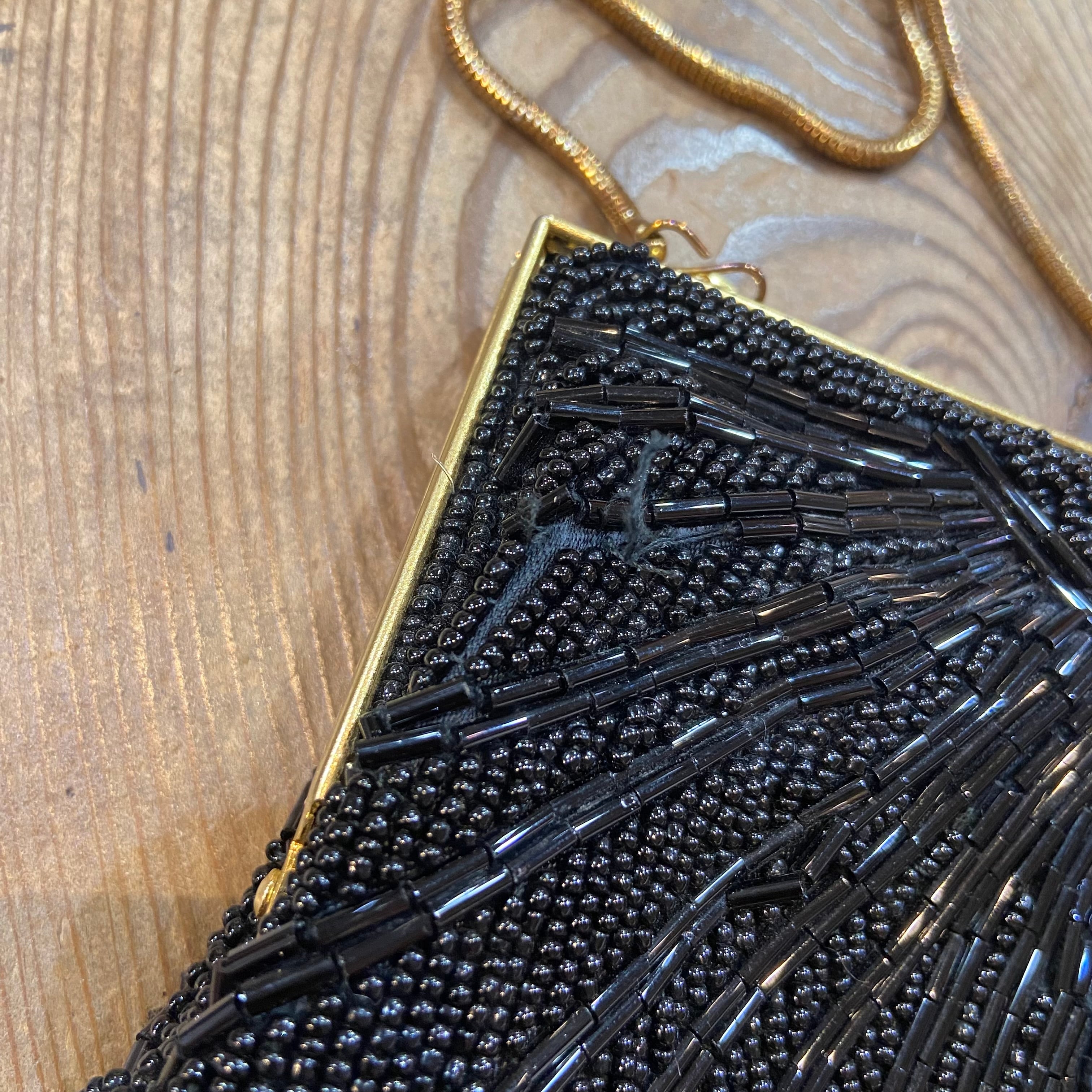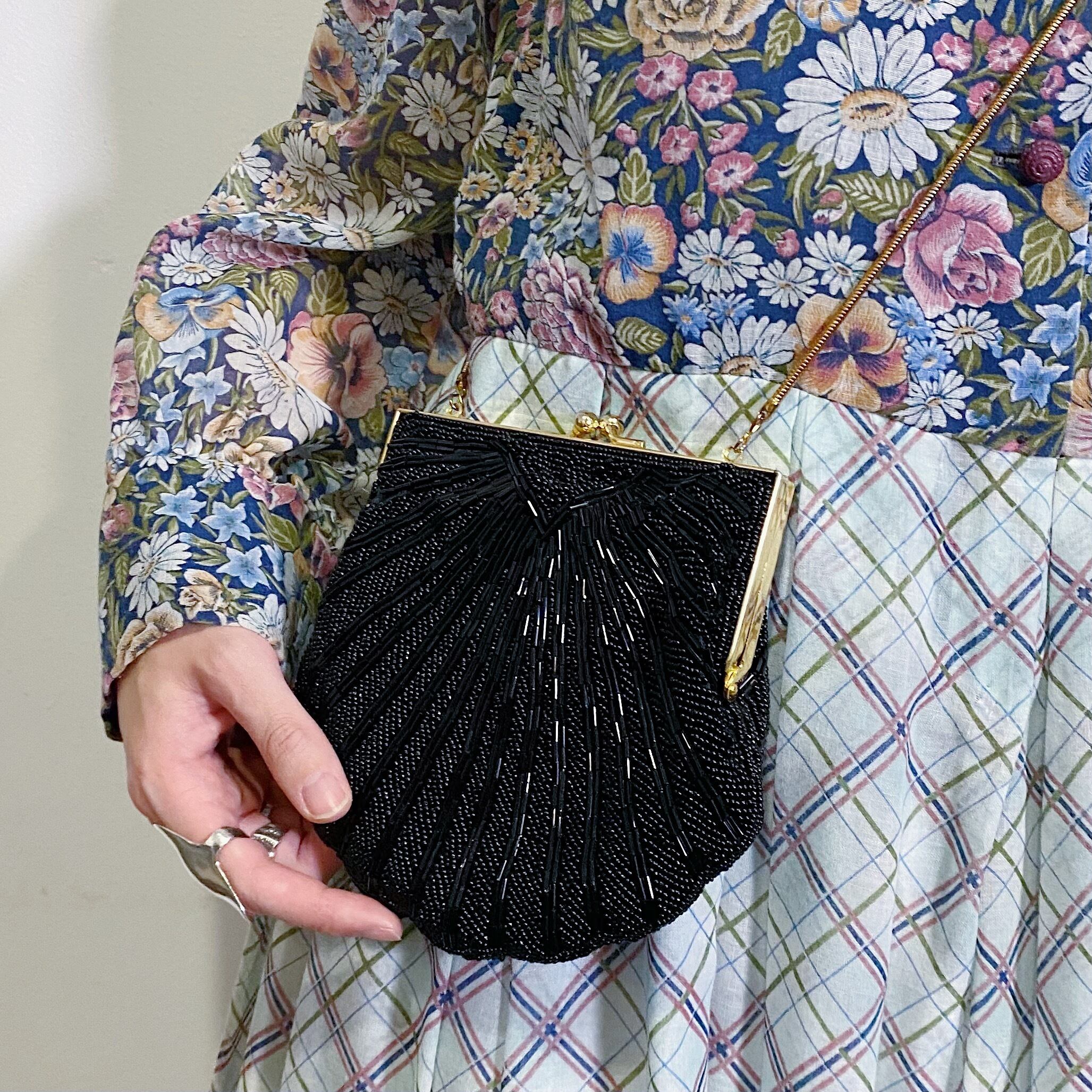 使い勝手の良い黒ベースにシェルモチーフが可愛い、80年代のビーズバッグです。